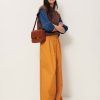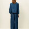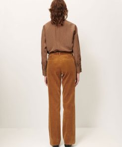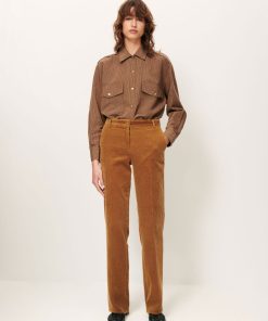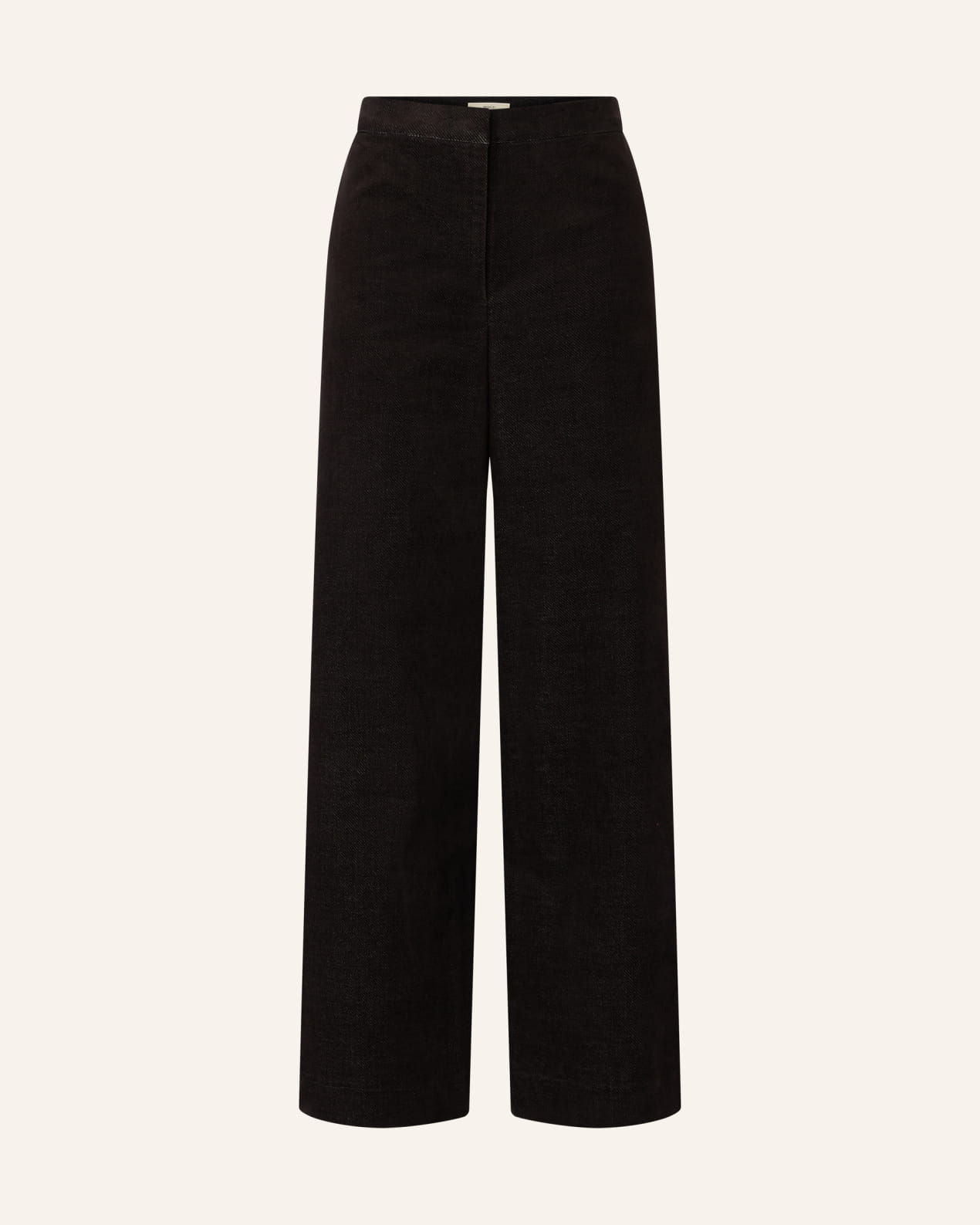 Straight-leg trousers with sharp pleats in short-pile velvet chambray twill.