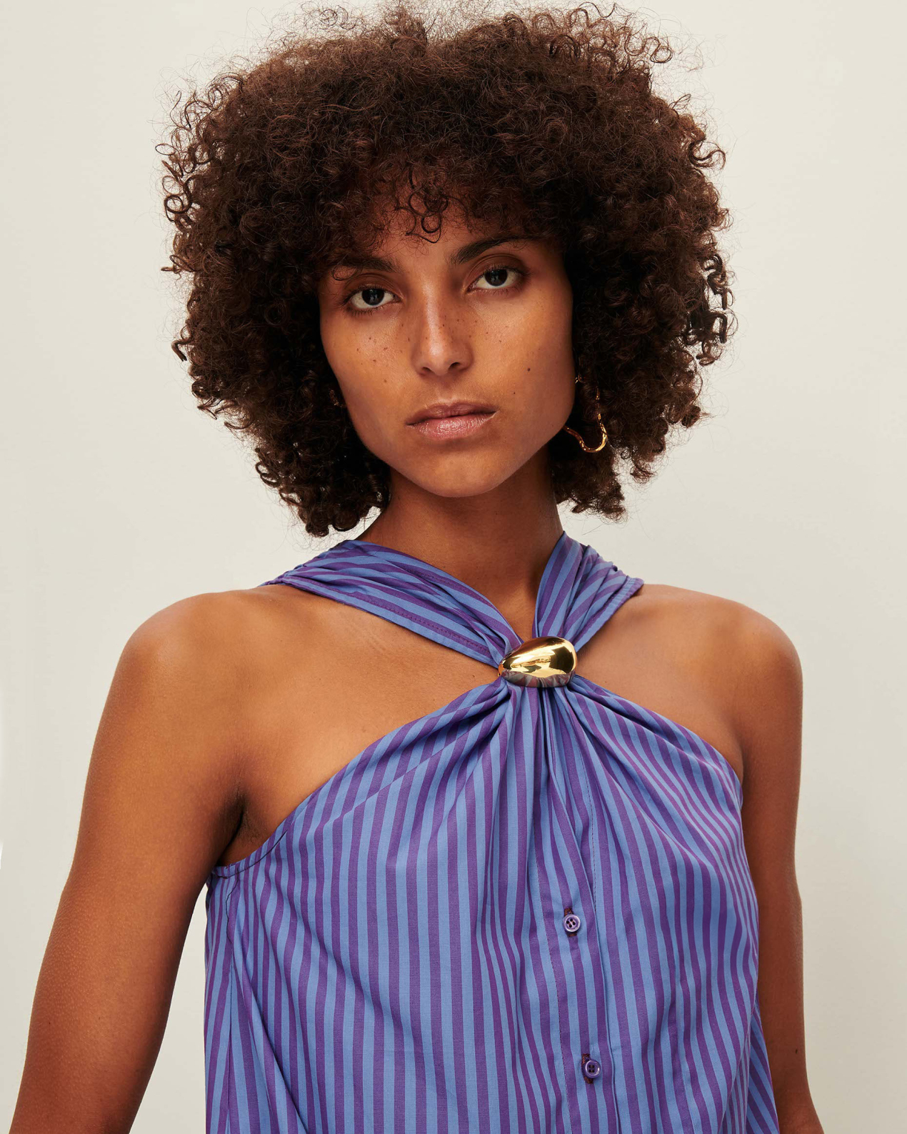 Sleeveless top with a button-up front and back, in compact cotton poplin with two-tone stripes, woven in Italy, exclusive to Sessùn.