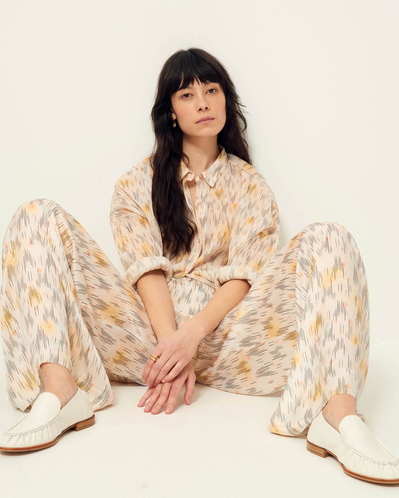 Soft, flat loafers in cow leather with a gathered vamp, made in Portugal.