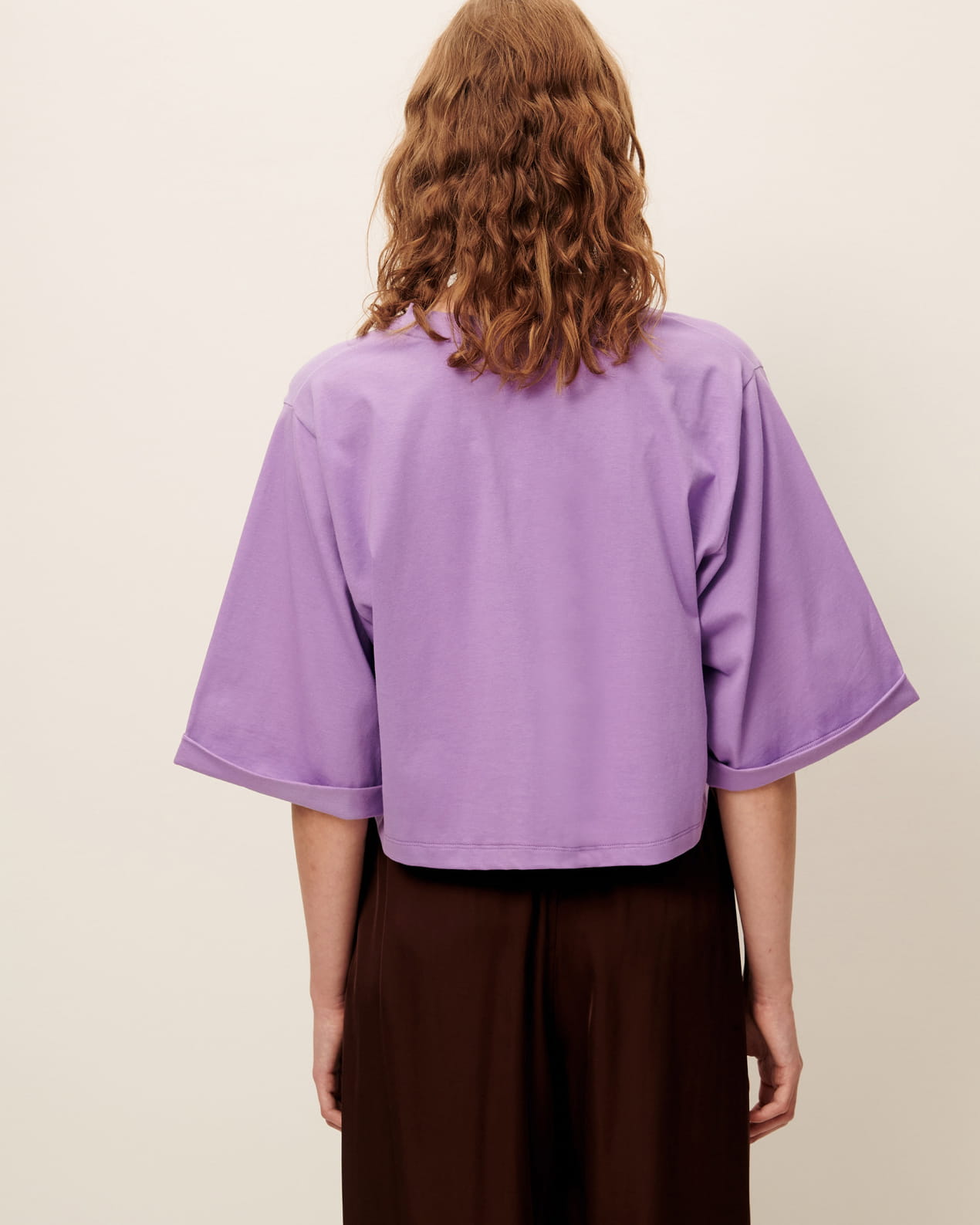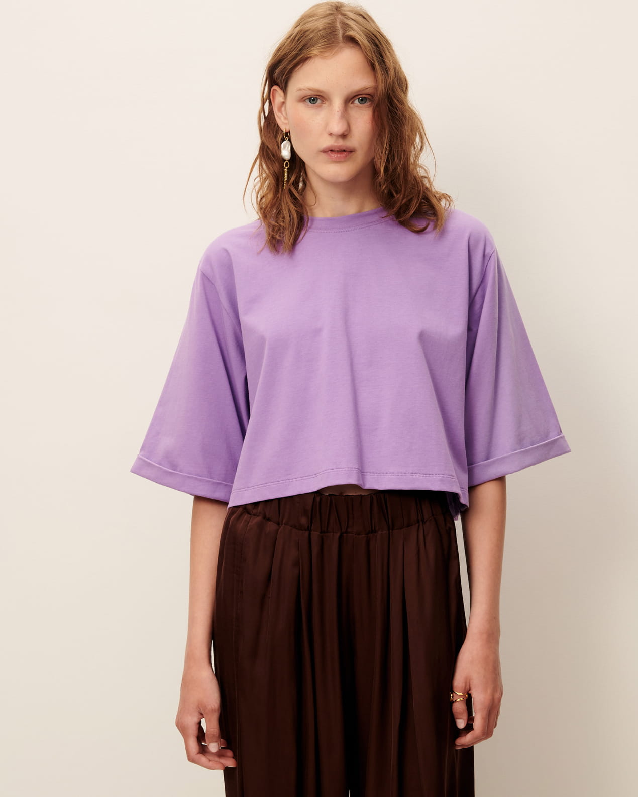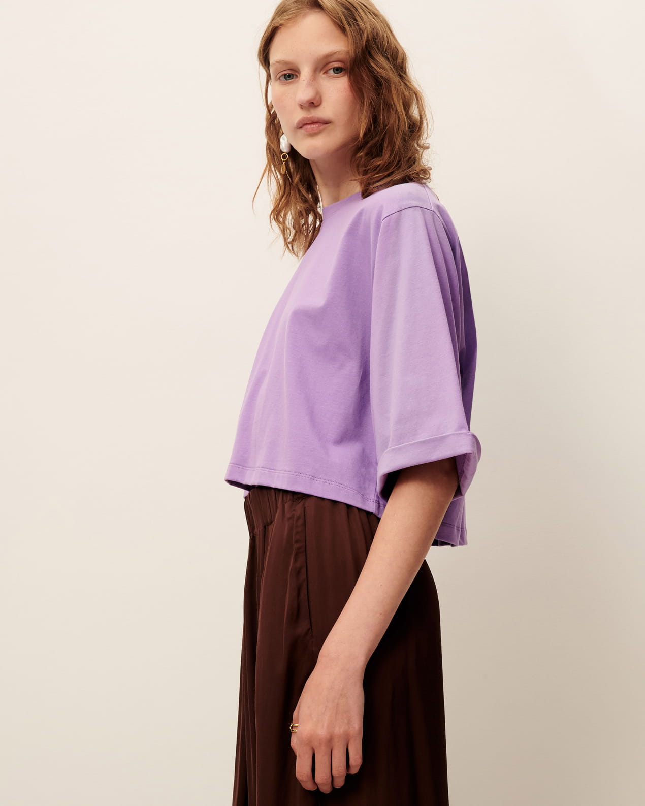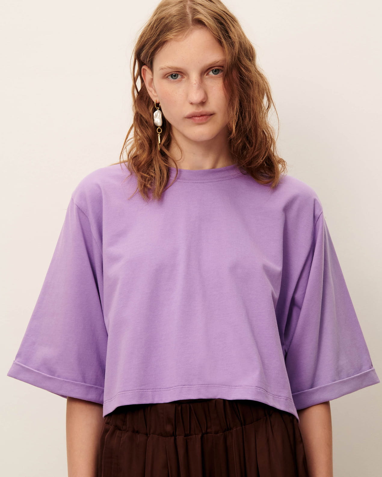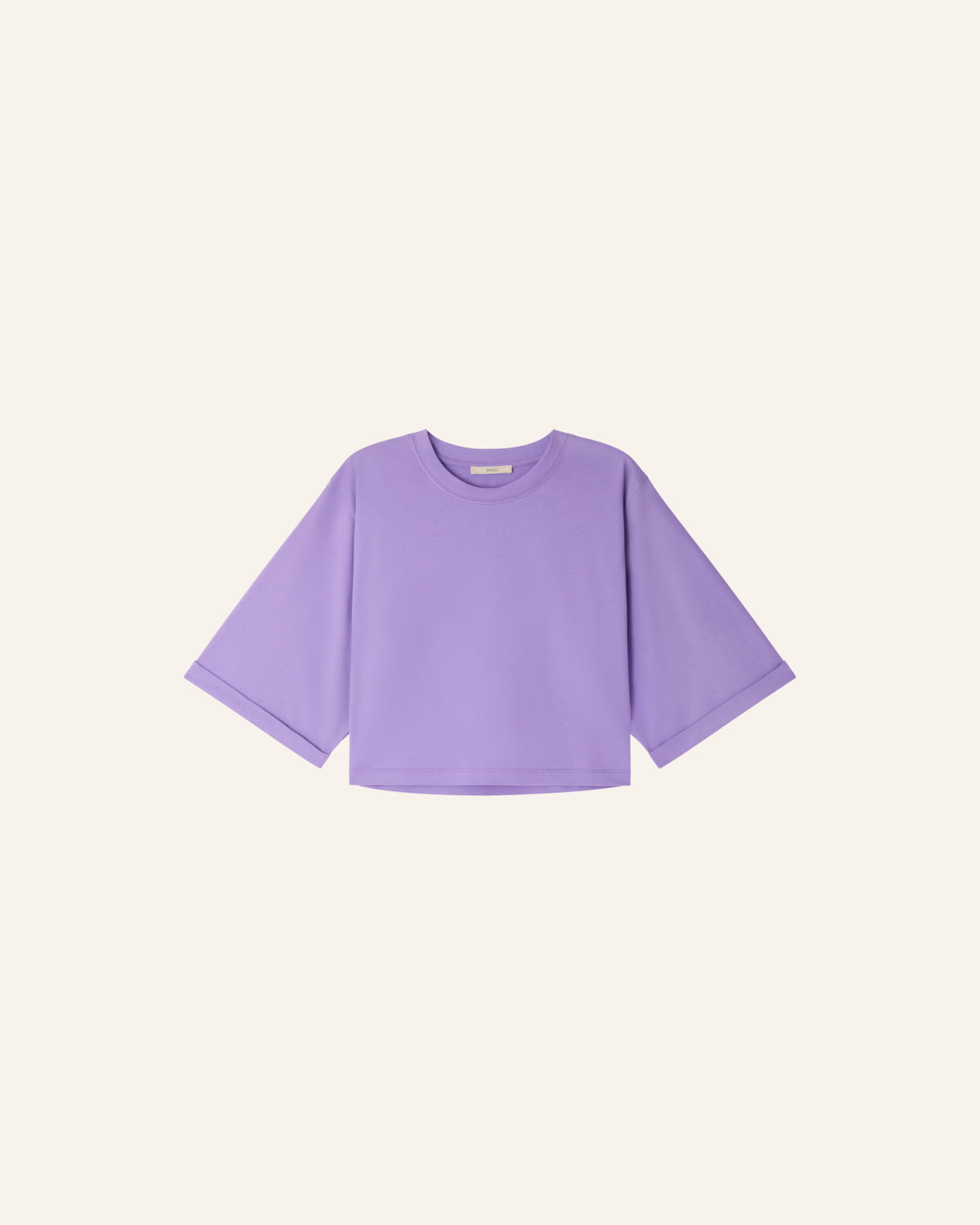 Cropped short-sleeve t-shirt in interlock jersey, made in Portugal.