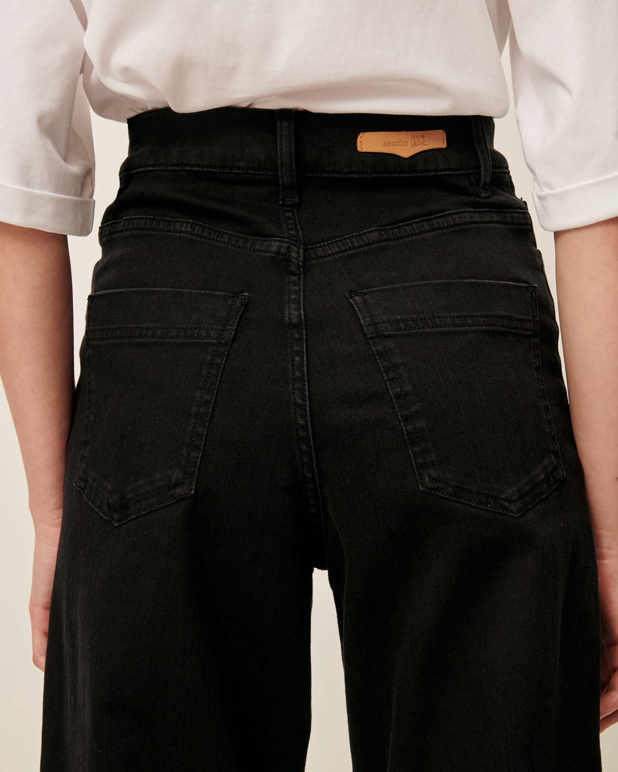 Leather patch on the back embossed with “Sessùn Blue”.