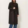 Concealed zipper closure with a button at the waist.