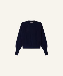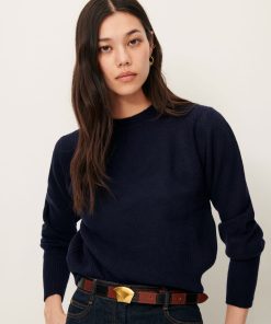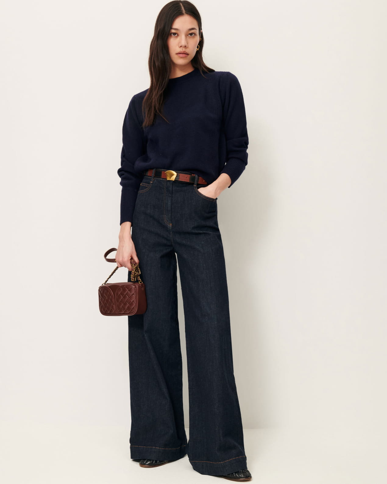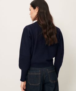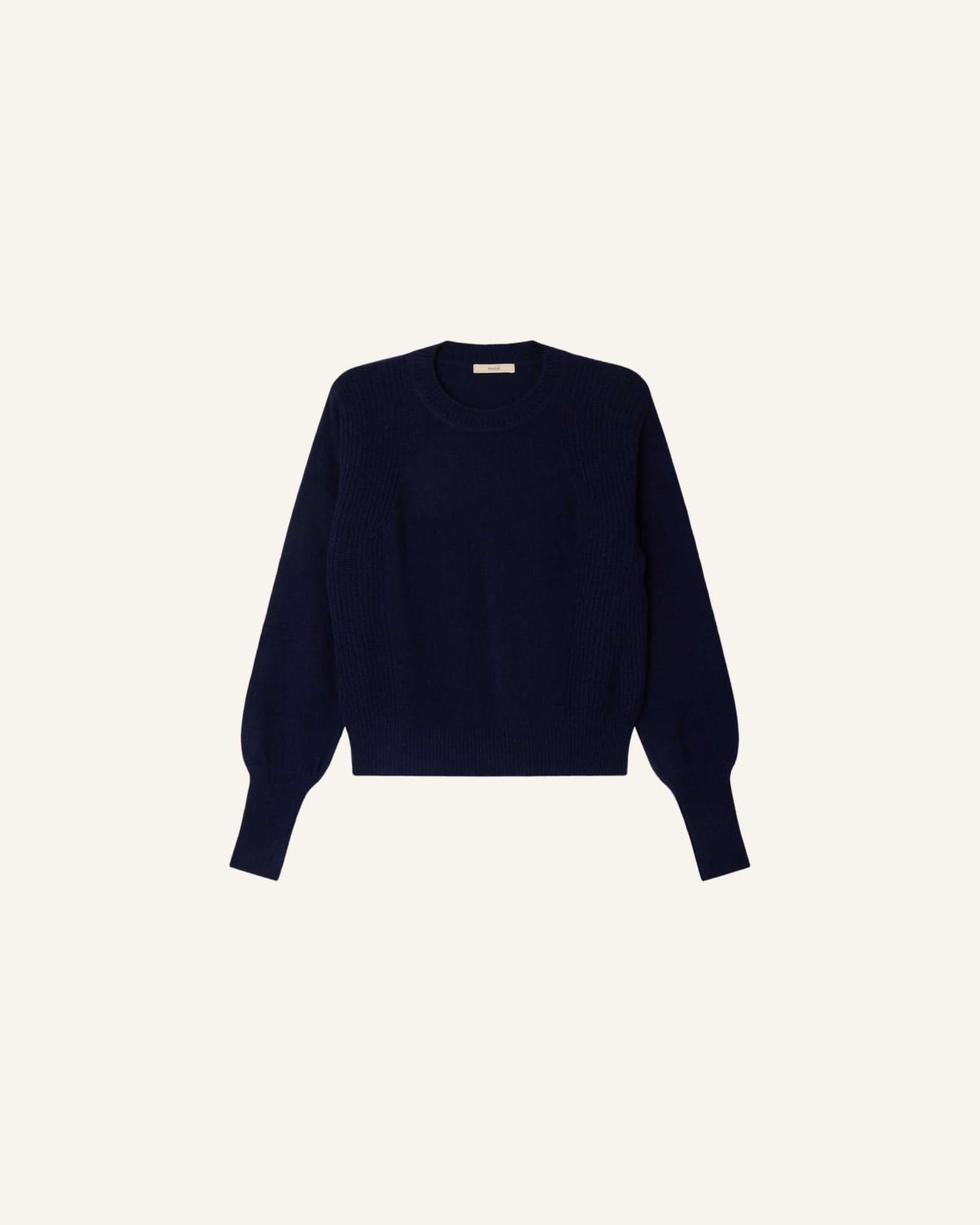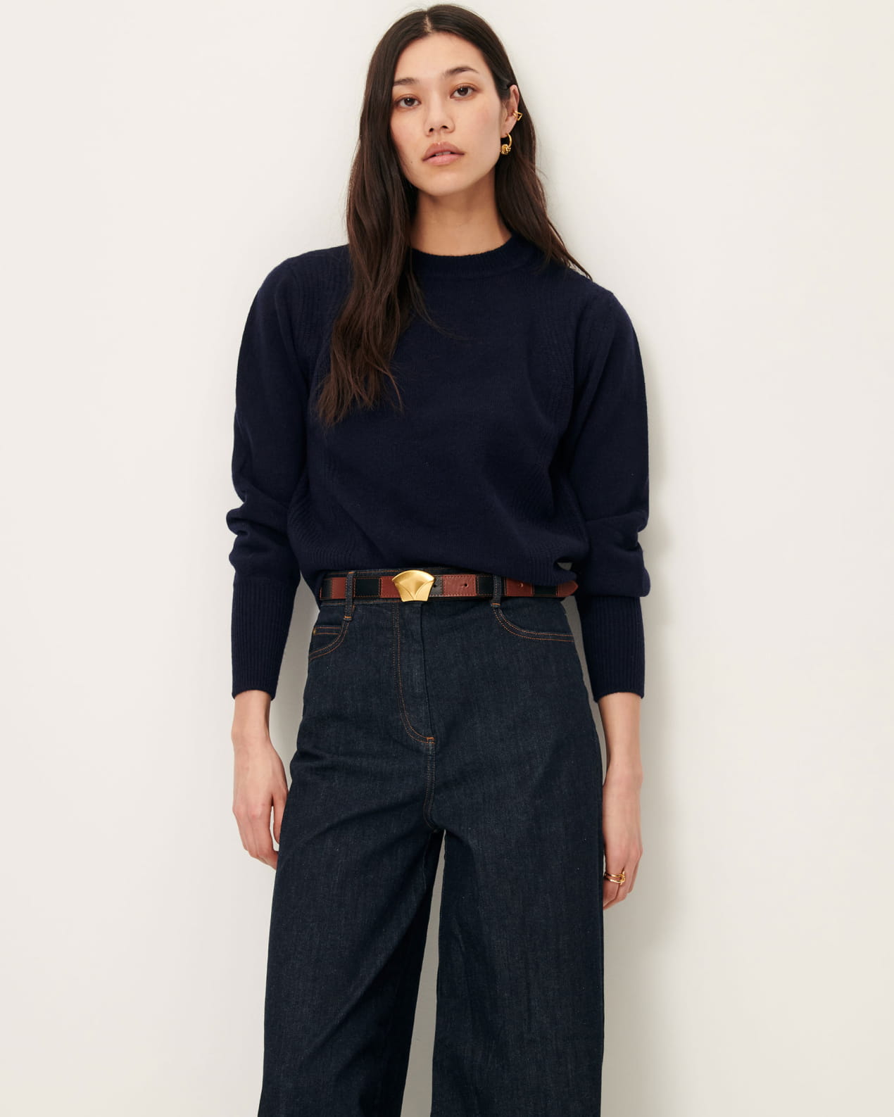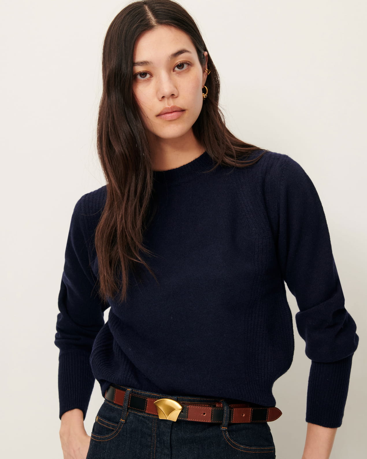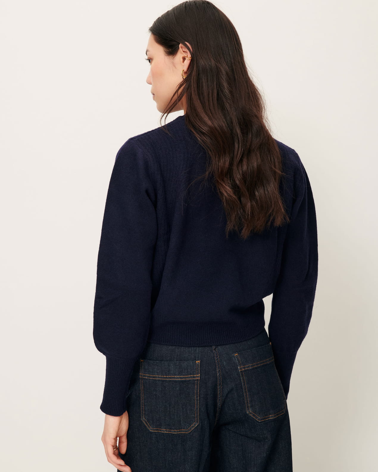 Close-fitting cropped jumper in stocking stitch knit with half-cardigan ribbing details at armholes, knitted in Italy.
