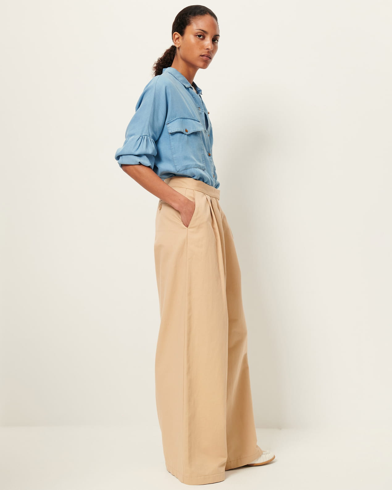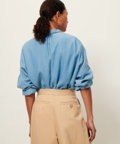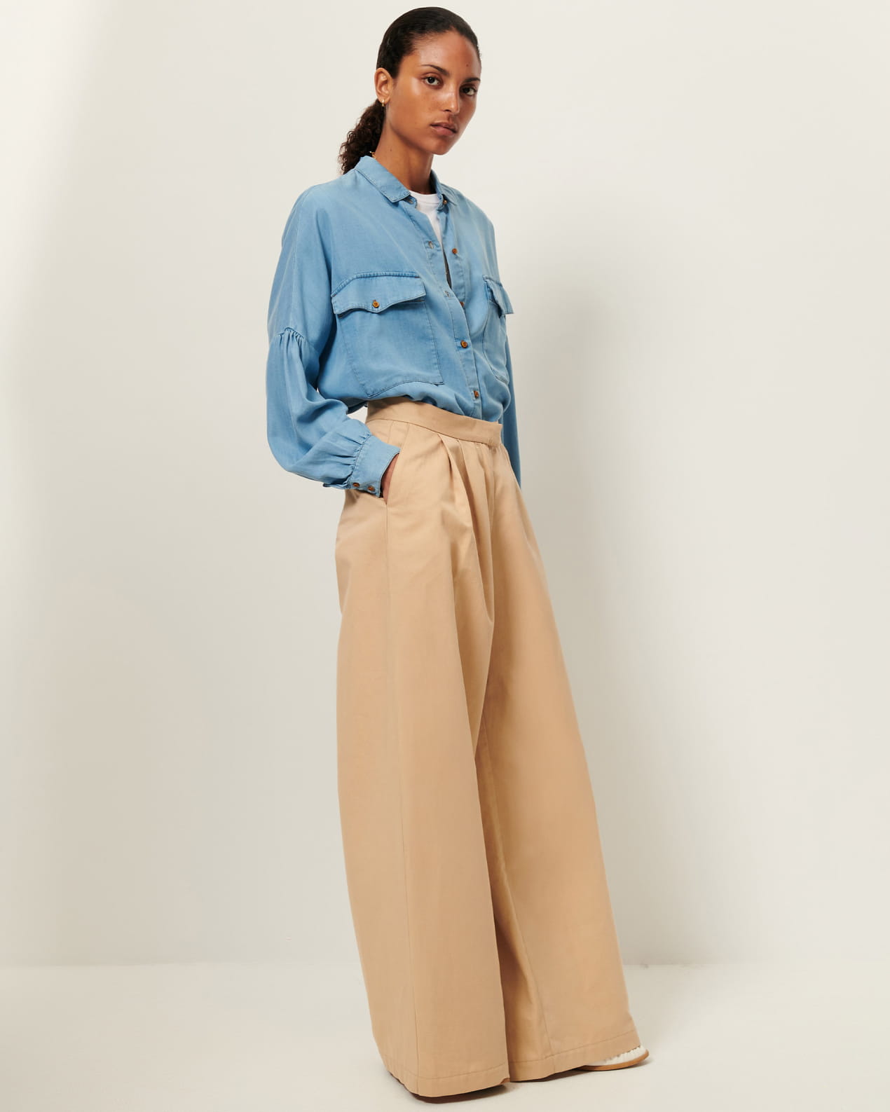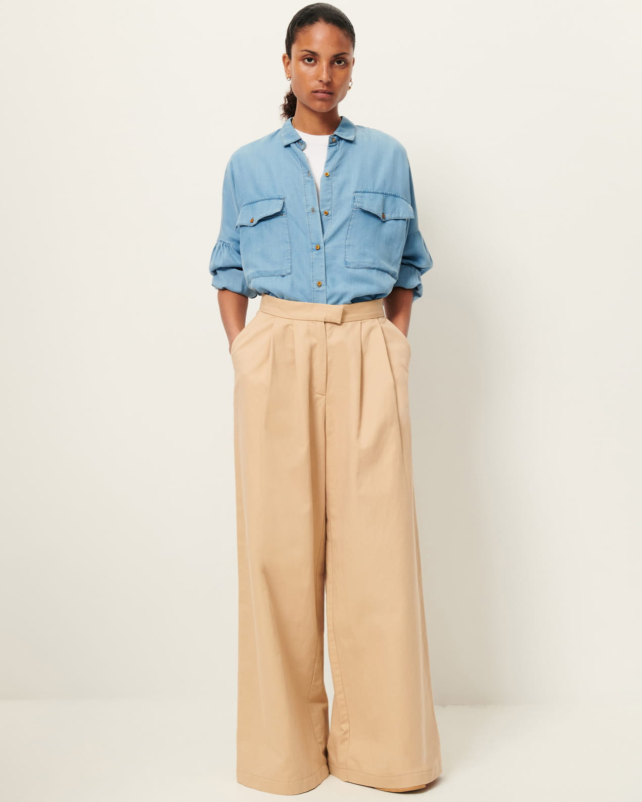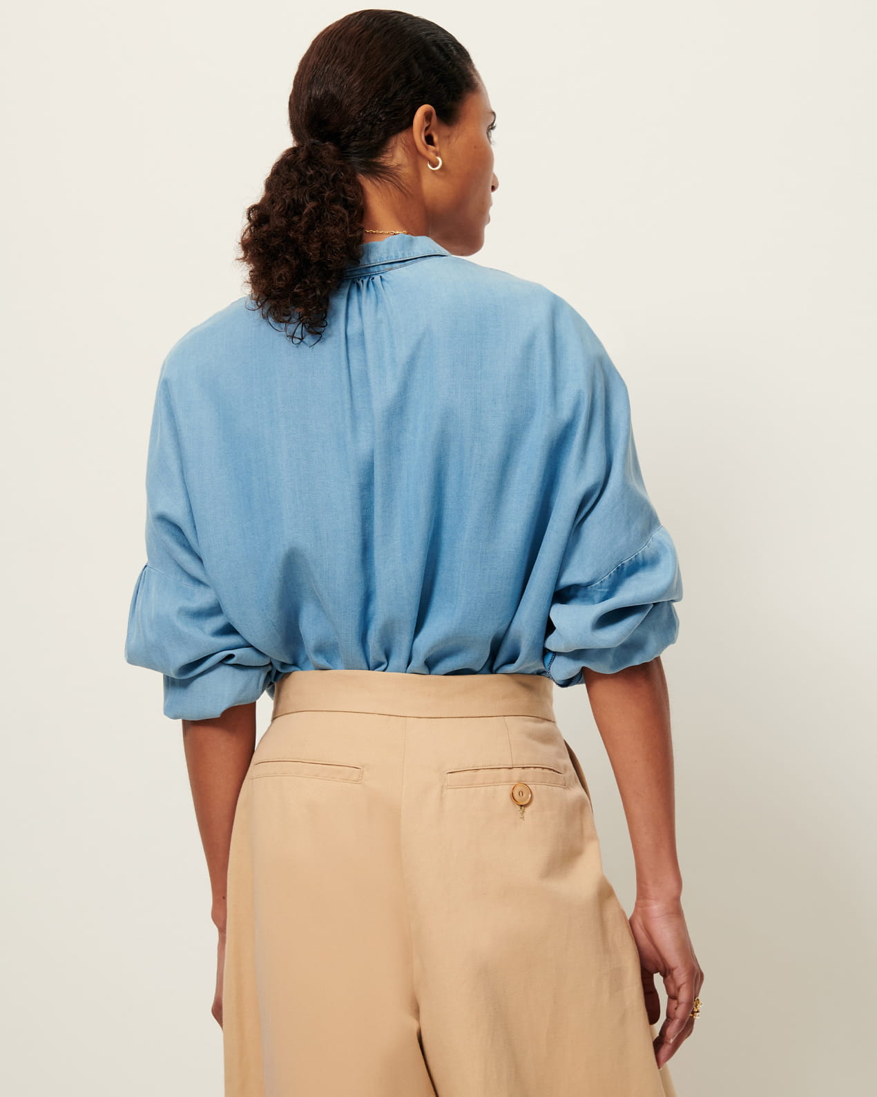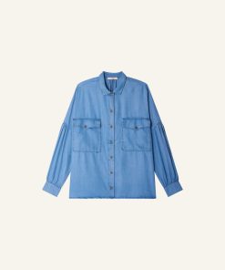 Shirt with patch pockets in a washed lyocell chambray fabric, woven in Spain.
