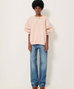 Oversized sweatshirt in mottled slub fleece, made in Portugal.