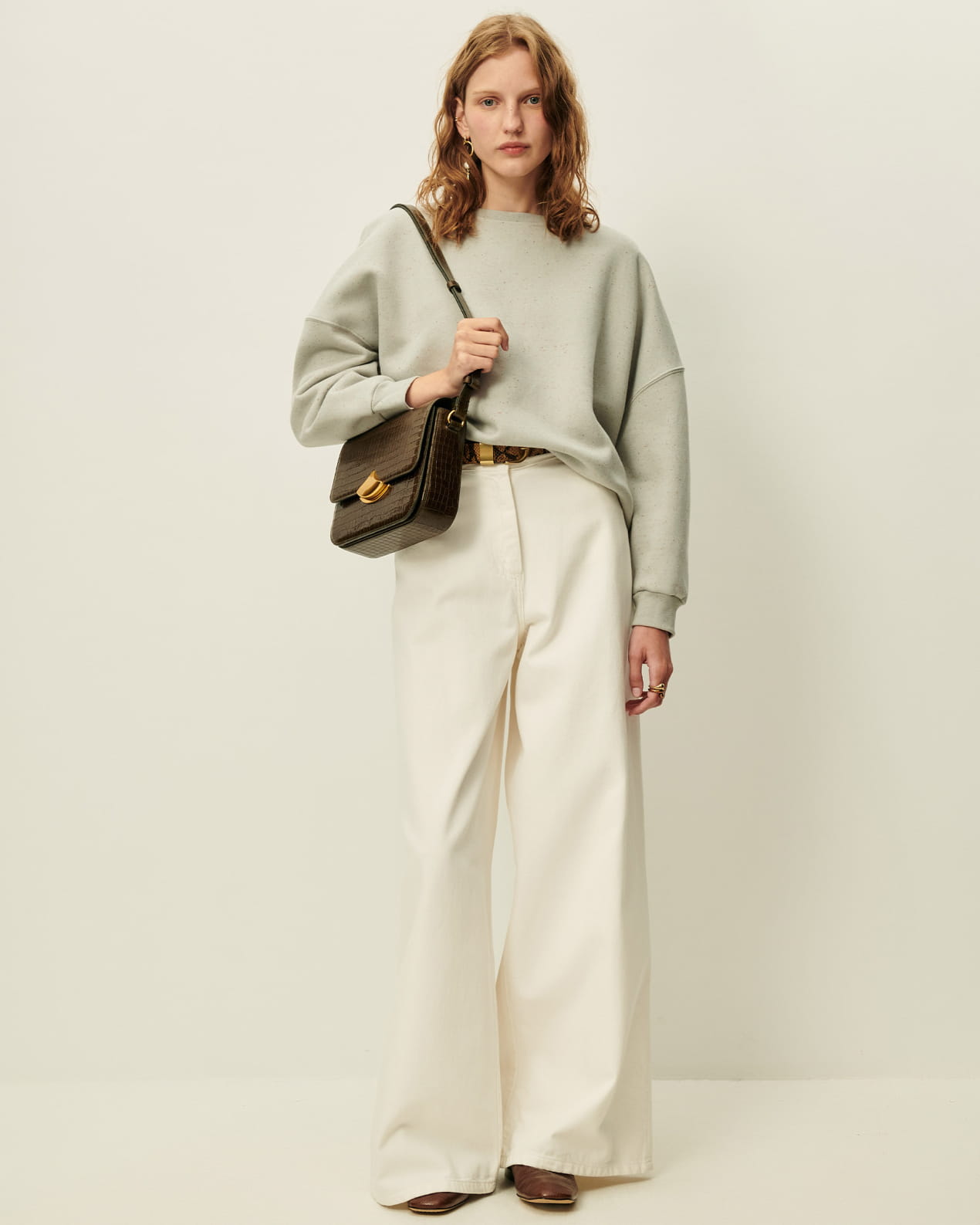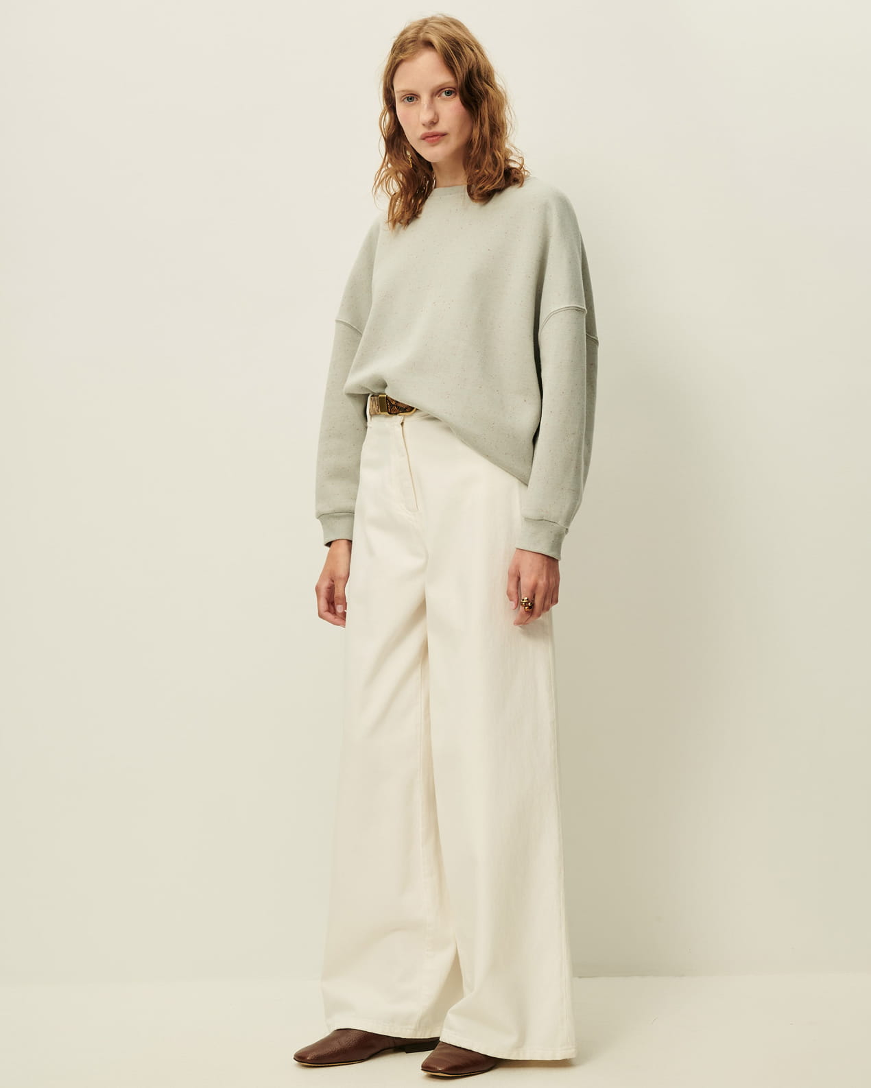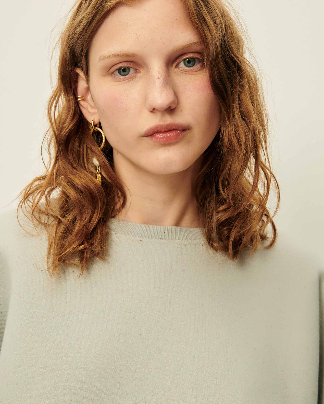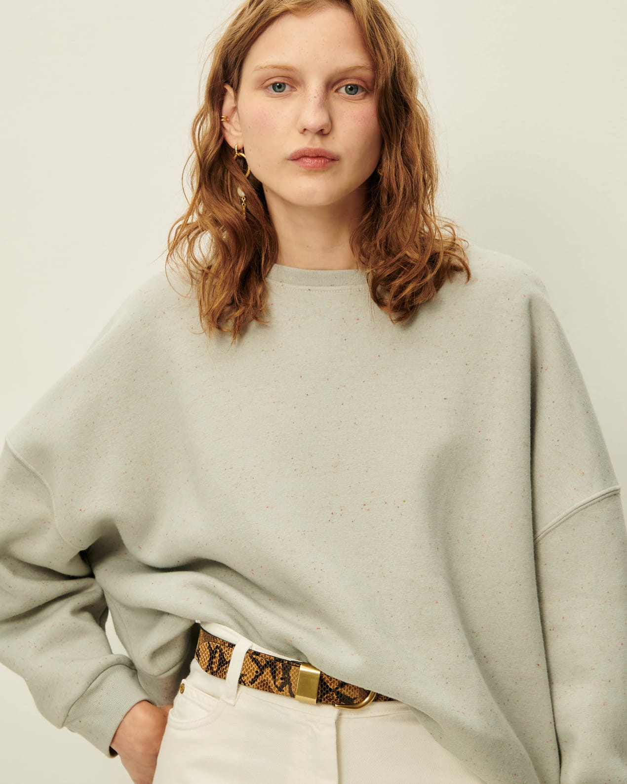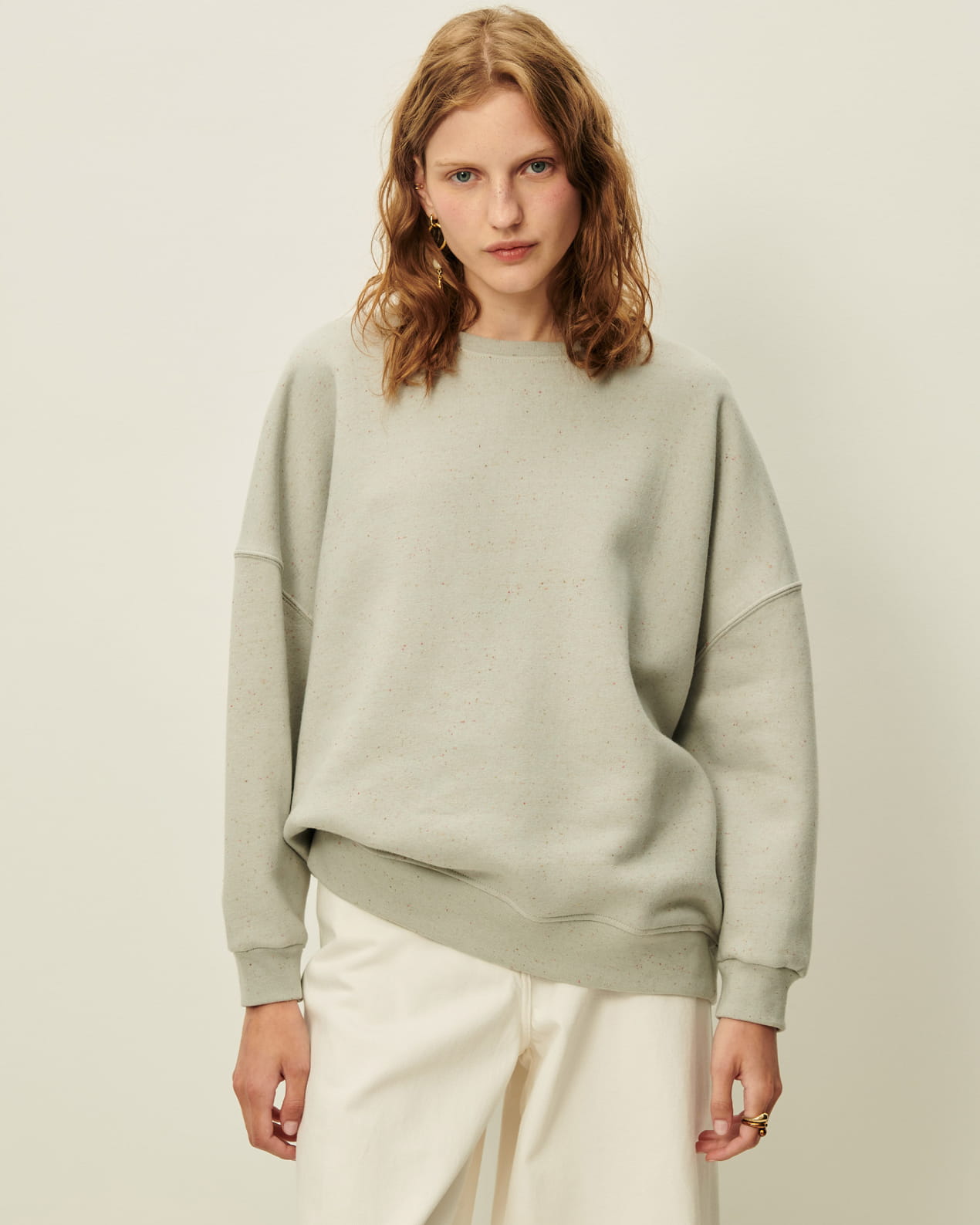 Oversized sweatshirt in knotted, heathered fleece.