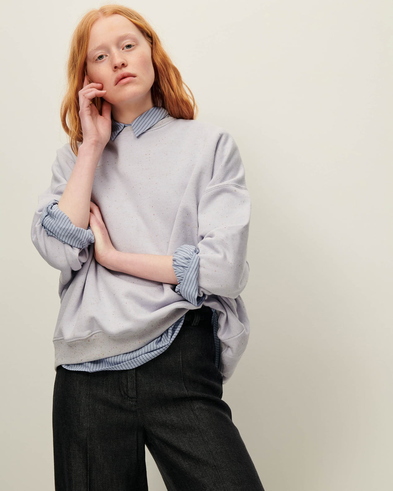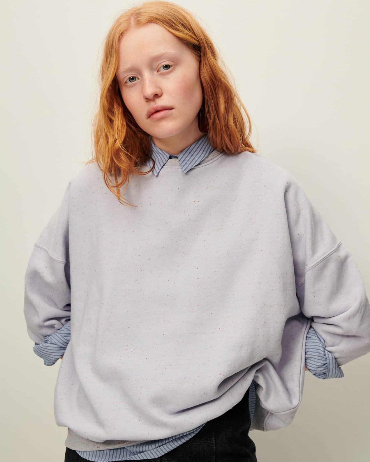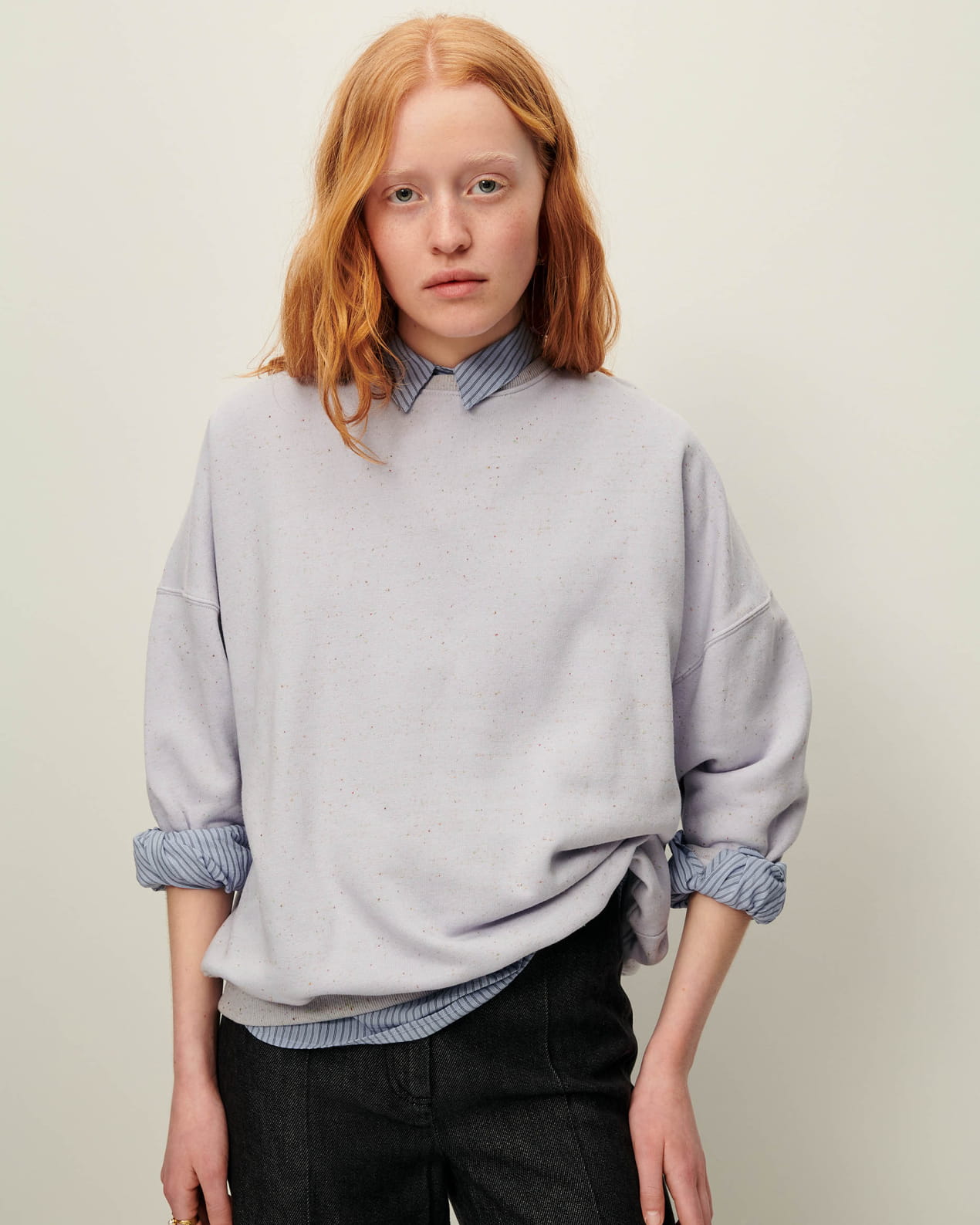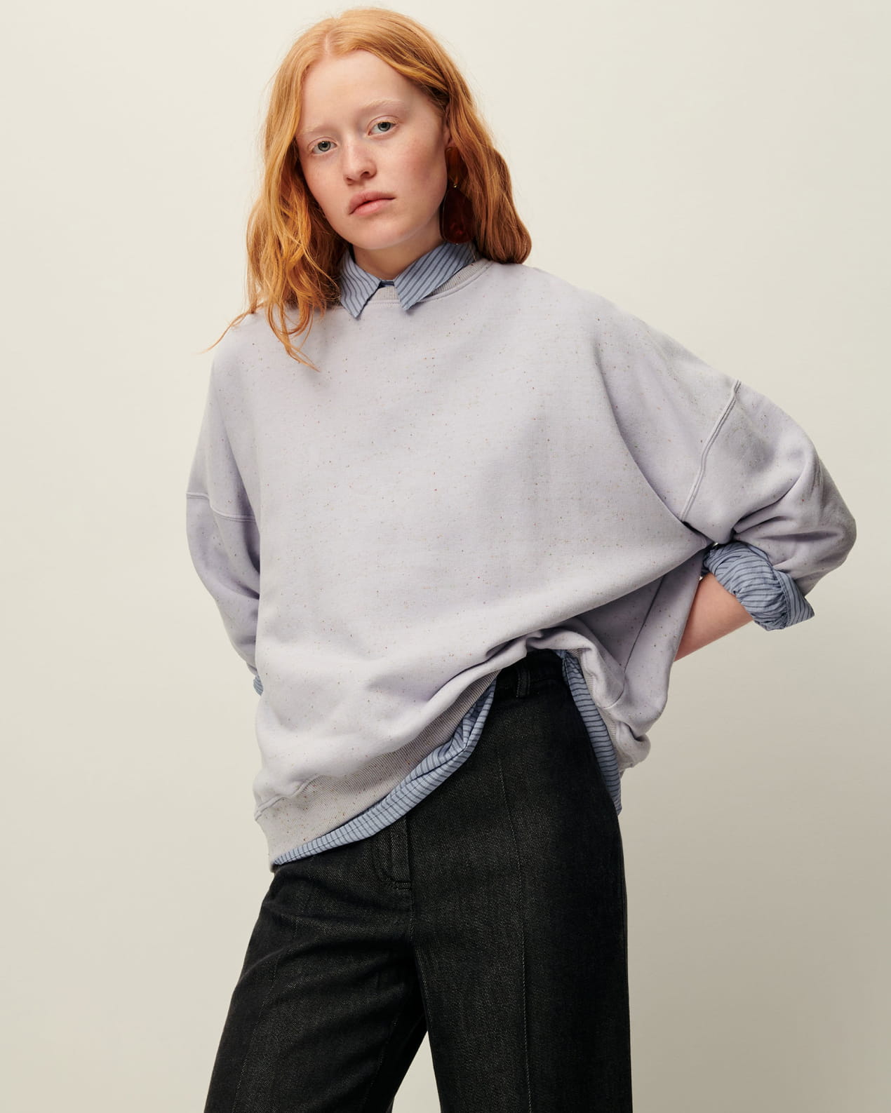 Oversized sweater in flecked fleece, made in Portugal.
