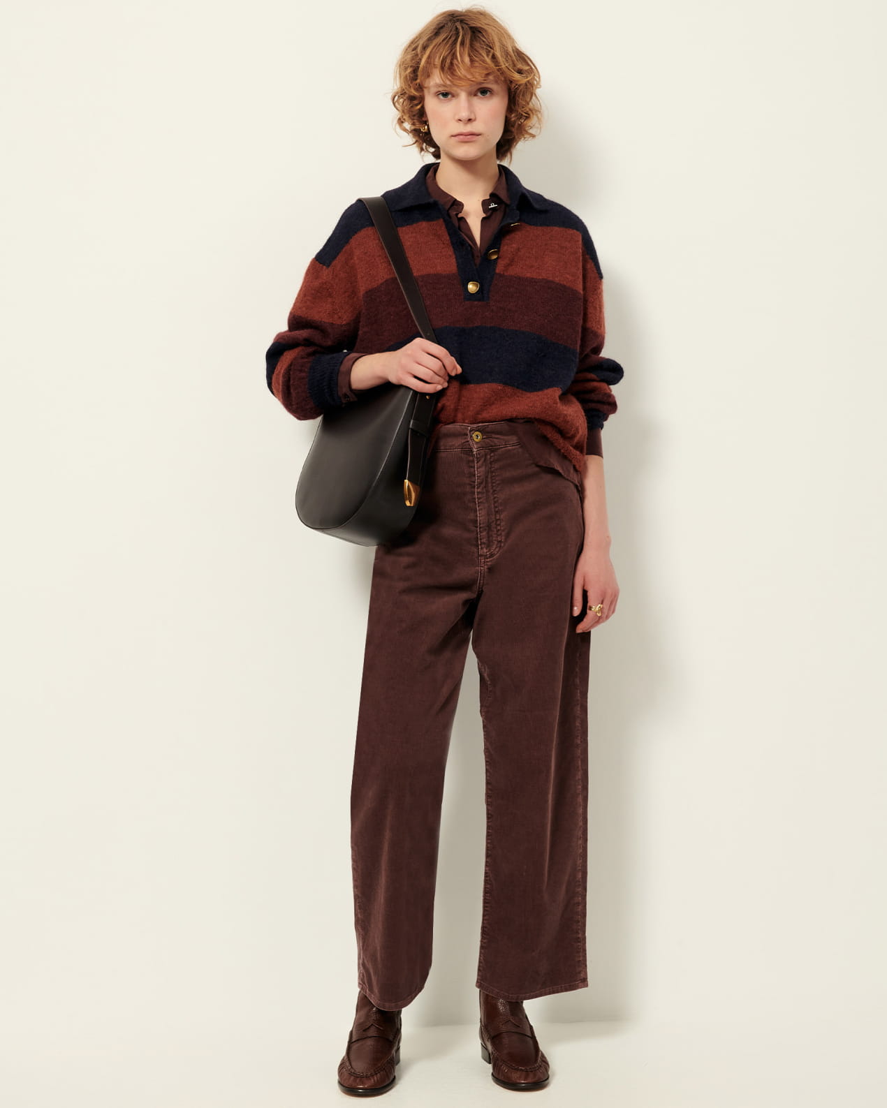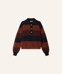 Striped long-sleeve polo-style sweater in a fluffy jersey knit, knitted in Italy.