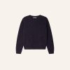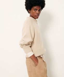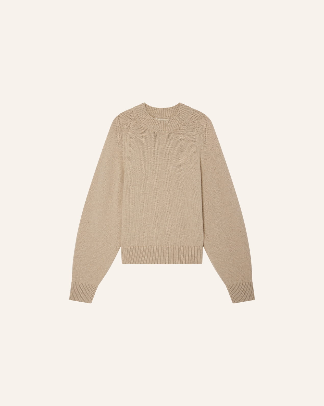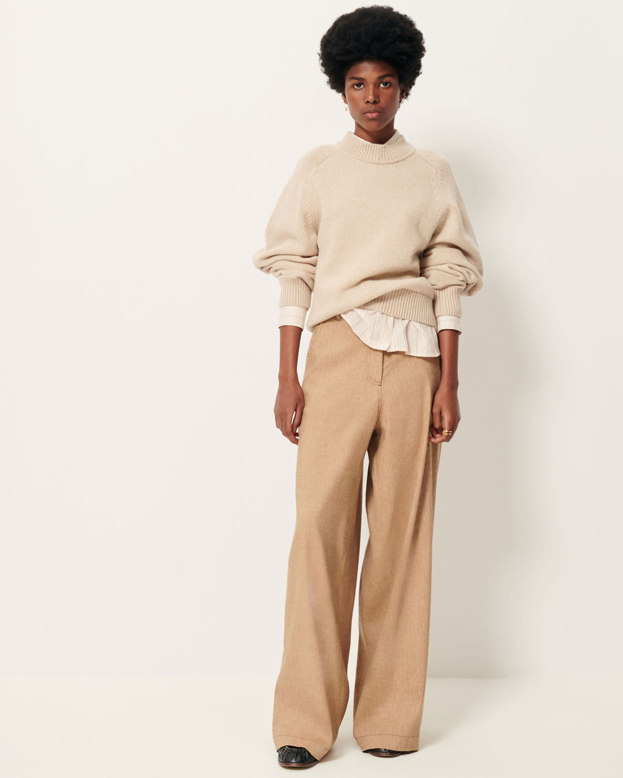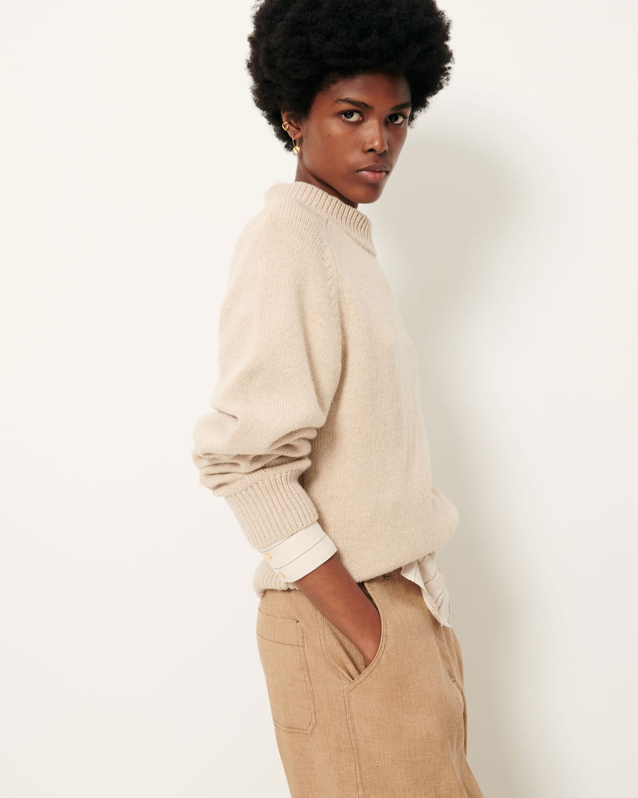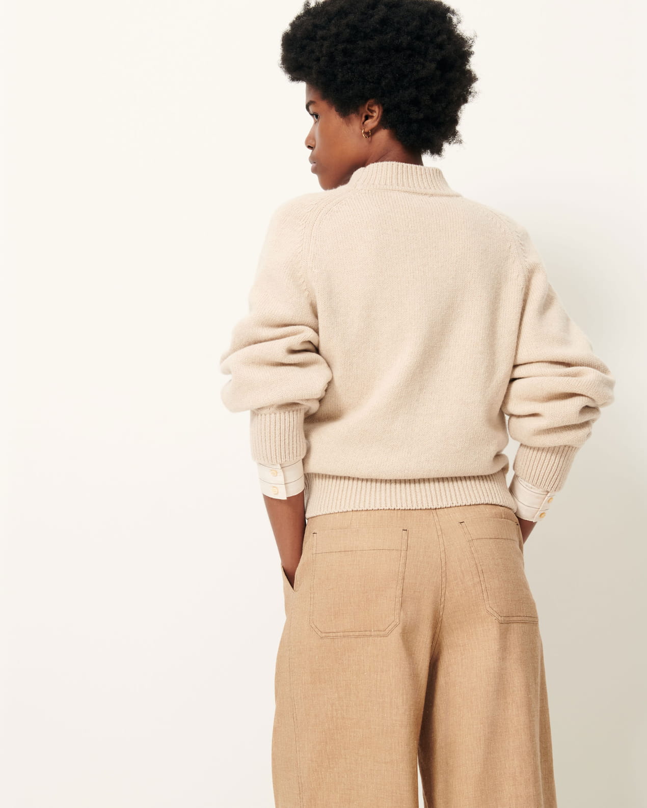 Fitted sweater with saddle shoulders and balloon sleeves in jersey stitch knit.