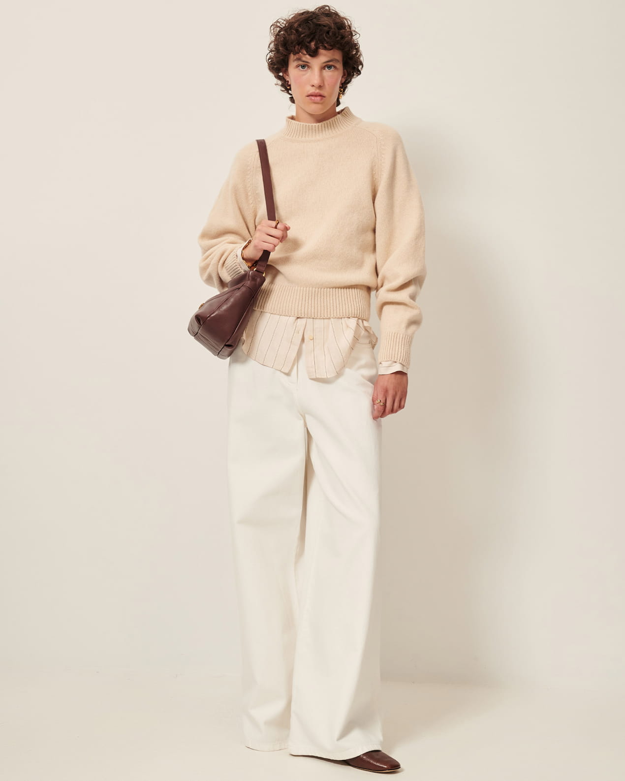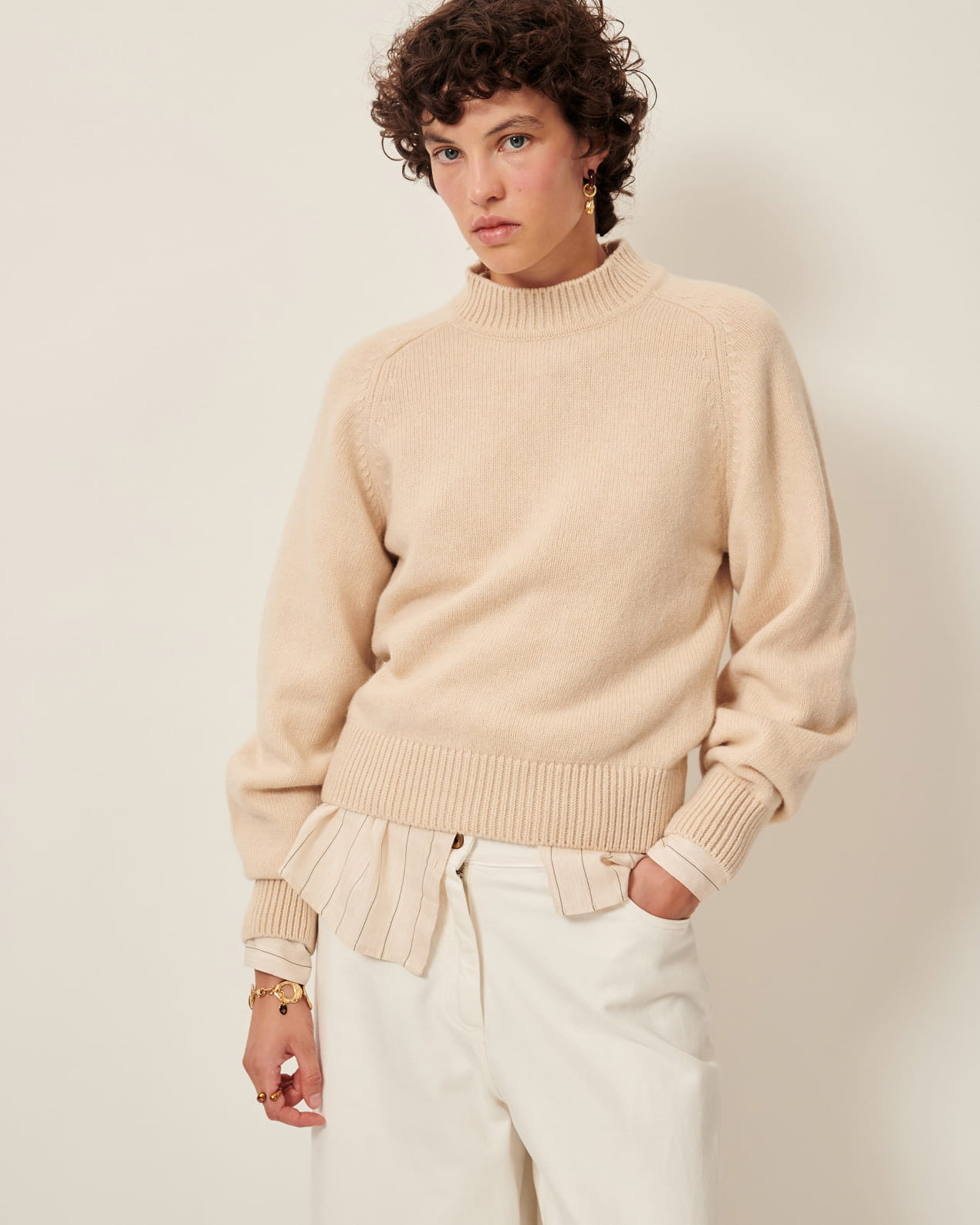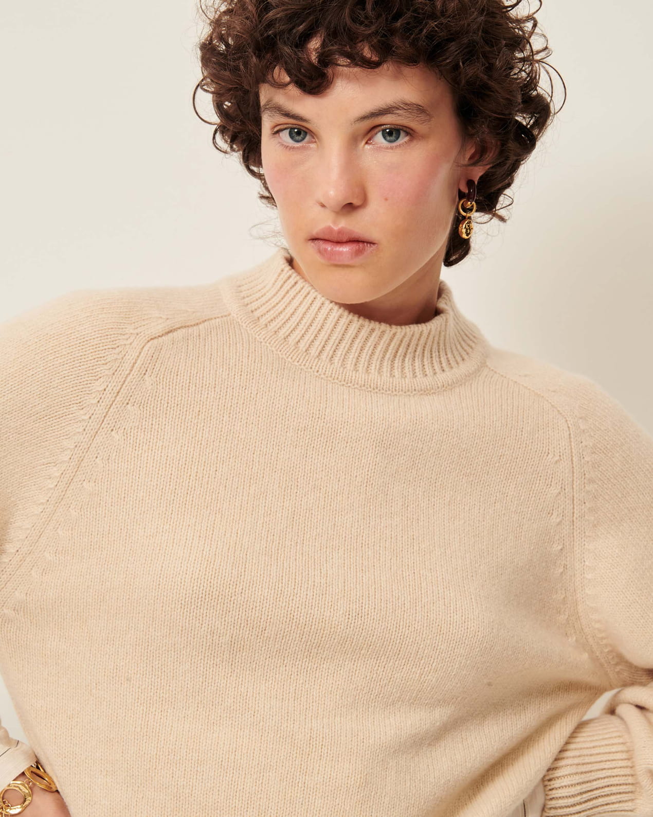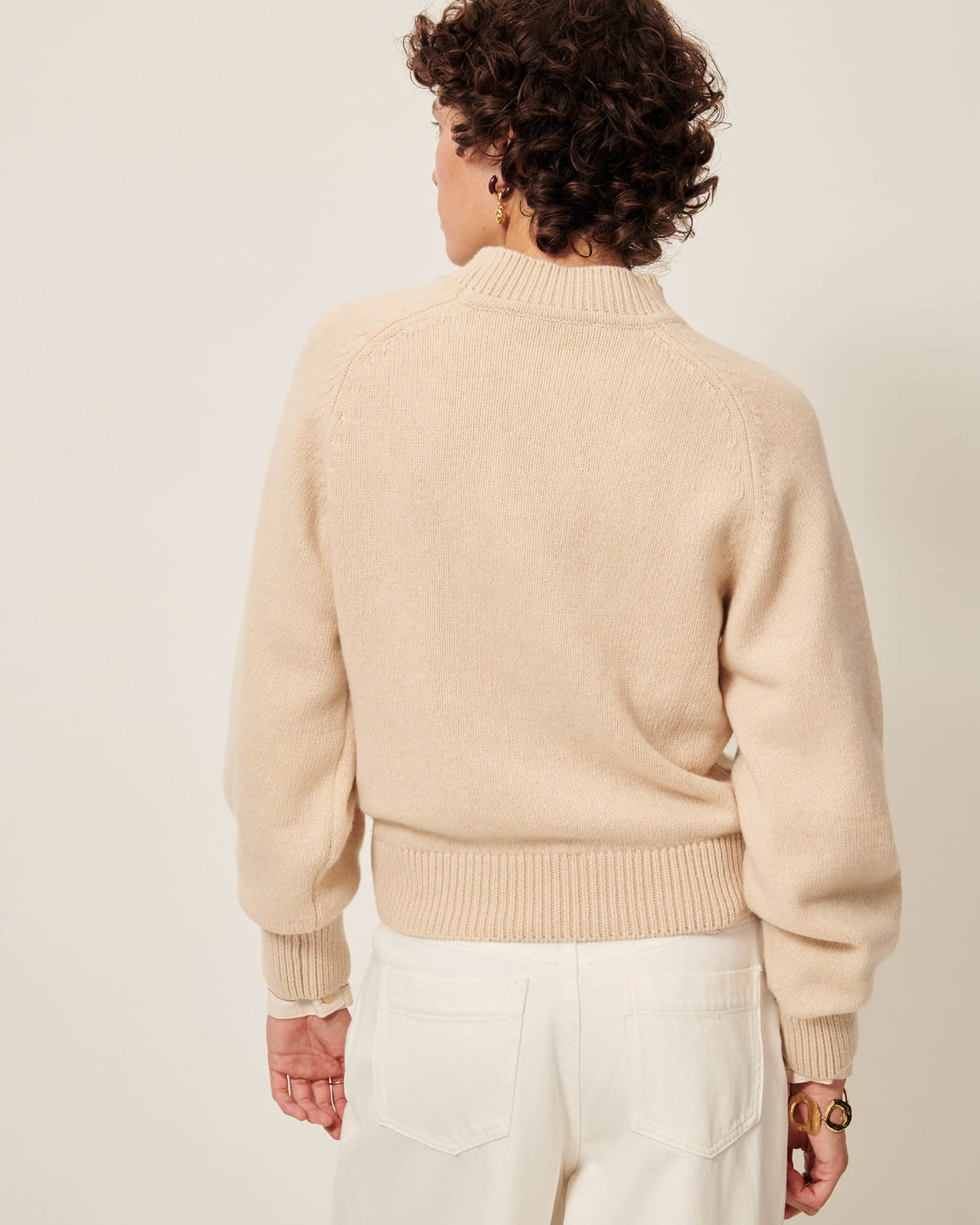 Sweater with balloon sleeves in a Merino wool and cashmere knit.