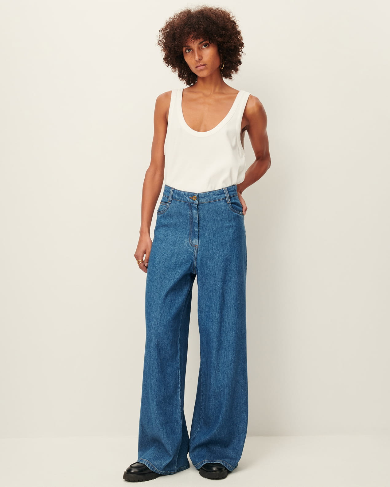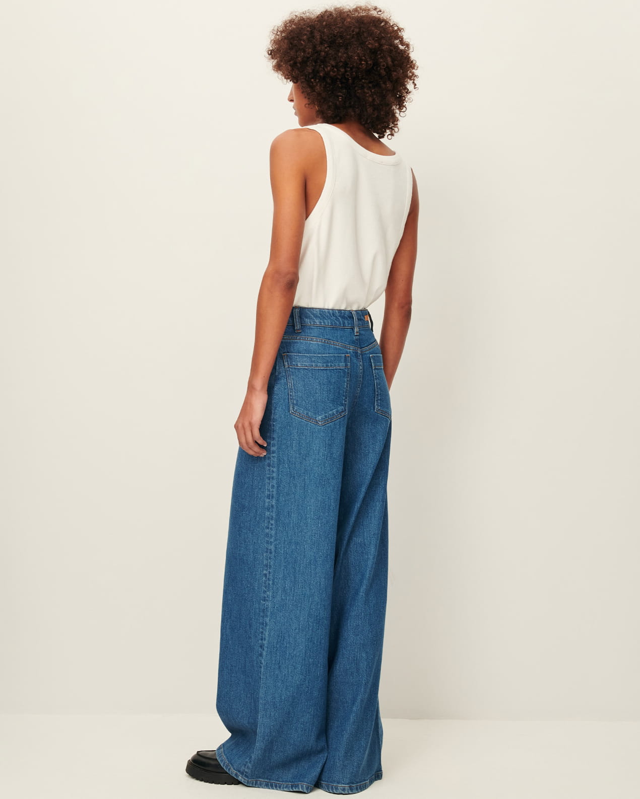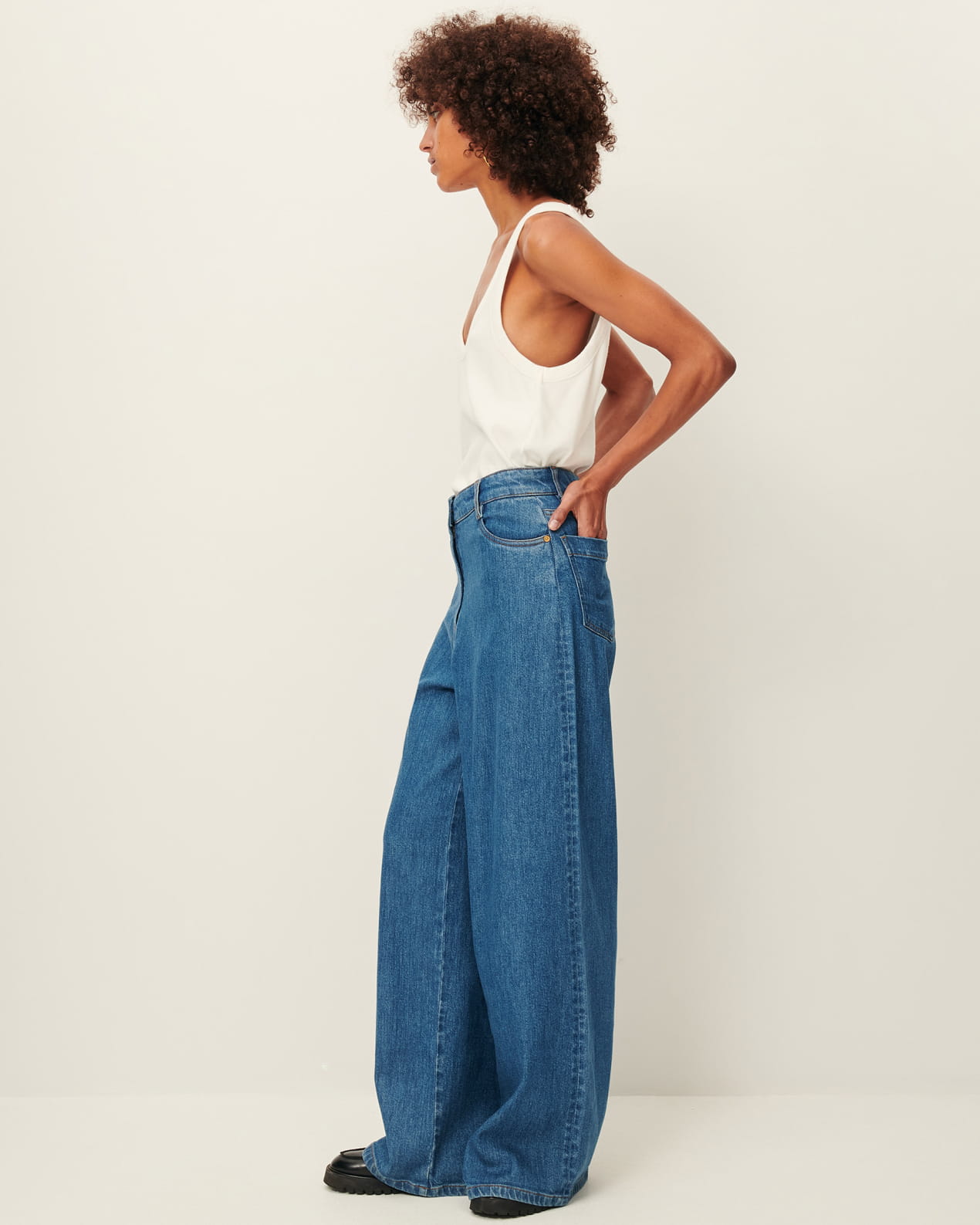 High-rise wide-leg jeans in a fluid, single wash denim, woven in Spain.
