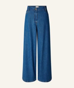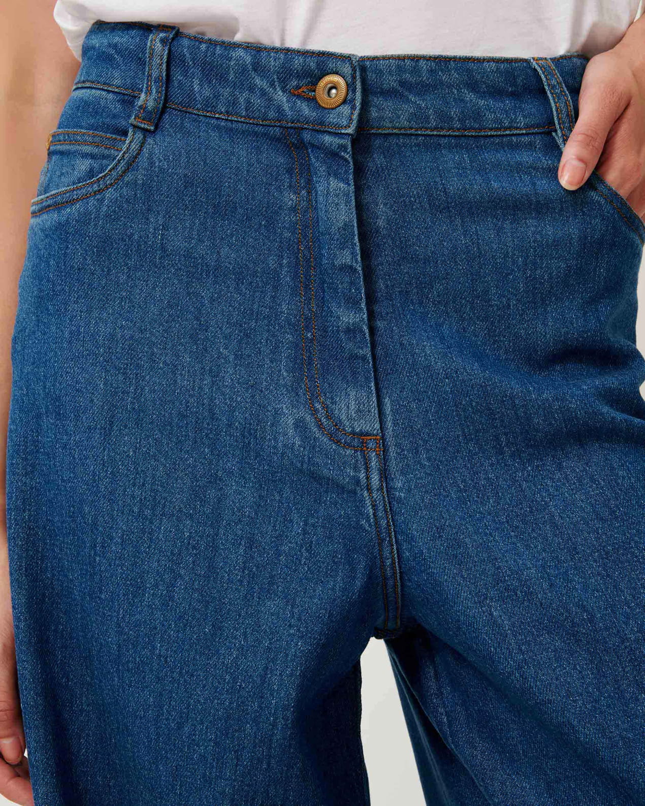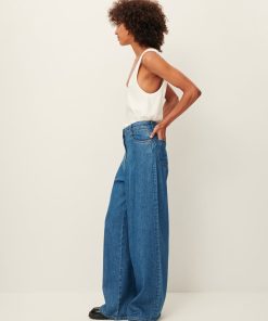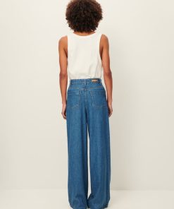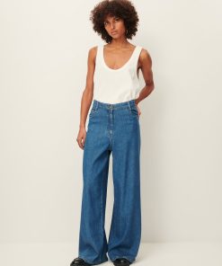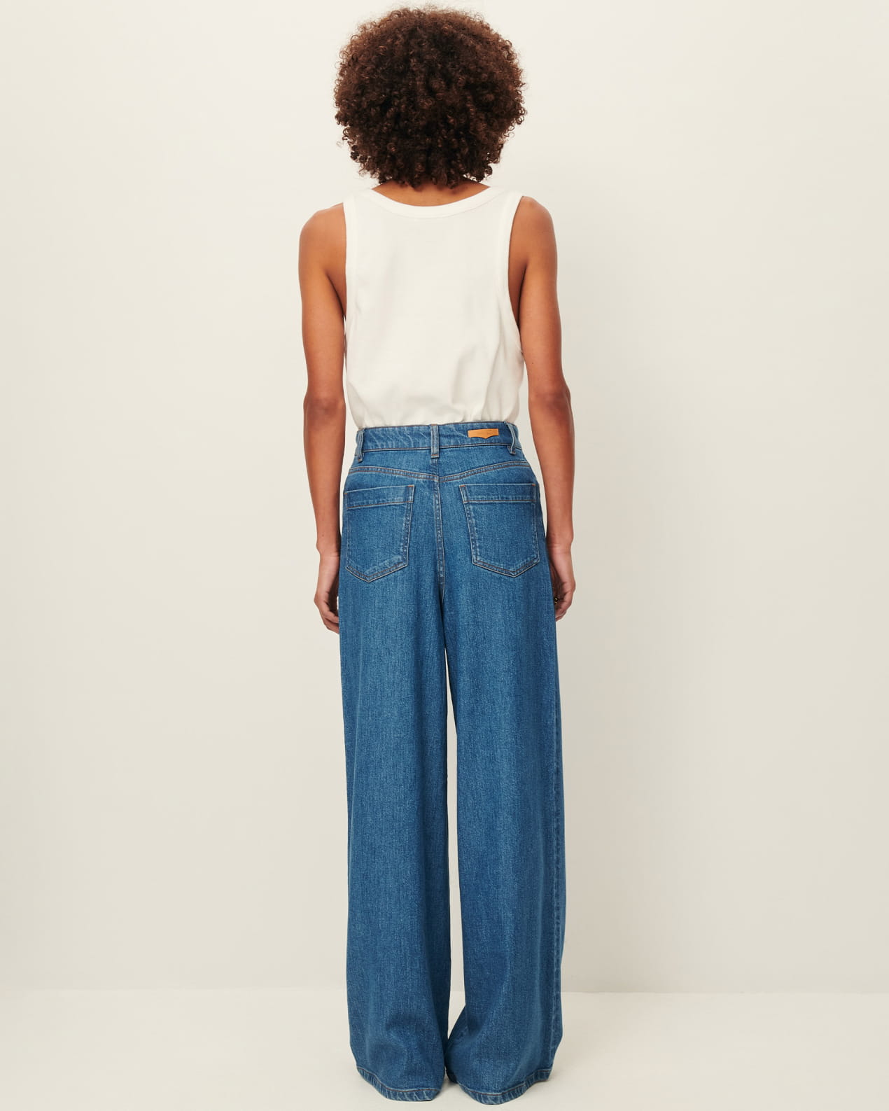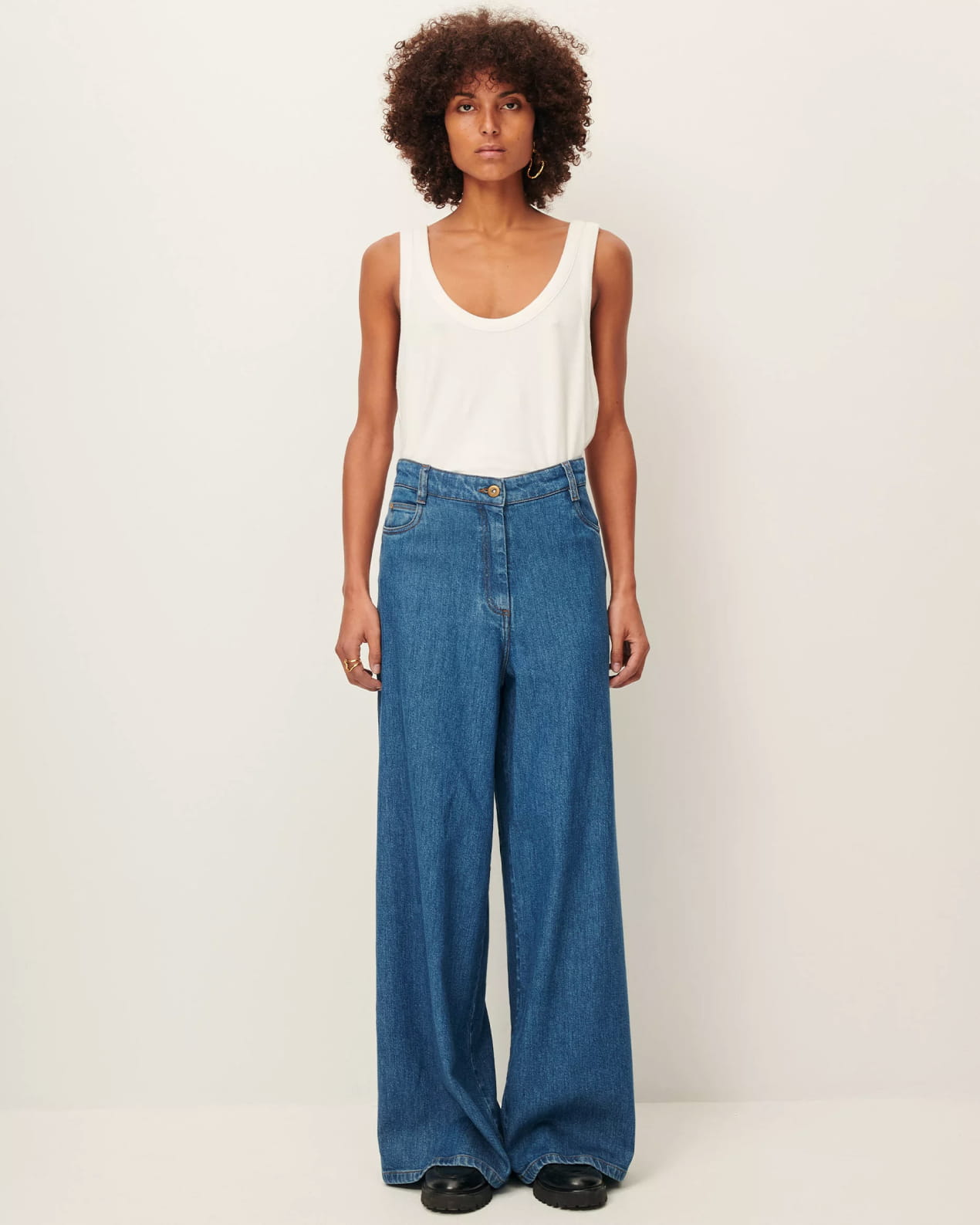High-rise wide-leg jeans in a fluid, single wash denim, woven in Spain.