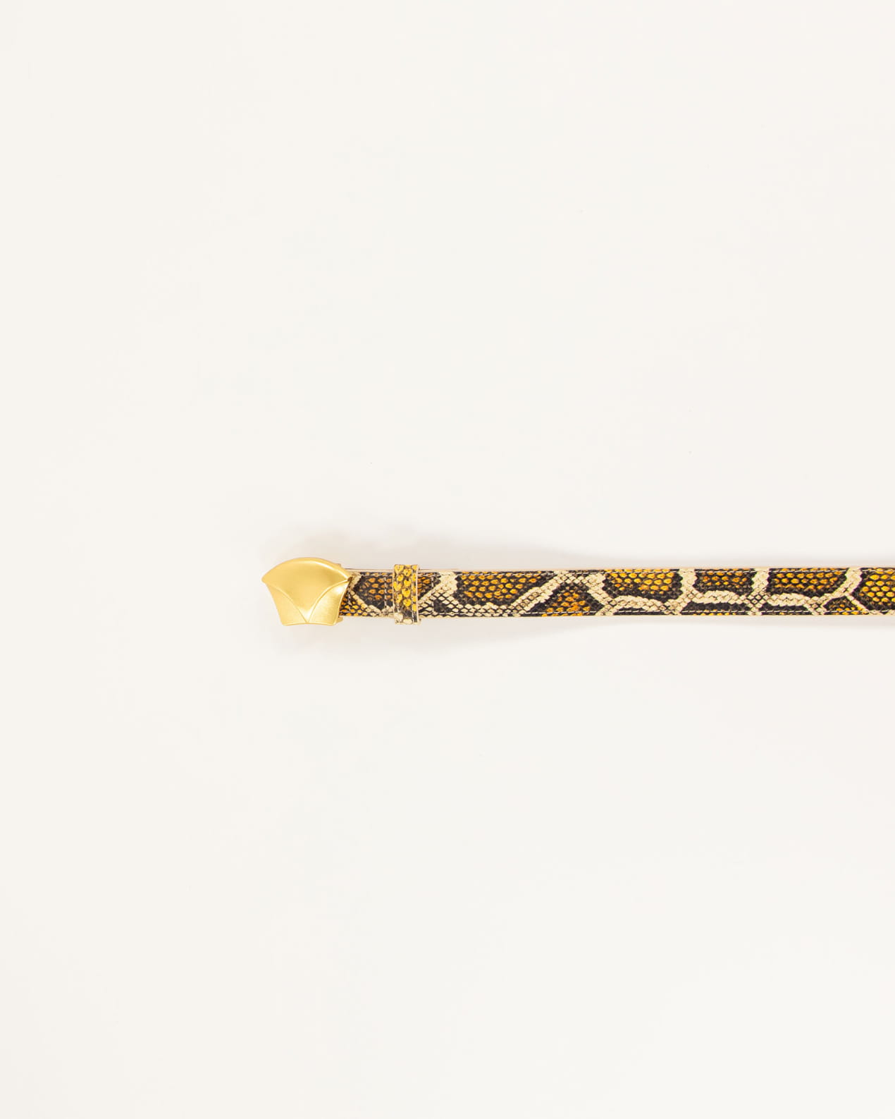 Python print leather belt. Buckle with collar stud-style fastening. Developed exclusively by Sessùn.
