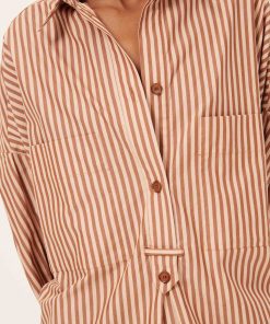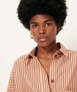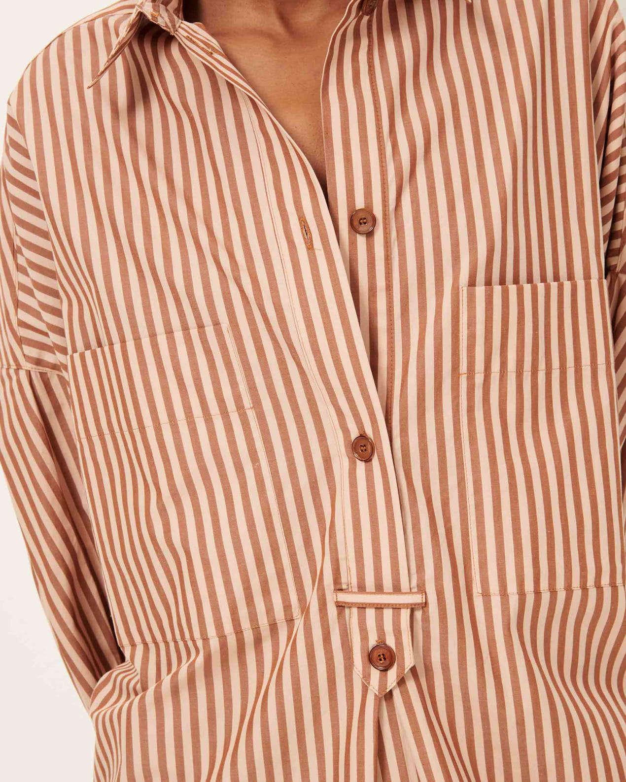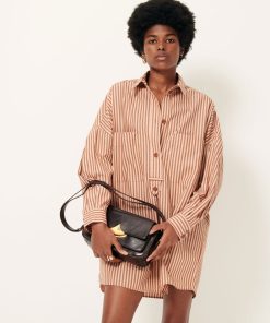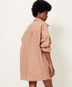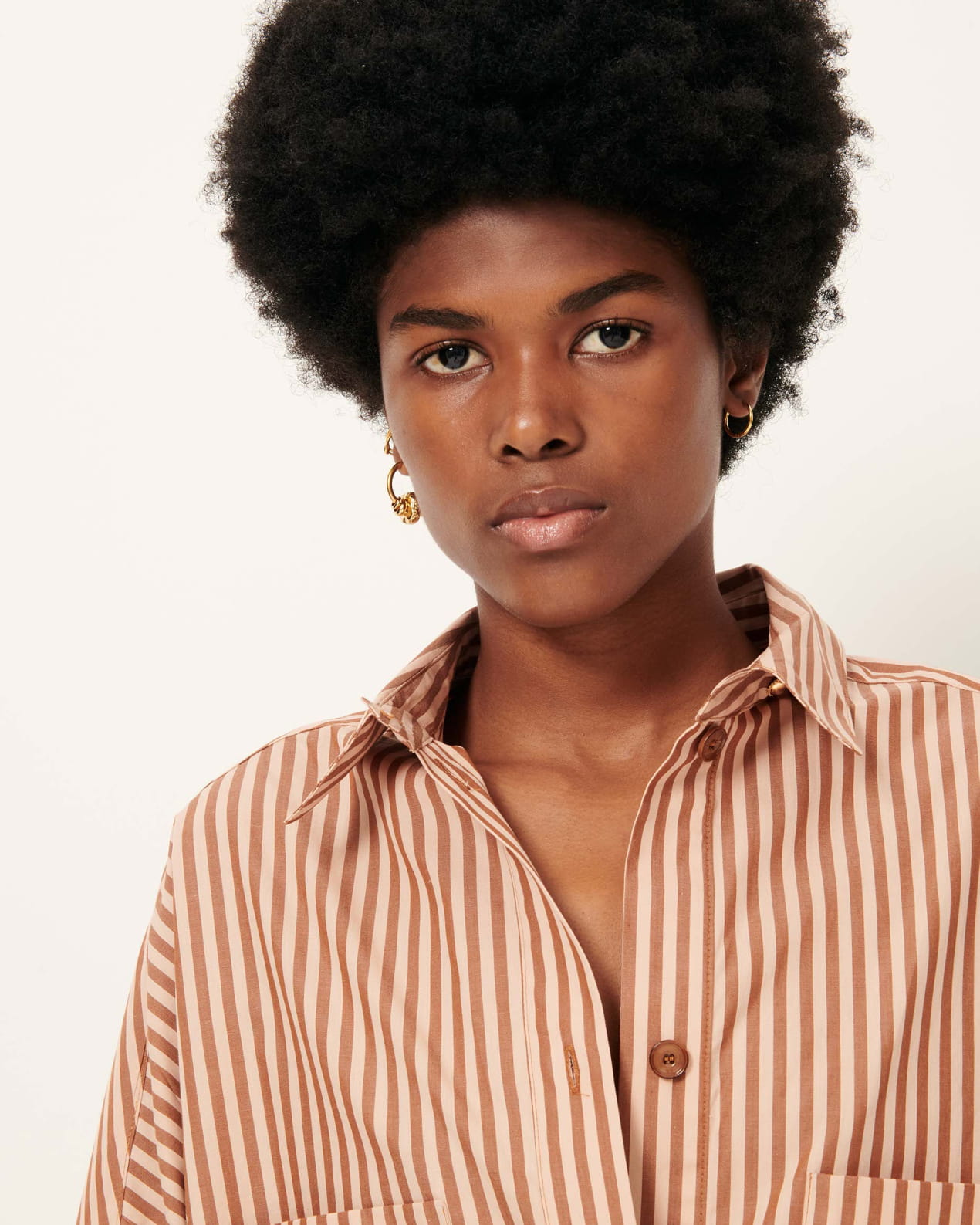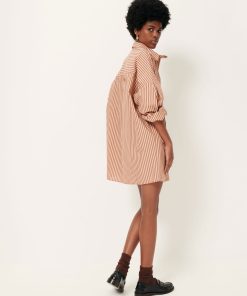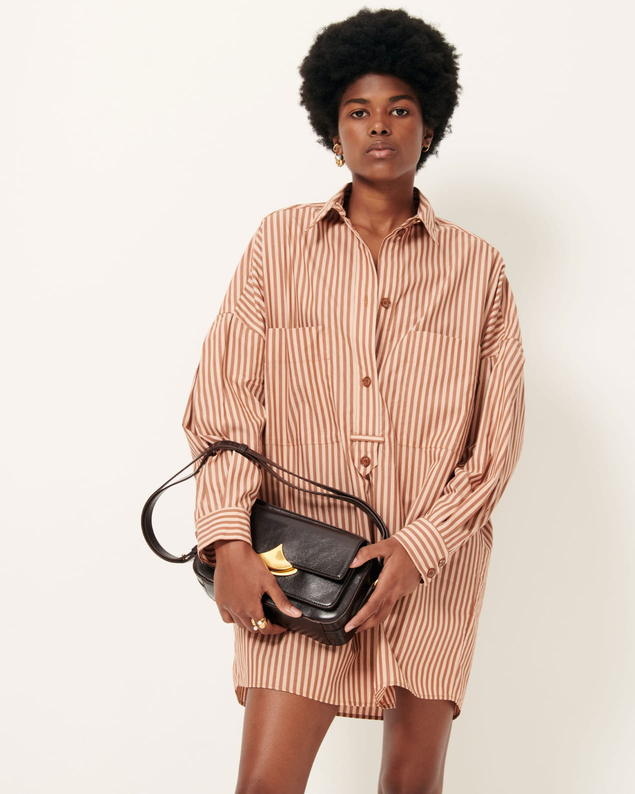 Short shirt dress with patch pockets in compact cotton poplin with two-tone stripes, woven in Italy, exclusive to Sessùn.