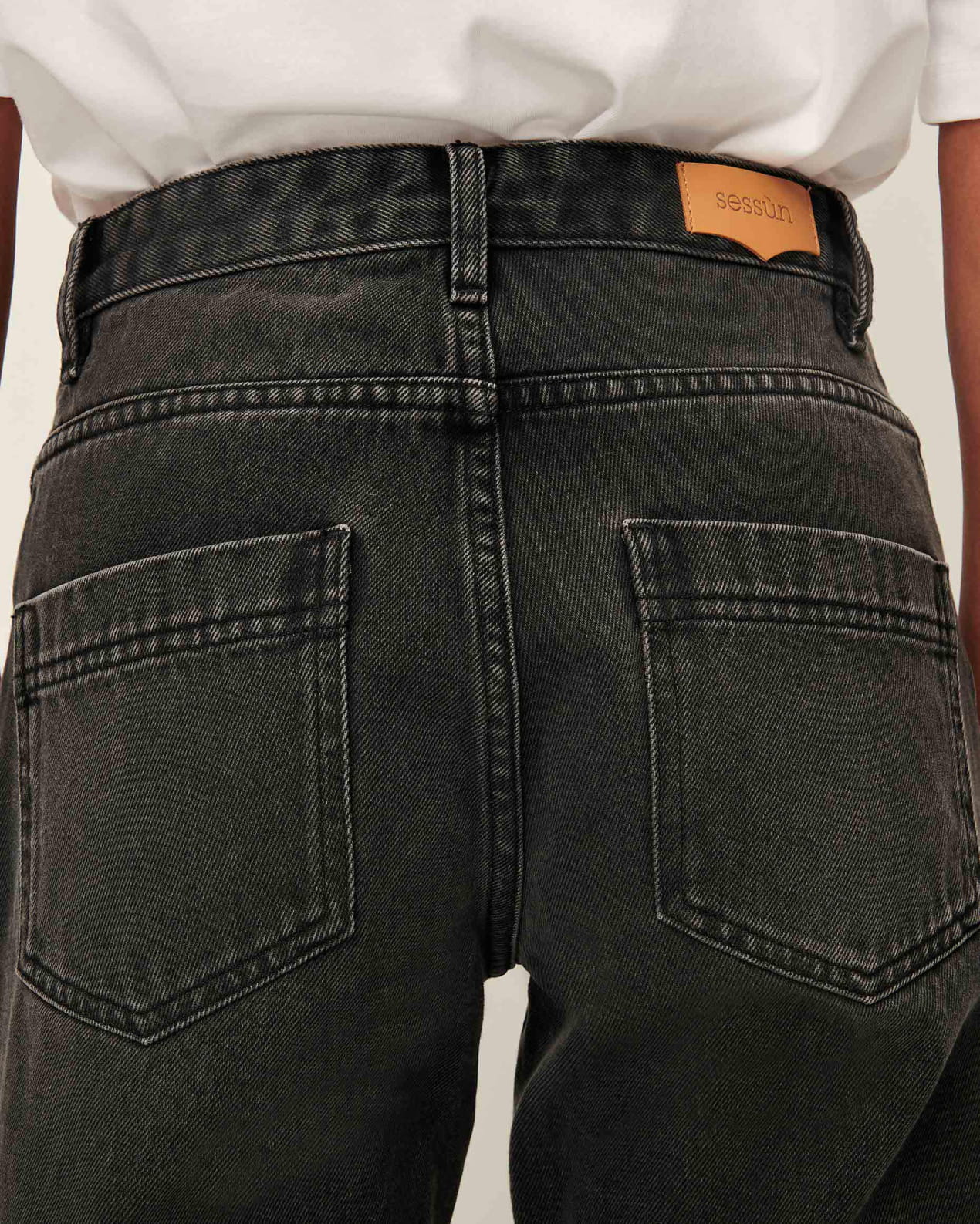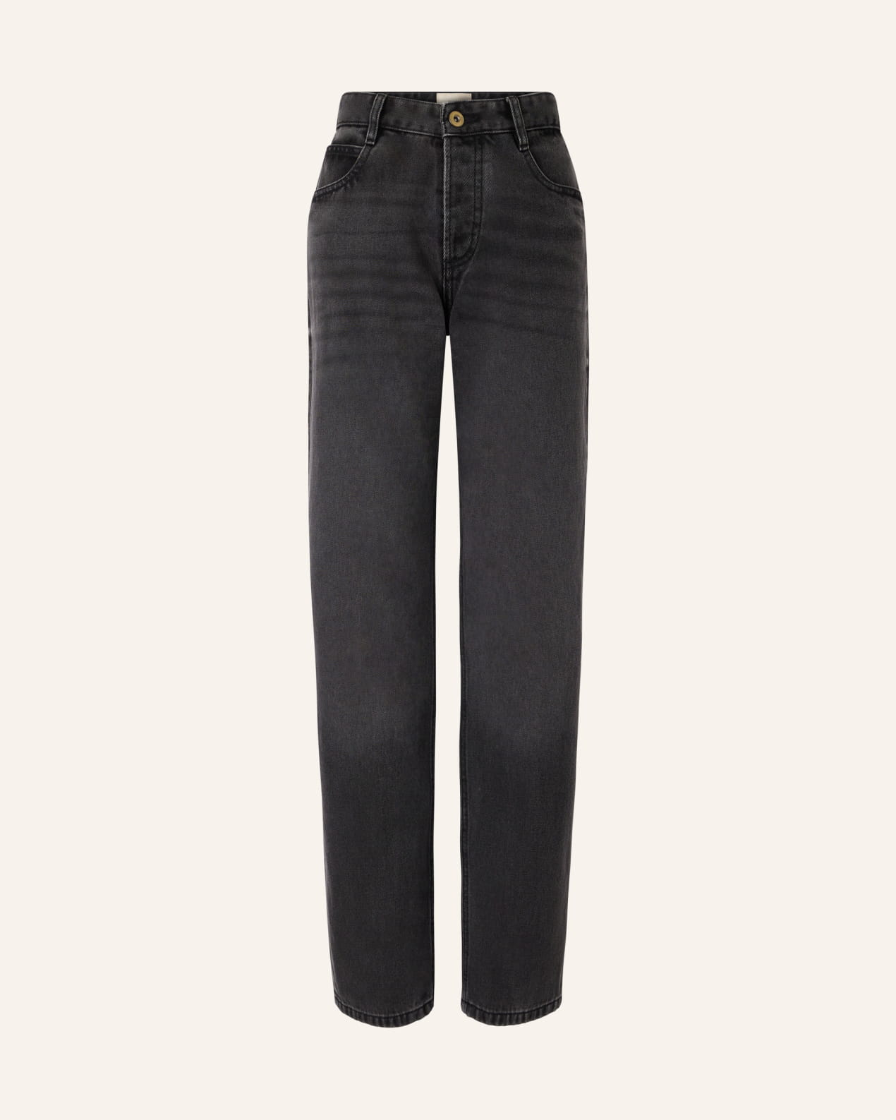 Mid-rise straight-leg jeans in authentic-look heavyweight stonewash denim.
