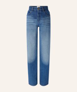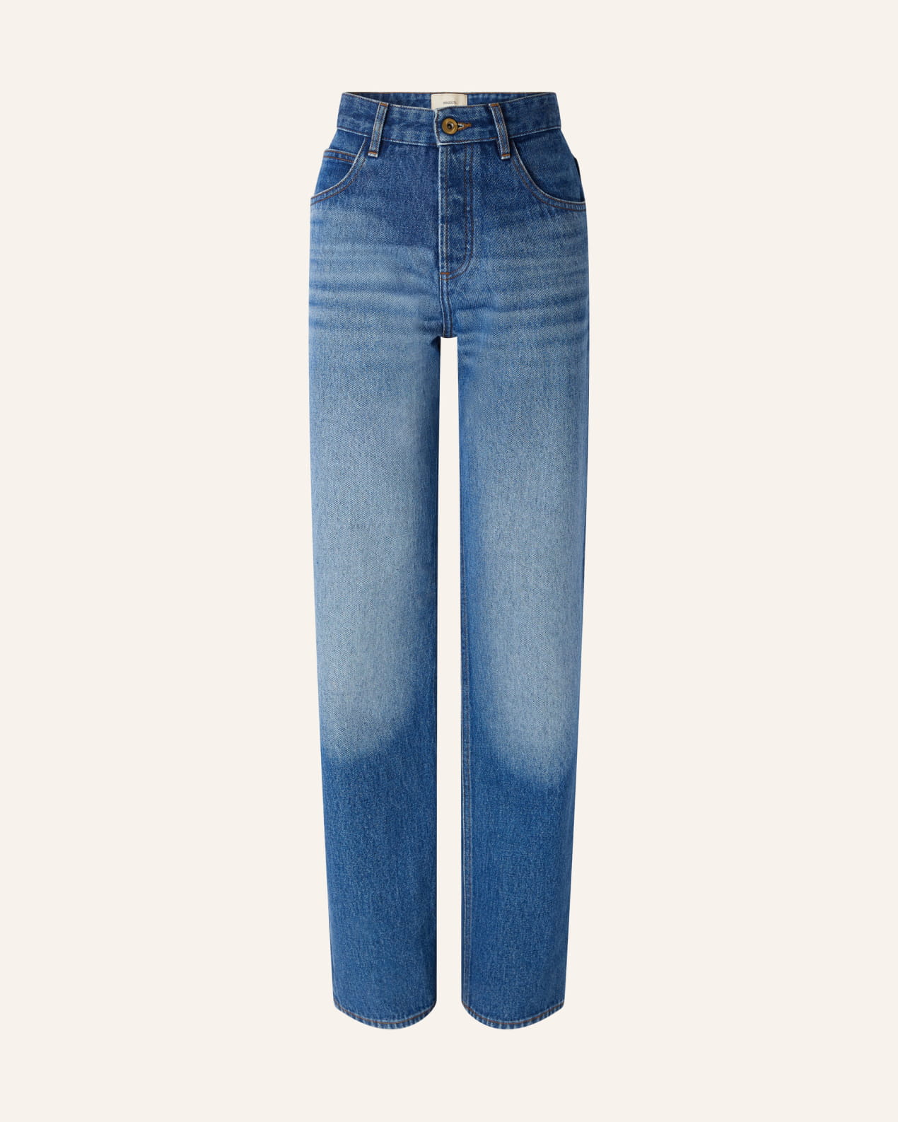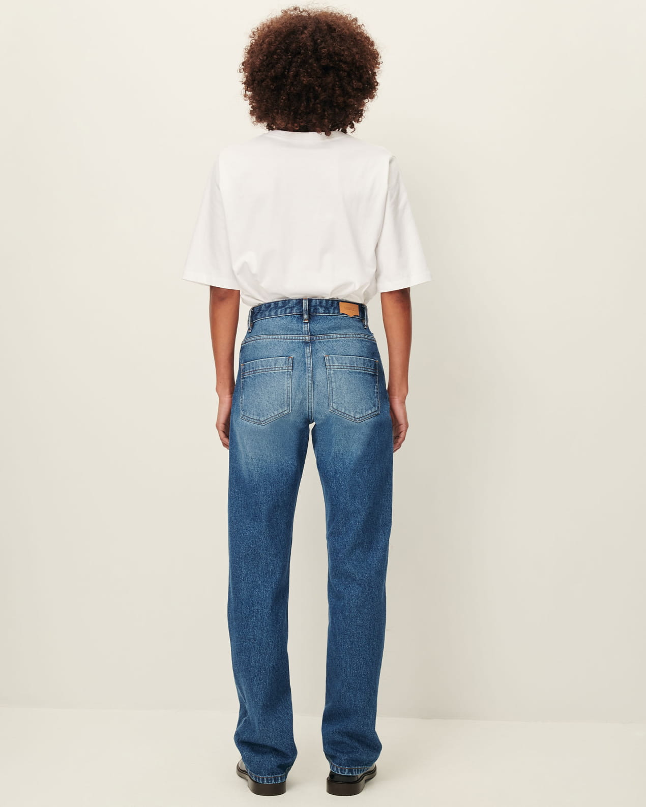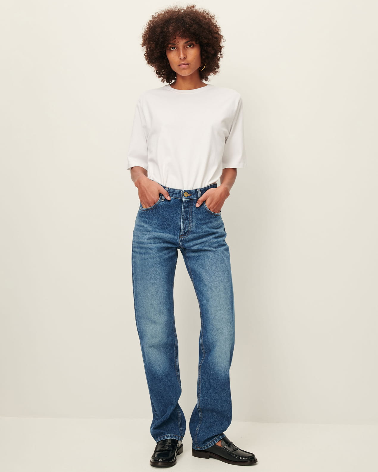 Mid-rise straight-leg jeans in heavyweight authentic-look stonewash denim.