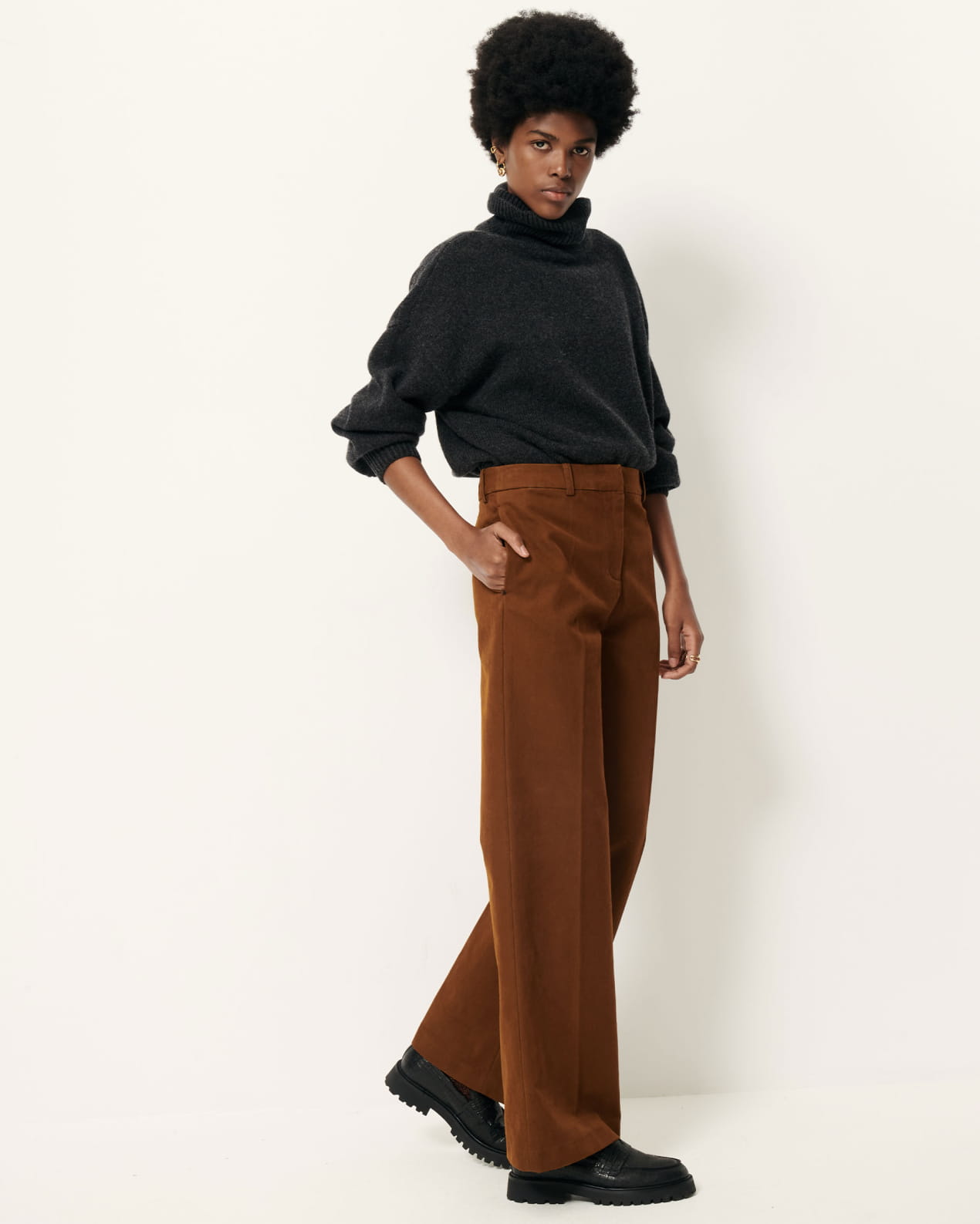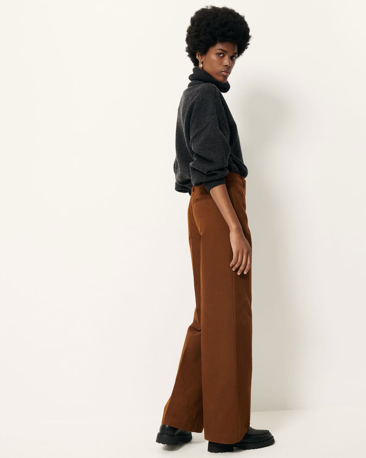 Straight-leg trousers with sharp pleats in velvet-finish, garment-dyed heavyweight canvas.