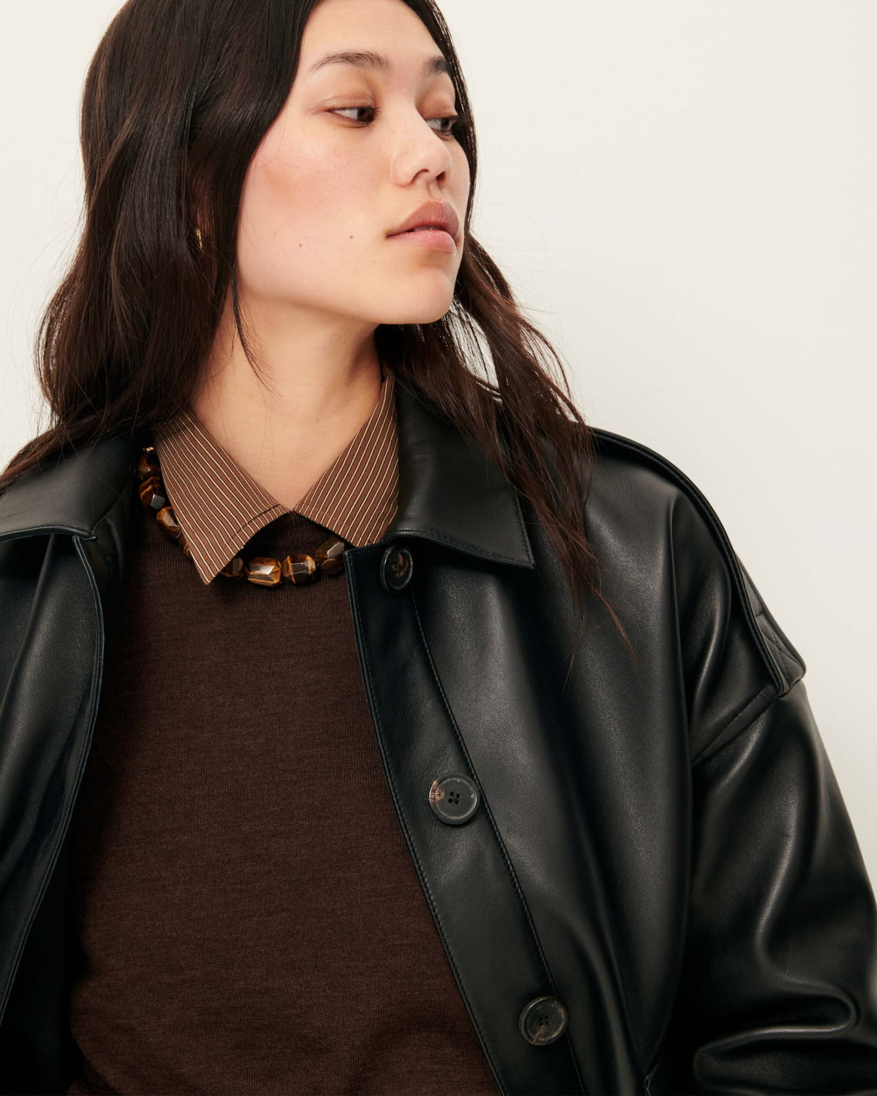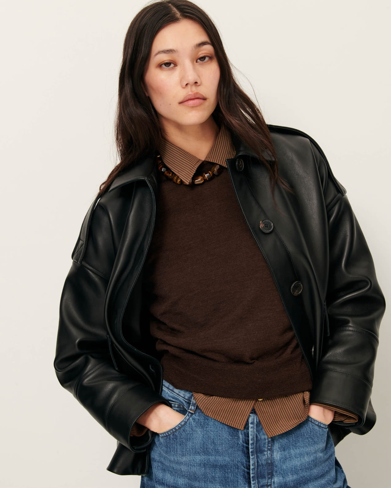 The leather used to make this garment was treated in a LWG certified tannery, ensuring adherence to strict social and environmental practices, and the use of non-harmful products.