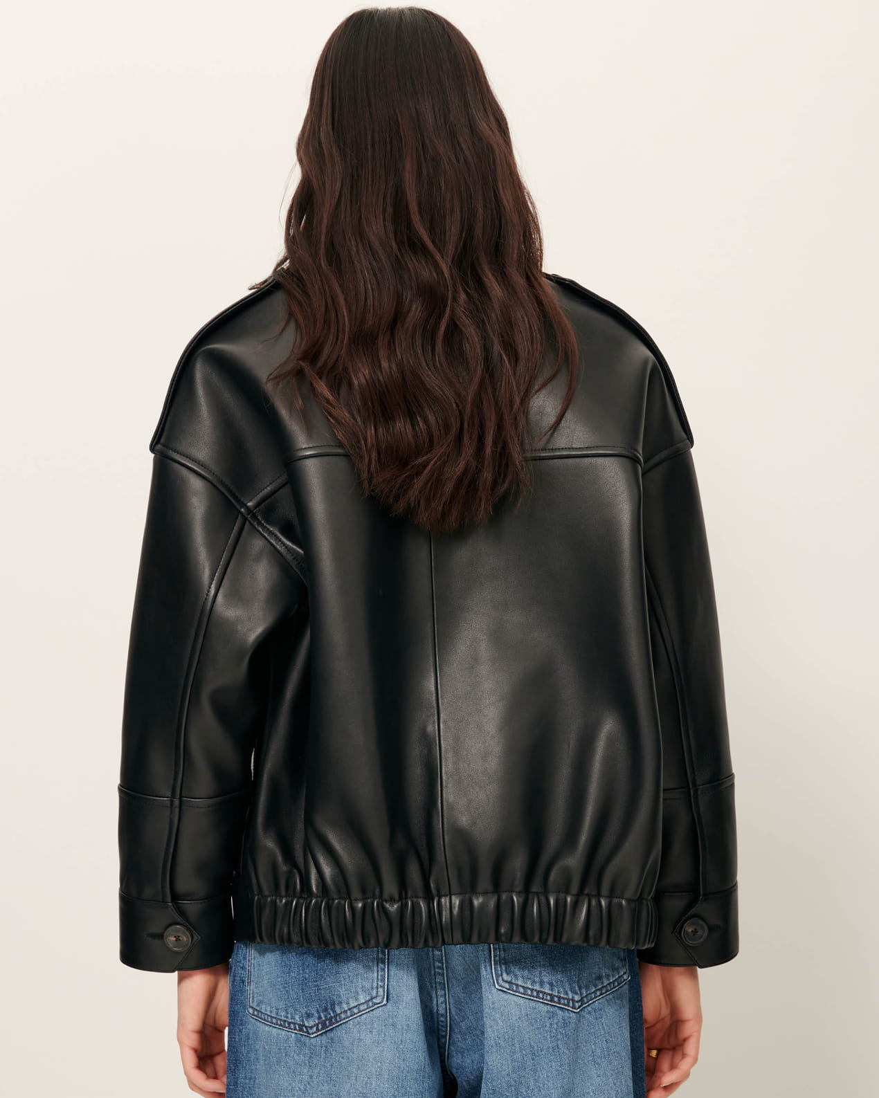 Elasticated lamb leather blouson with patch pockets and shoulder tabs.