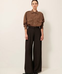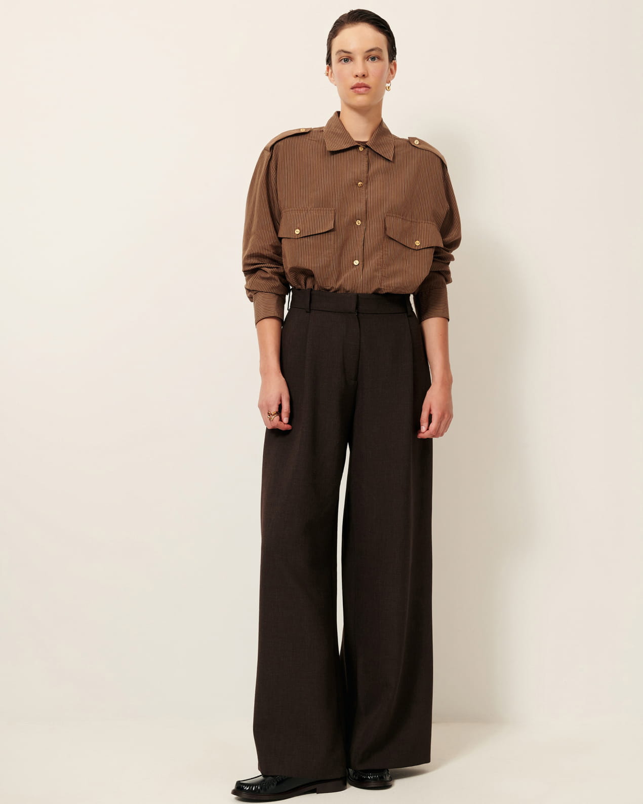 Officer-style shirt with shoulder tabs and patch pockets in soft striped Lyocell poplin, woven in Italy.