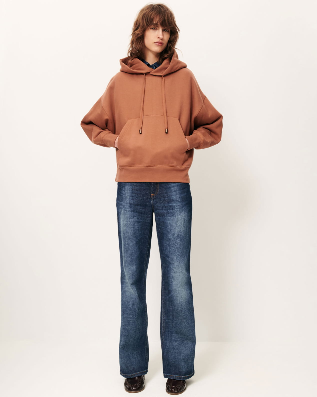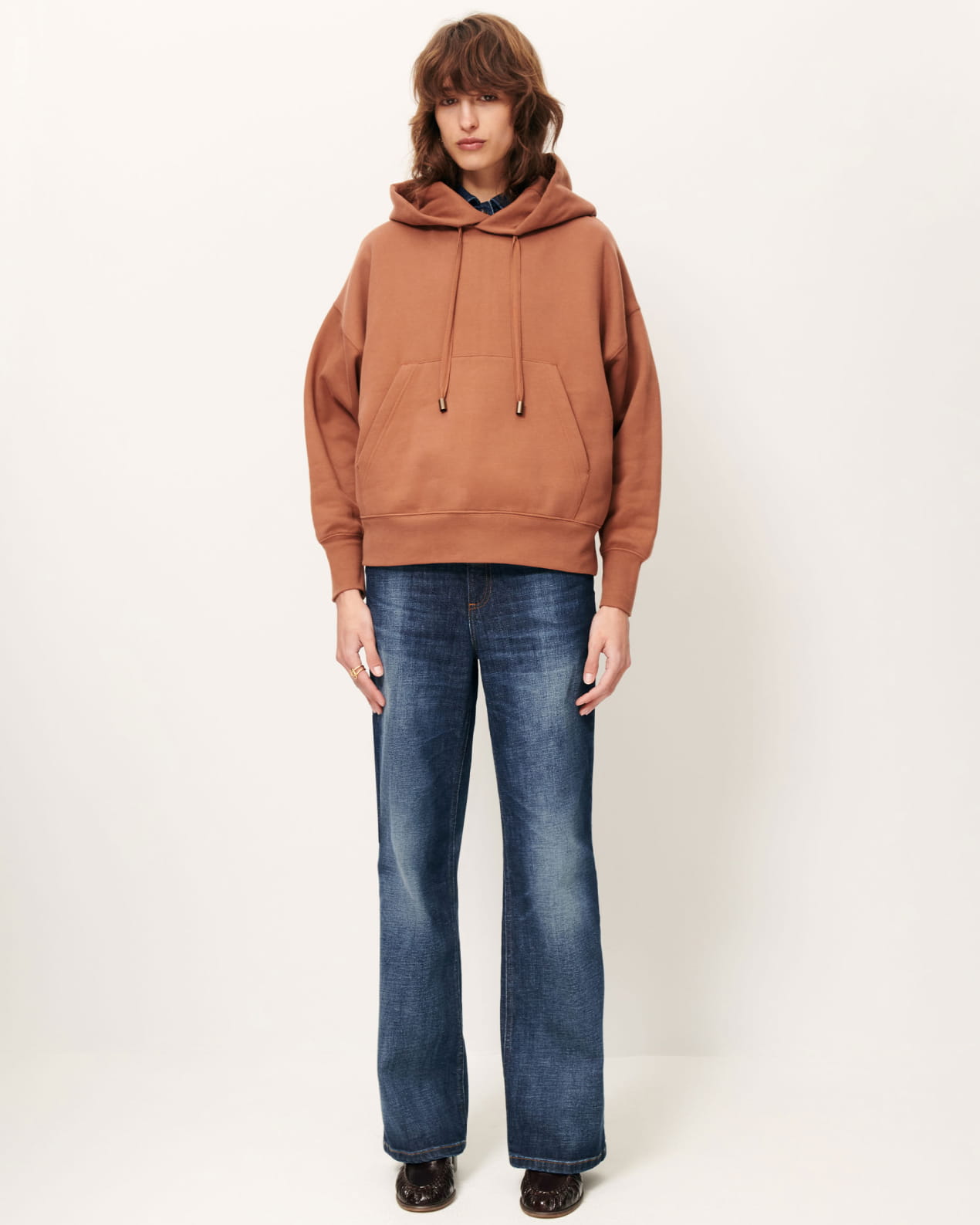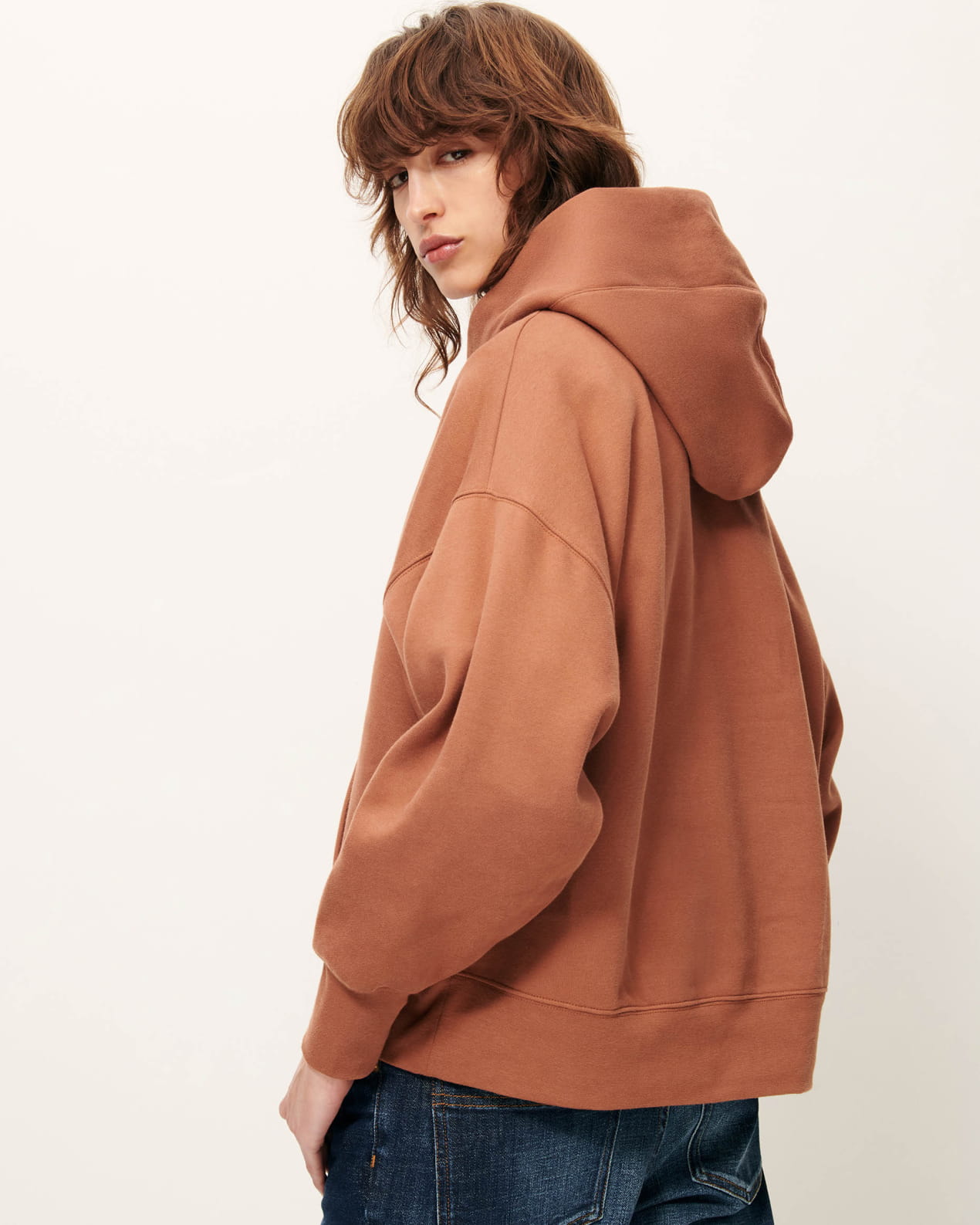 Oversized hooded sweatshirt in brushed fleece, made in Portugal.