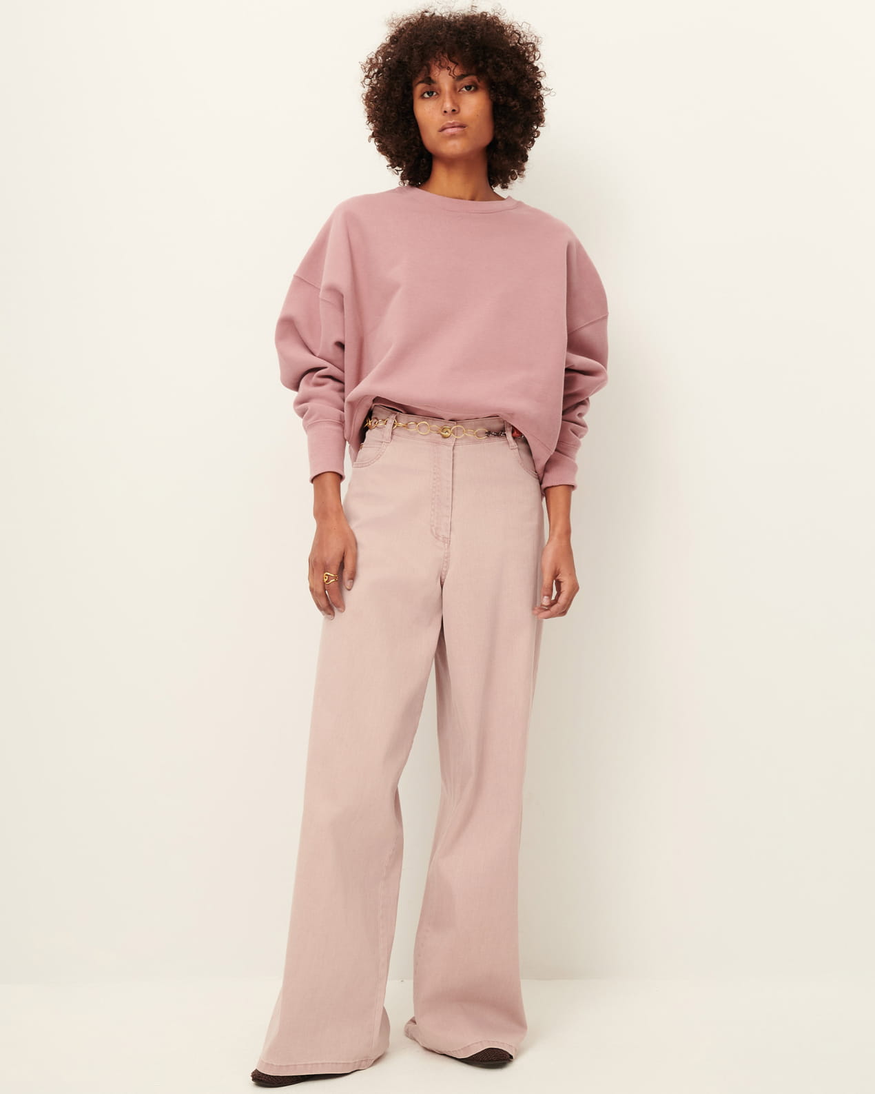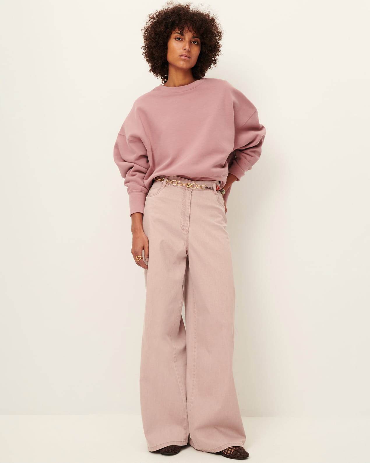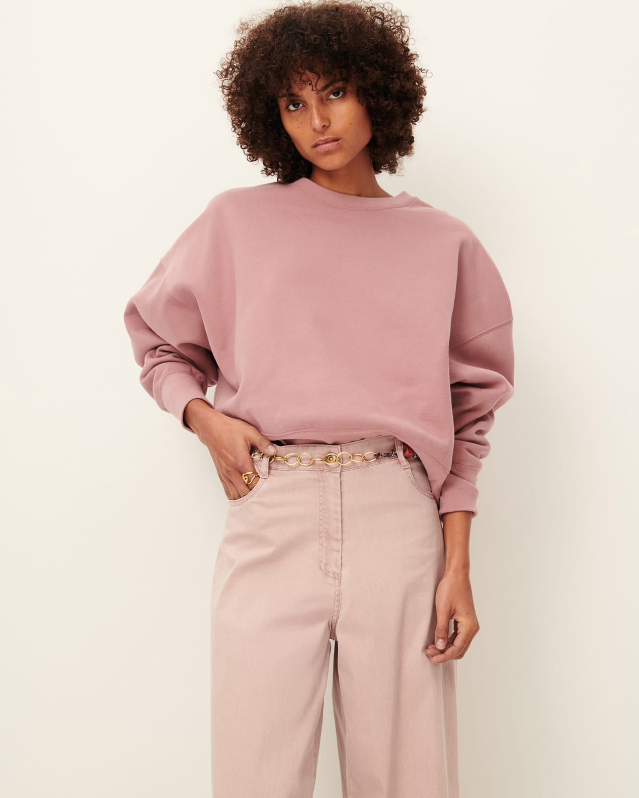 Short oversized sweatshirt in brushed cotton fleece, made in Portugal.