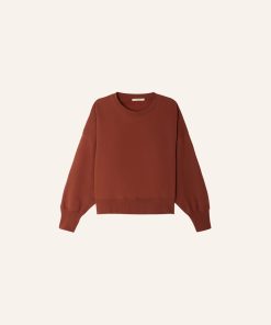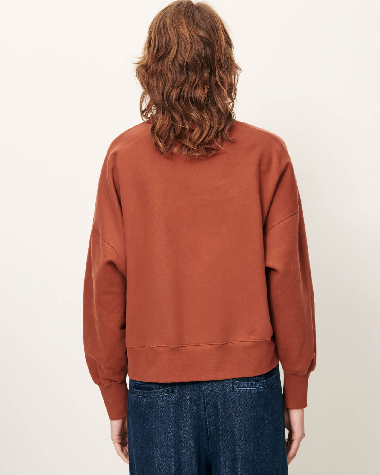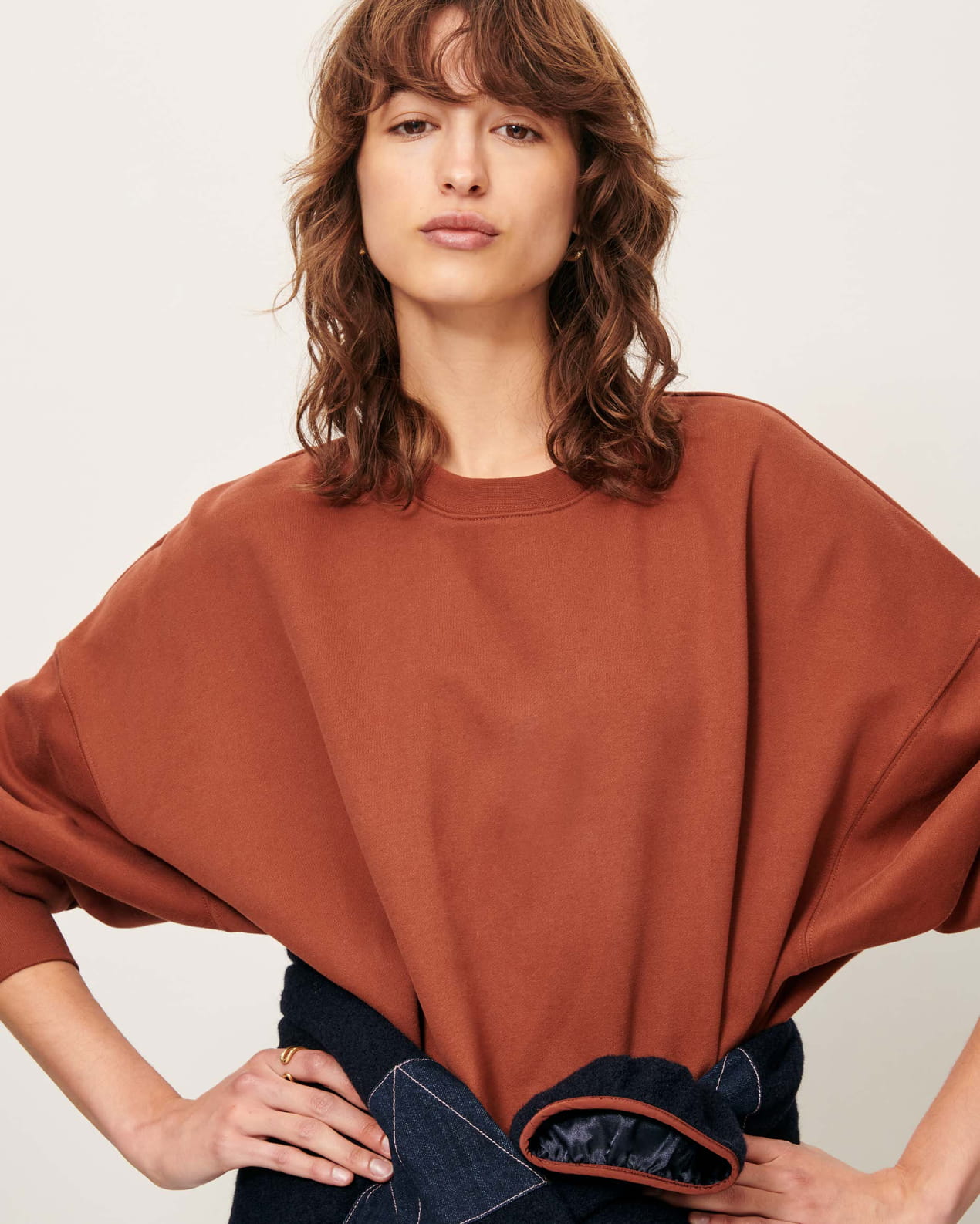 Short oversized round-neck sweatshirt in brushed fleece, made in Portugal.