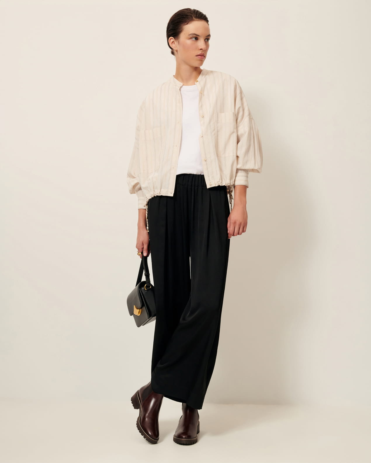 7/8-length loose-fitting pants with an elasticated waist in a fluid viscose satin.
