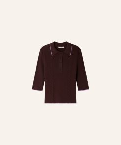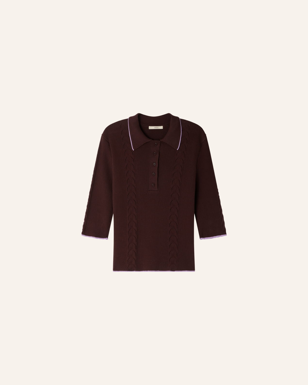 Polo shirt with ¾-length sleeves in rib knit with openwork details. Contrasting trims on the collar and sleeves.