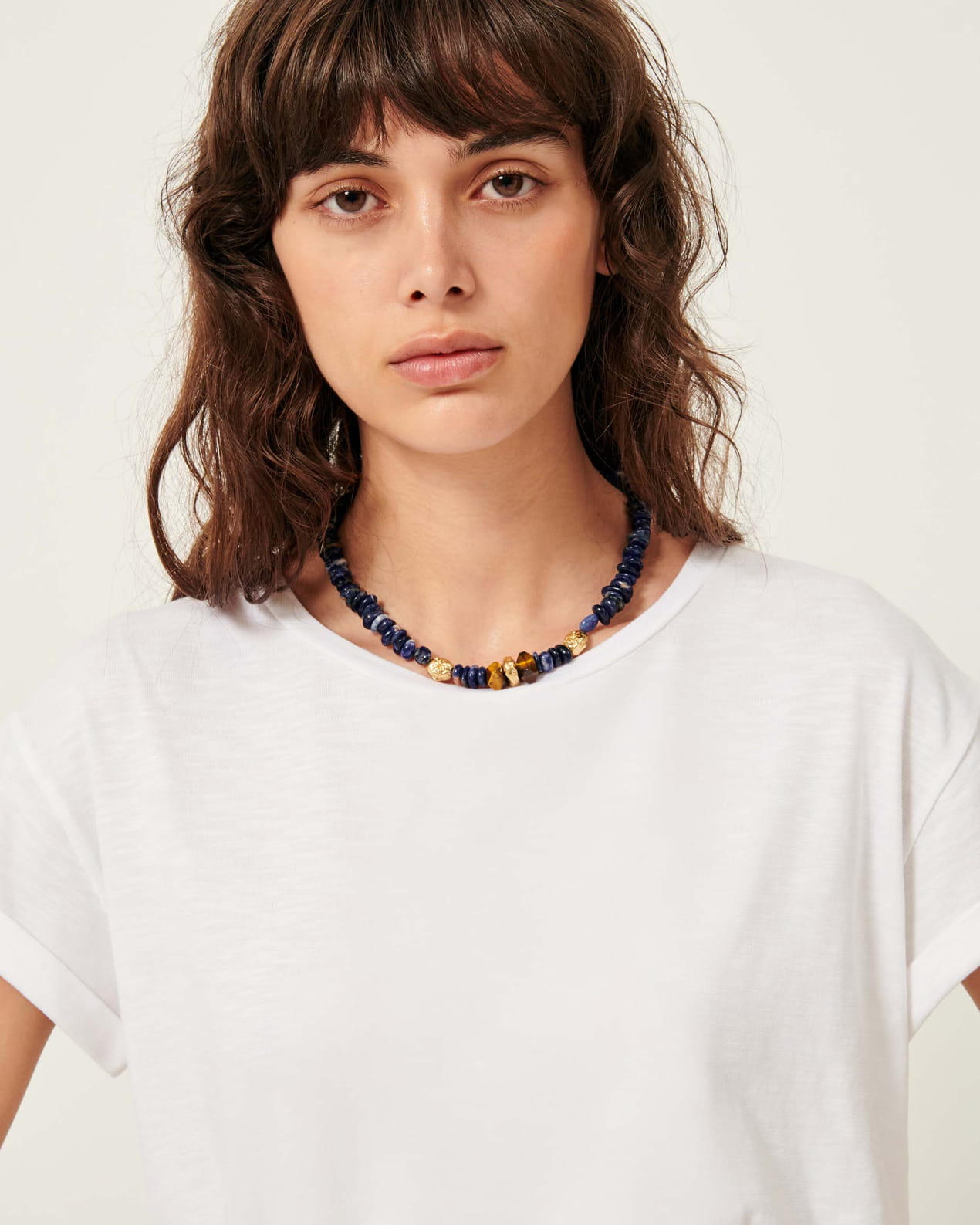 60% Lapis lazuli 20% Gilded brass 10% Tiger eye quartz 10% Sodalite