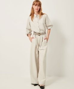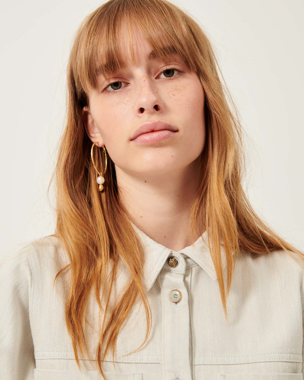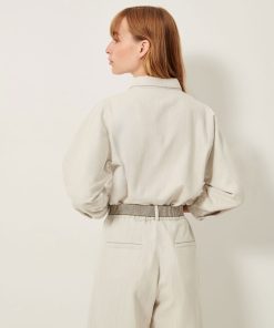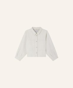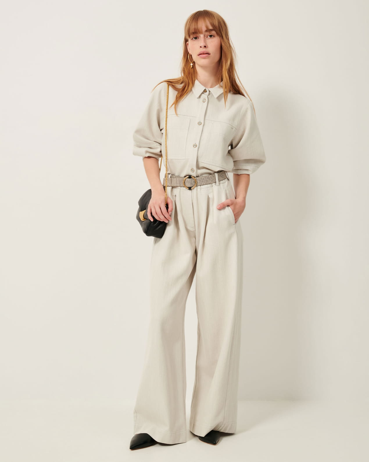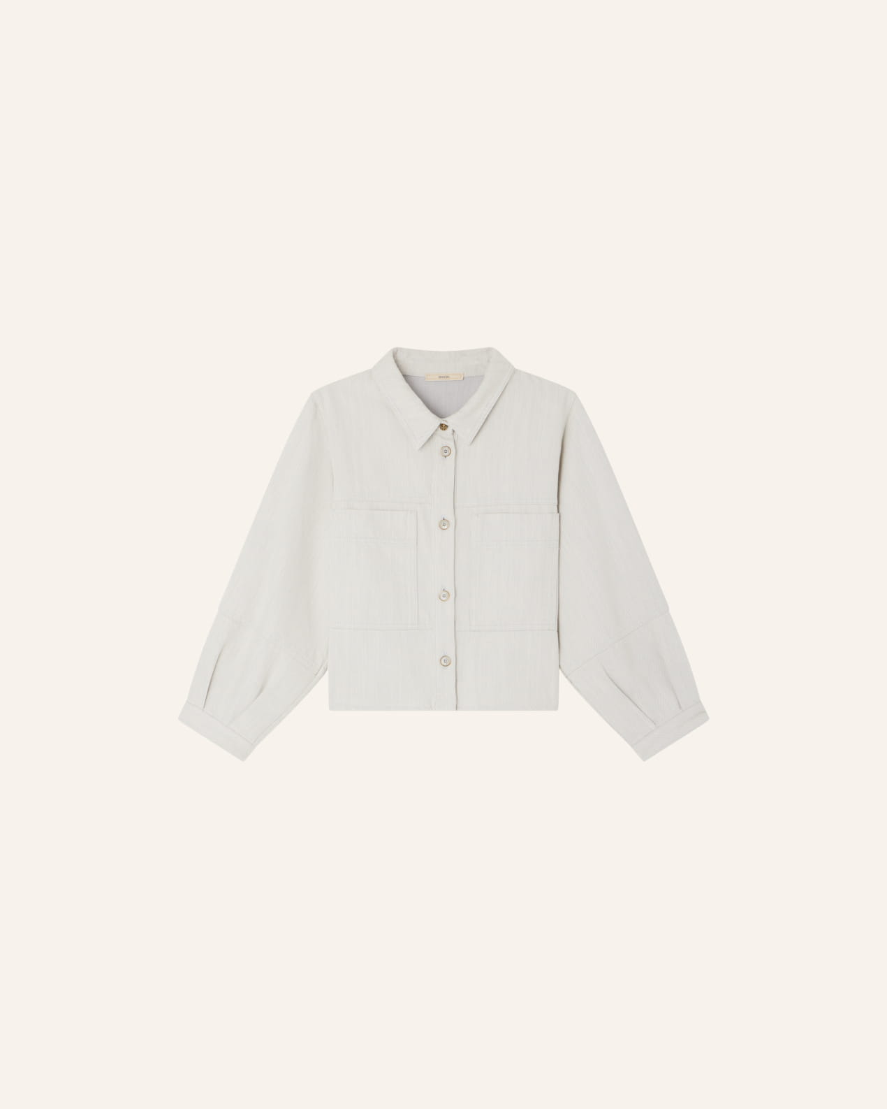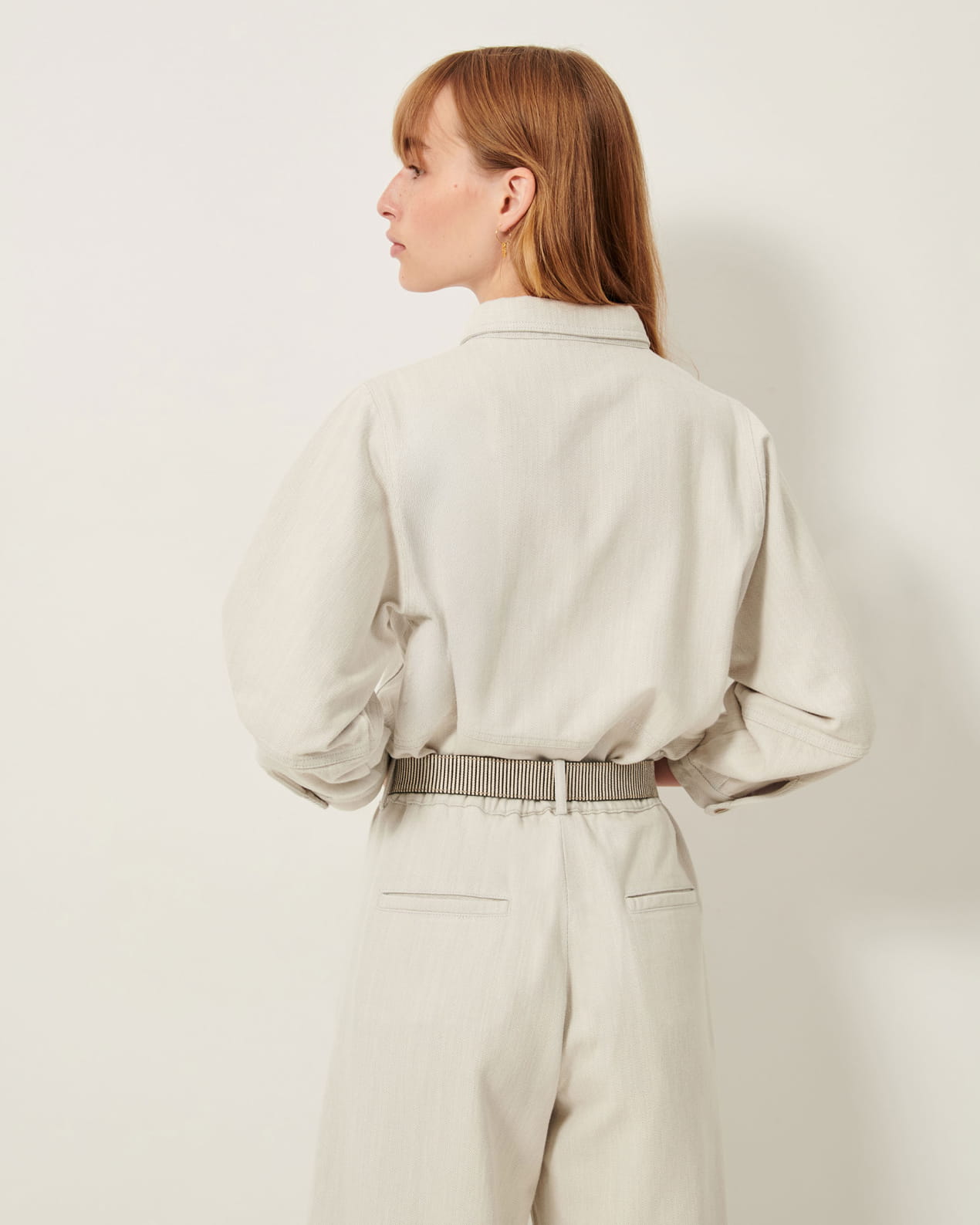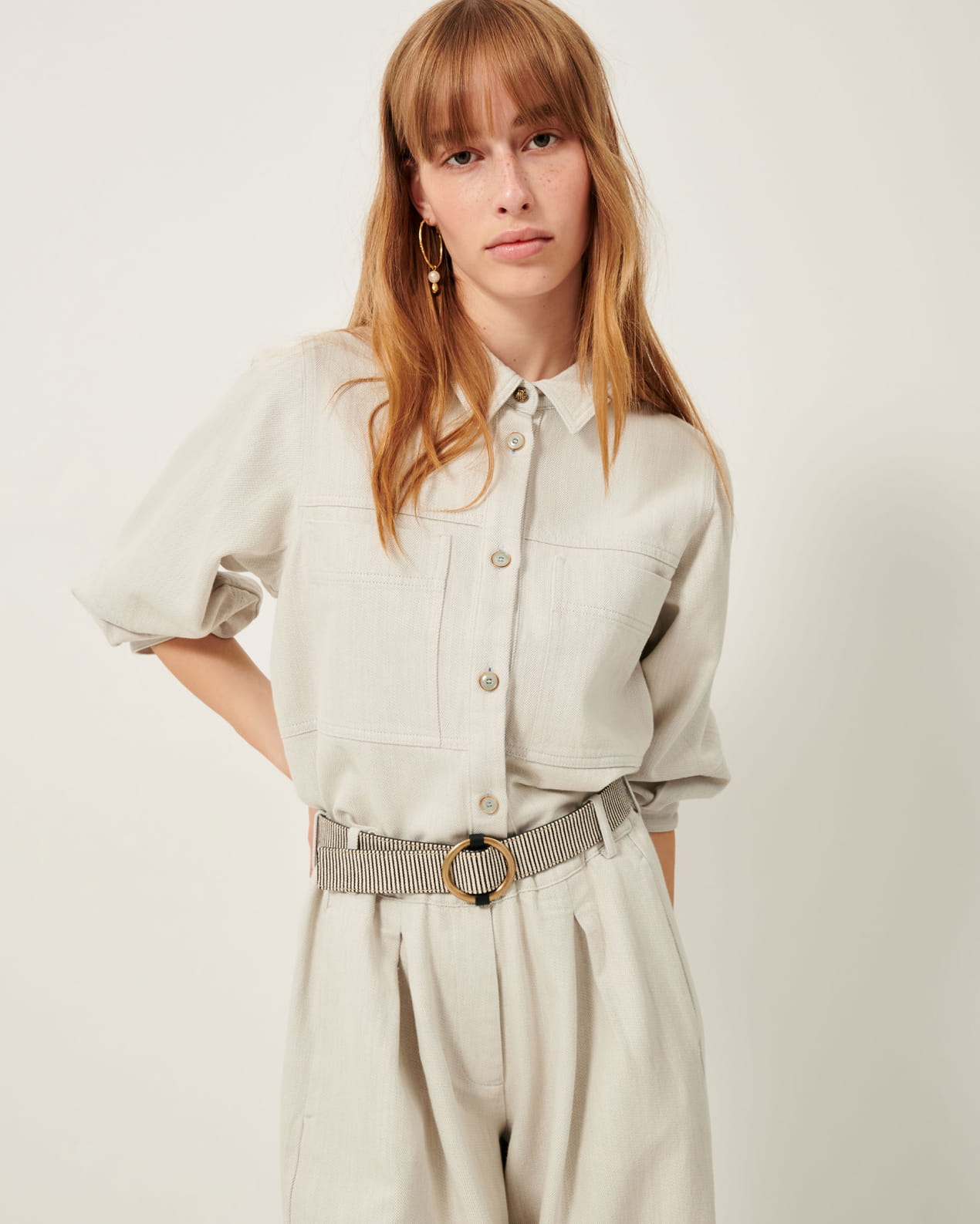 Overshirt with balloon sleeves in an unbleached natural-yarn chambray drill, woven in Spain.