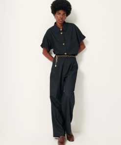 Button closure with a jewel button at the collar