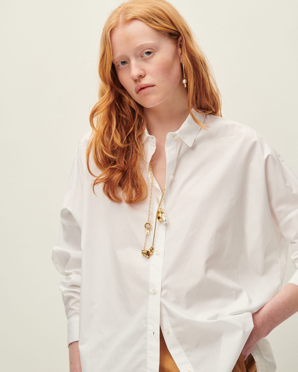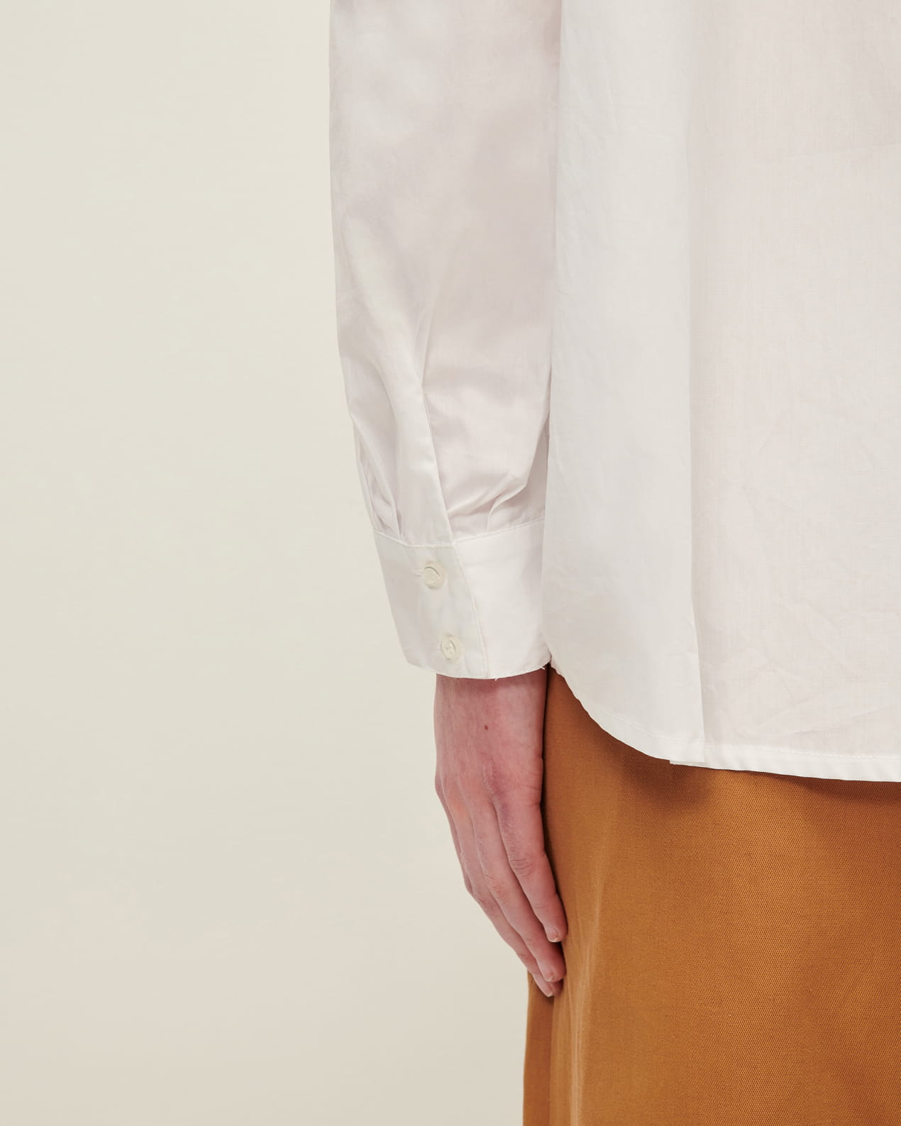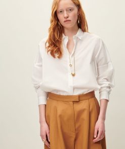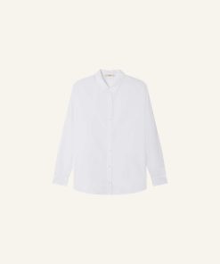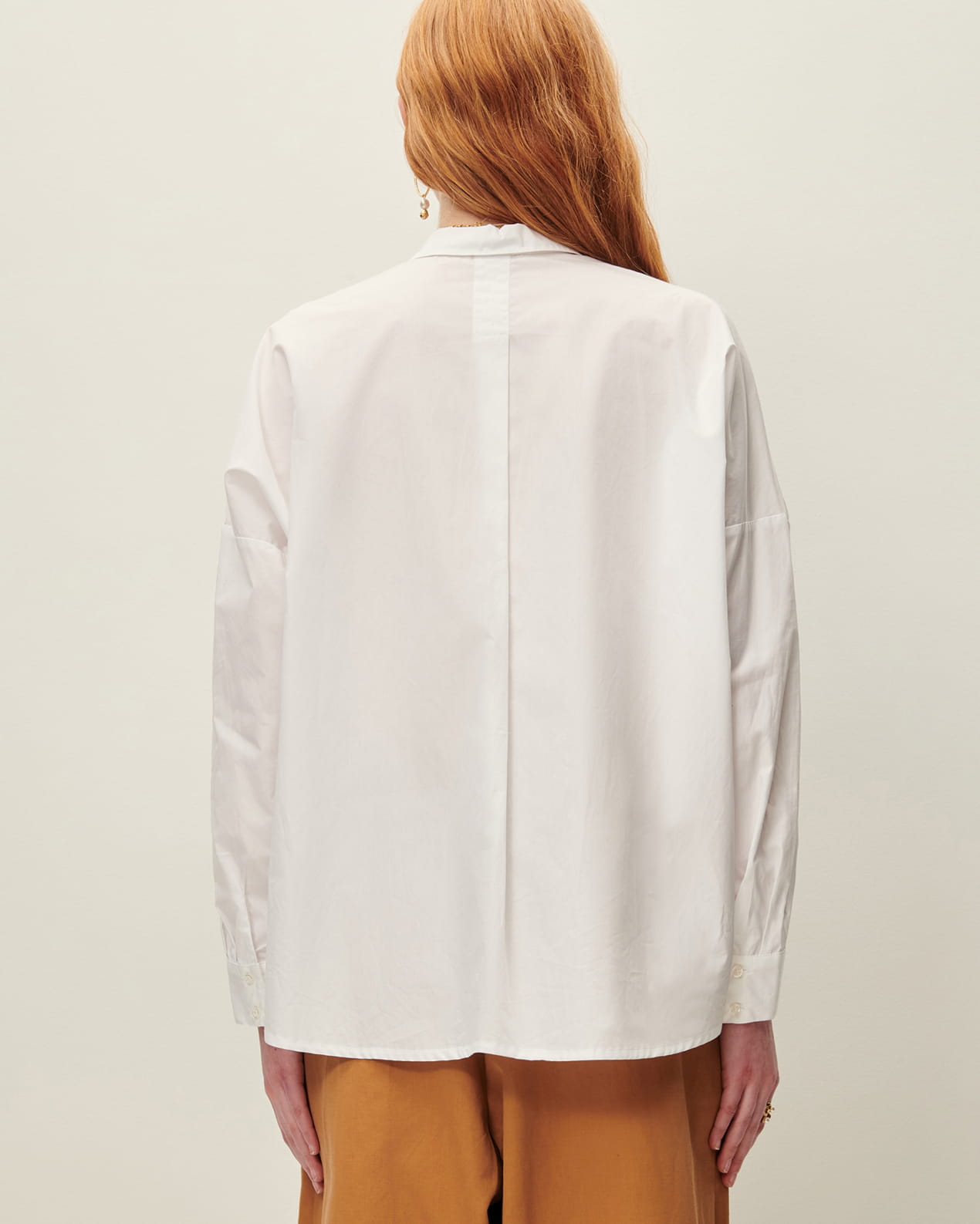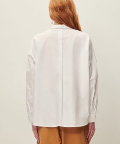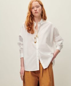 Loose-fitting shirt with drop shoulders in compact organic cotton poplin, woven in Italy.
