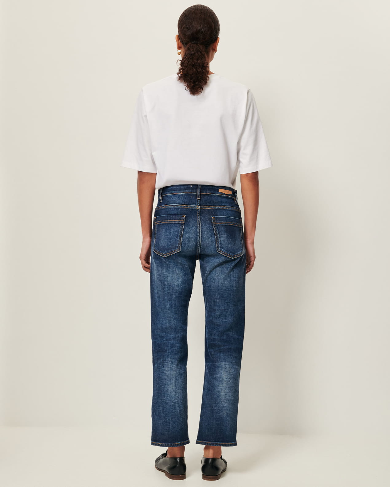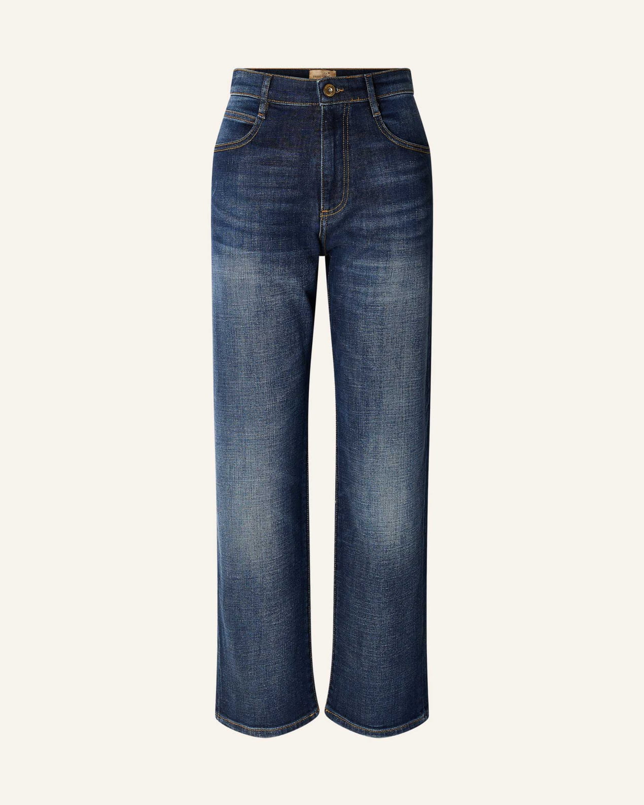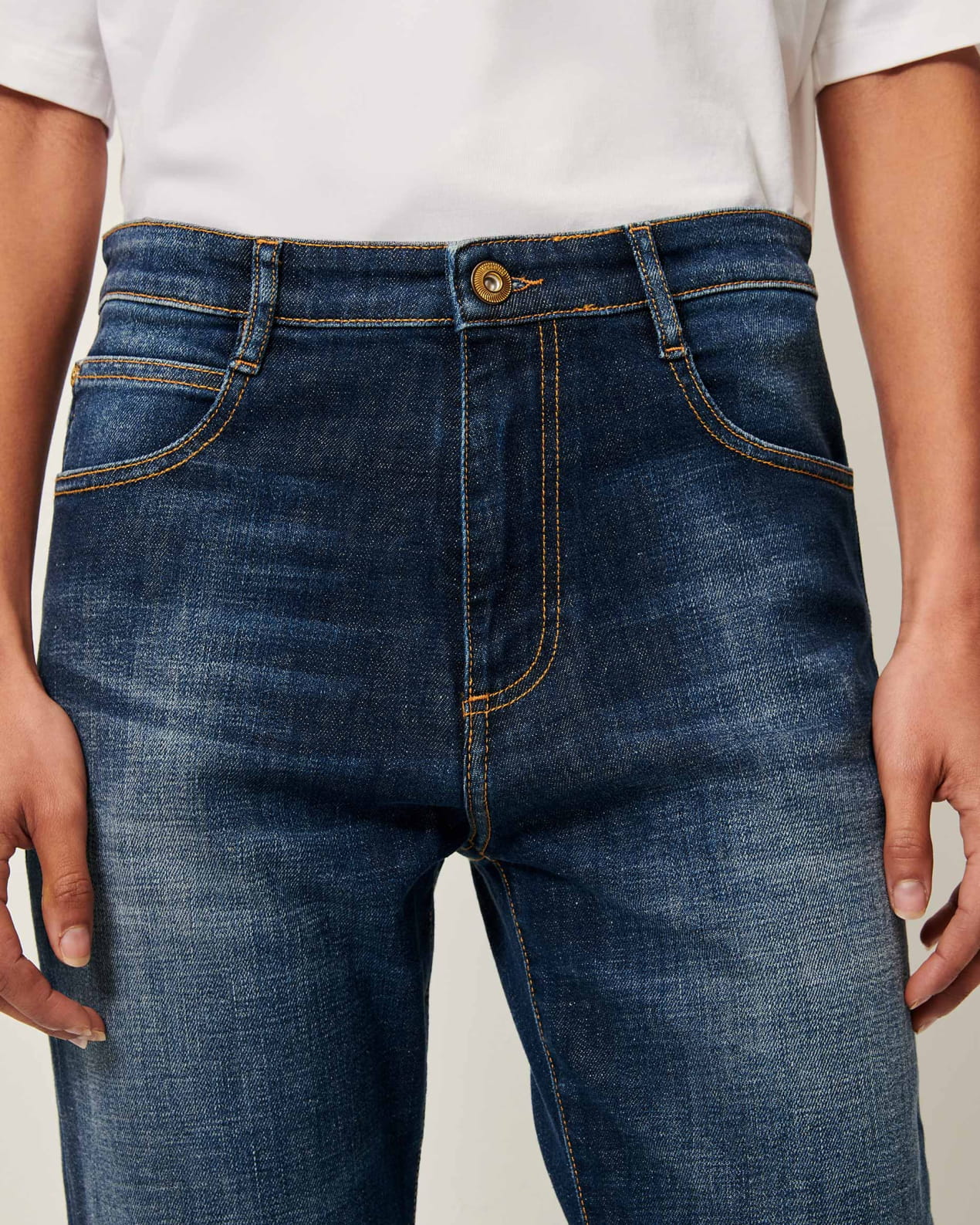 Front pockets, coin pocket and patch pockets on the back with double topstitching.