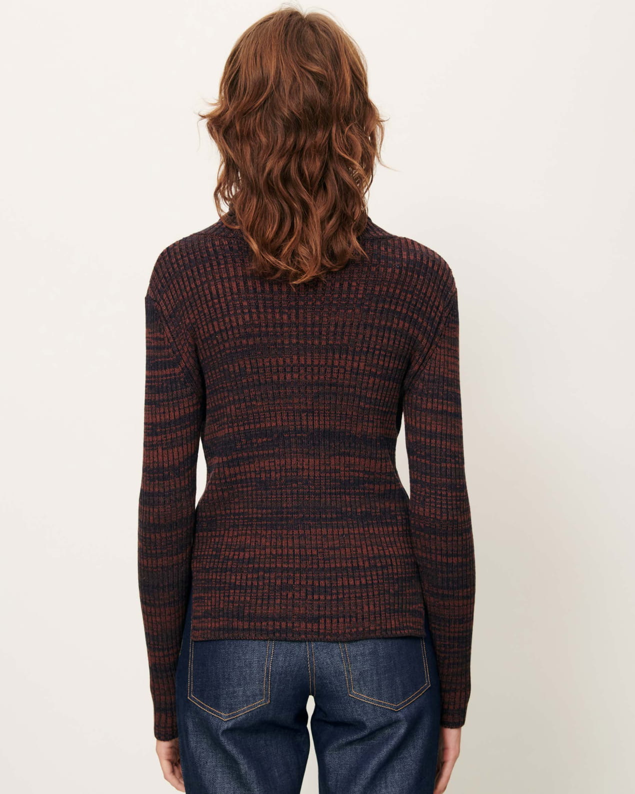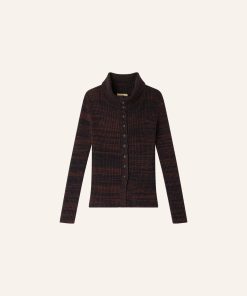 Cardigan with a turn-down collar in a rib knit made of ombré mouliné yarn.