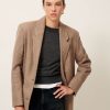 Cropped fitted jacket in faded denim with a contrasting corduroy collar.
