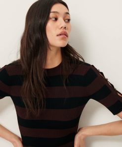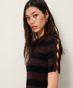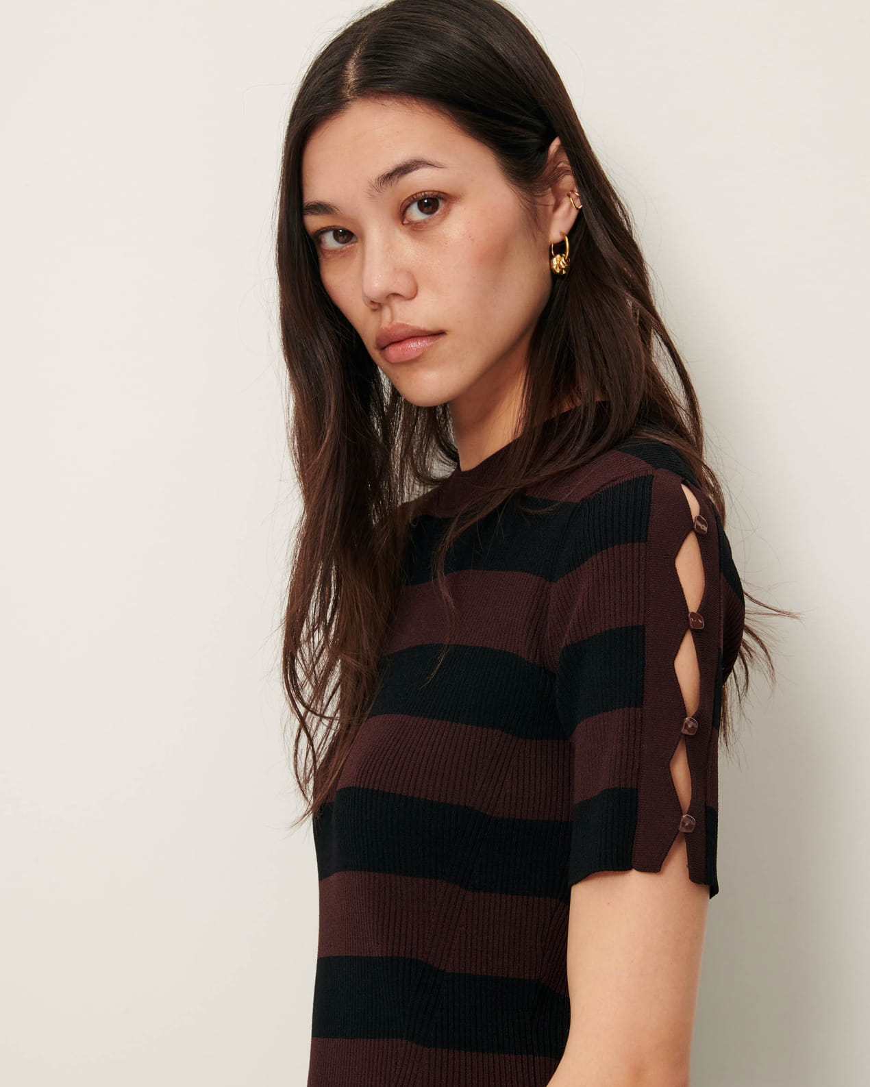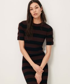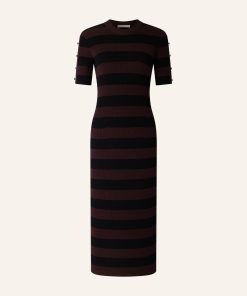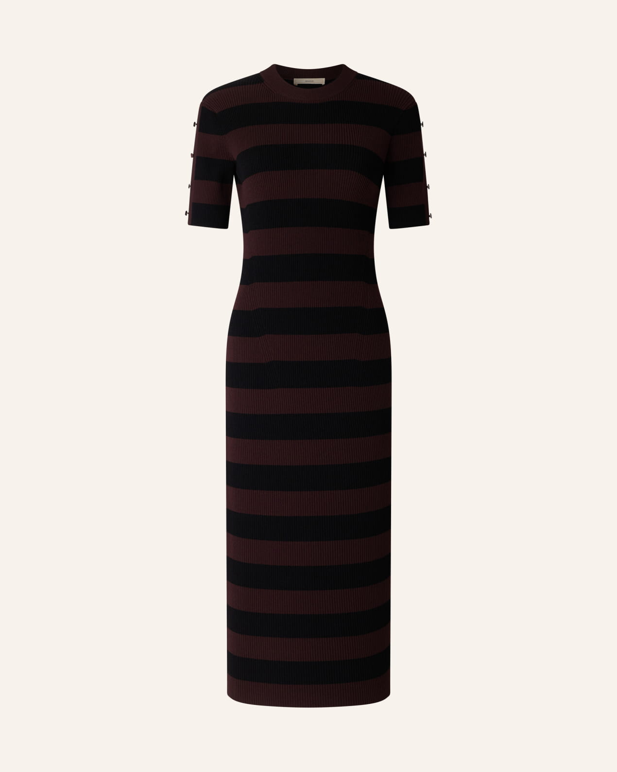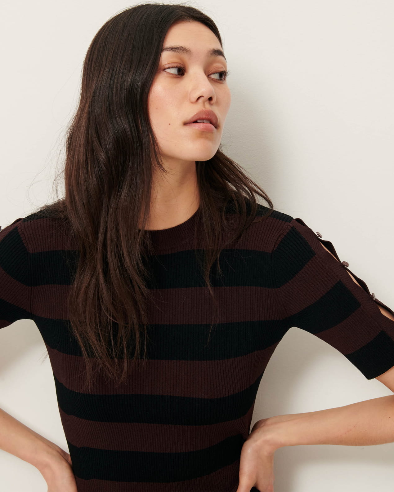Striped close-fitting midi dress in fine-gauge knit with sleeve cutouts and jewel buttons.