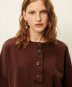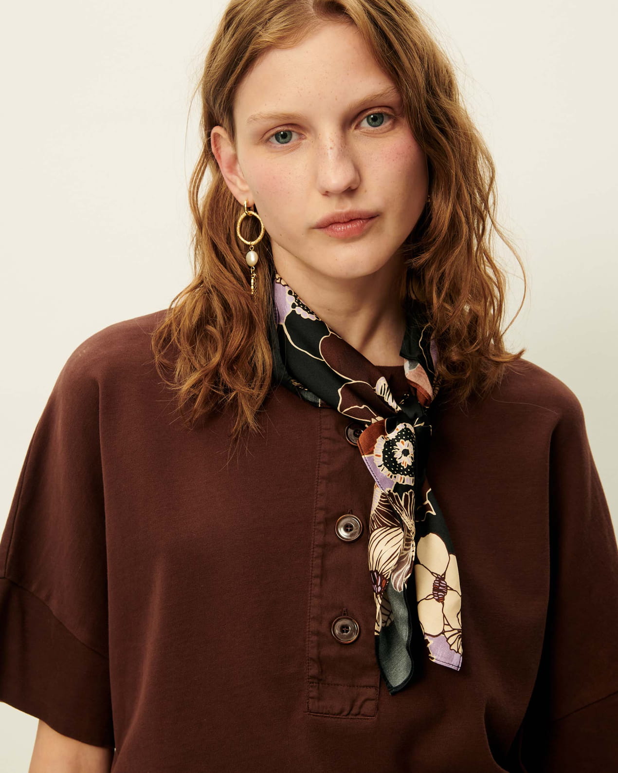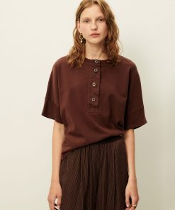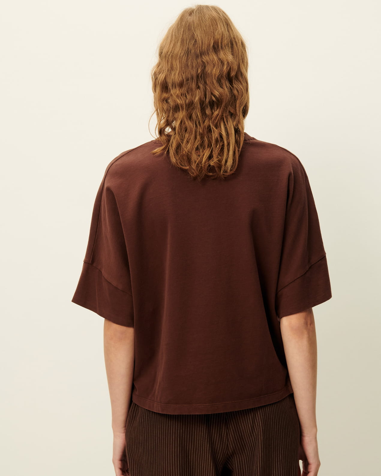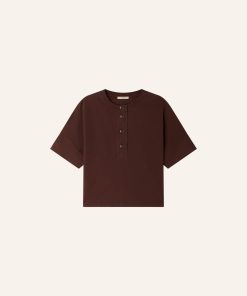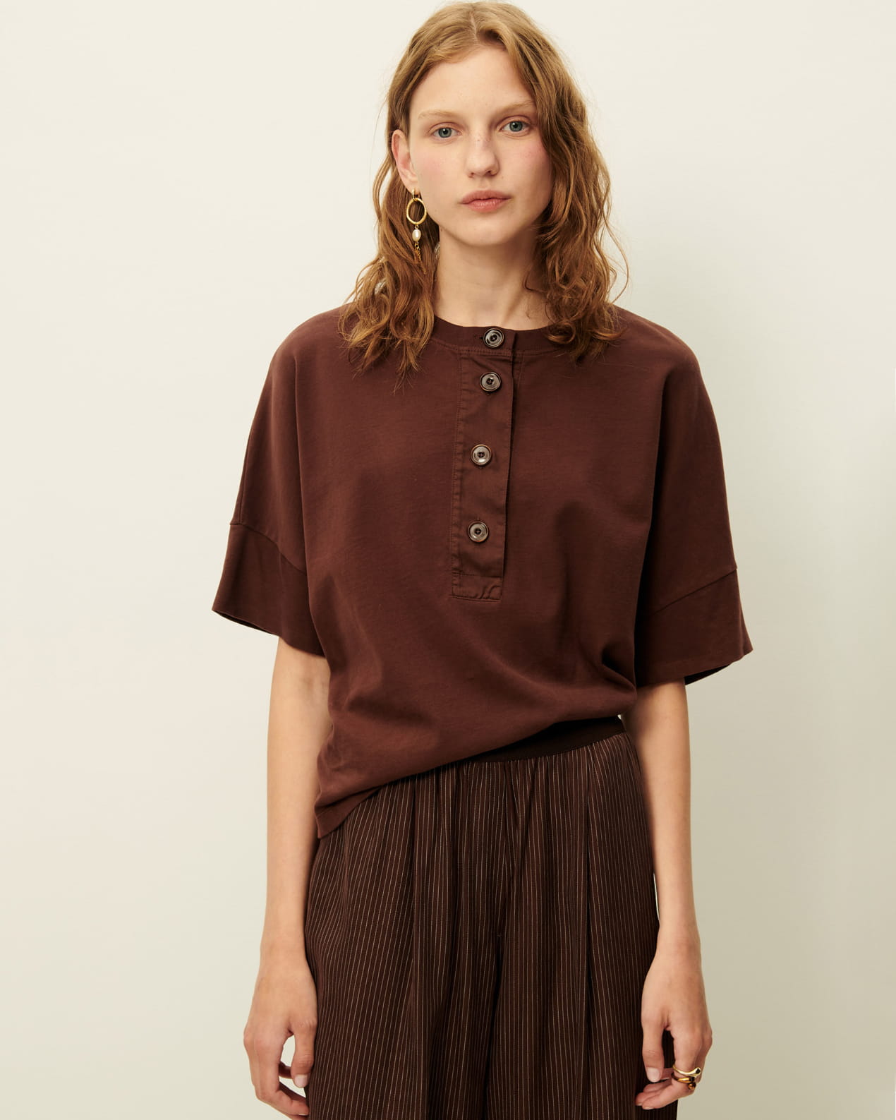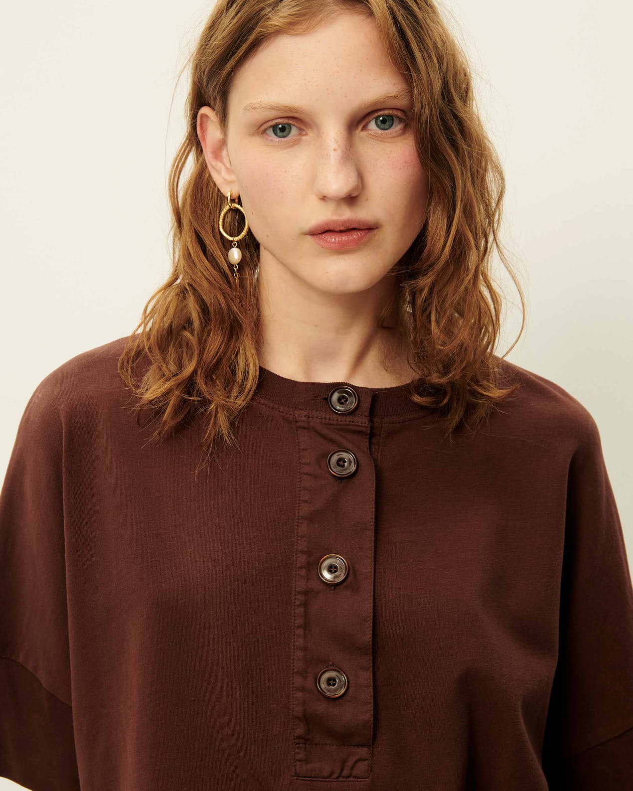 Short-sleeve T-shirt with a grandad collar in garment-dyed poplin, made in Portugal.