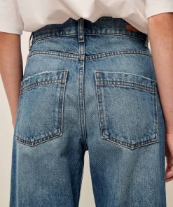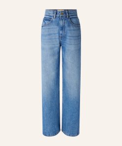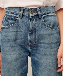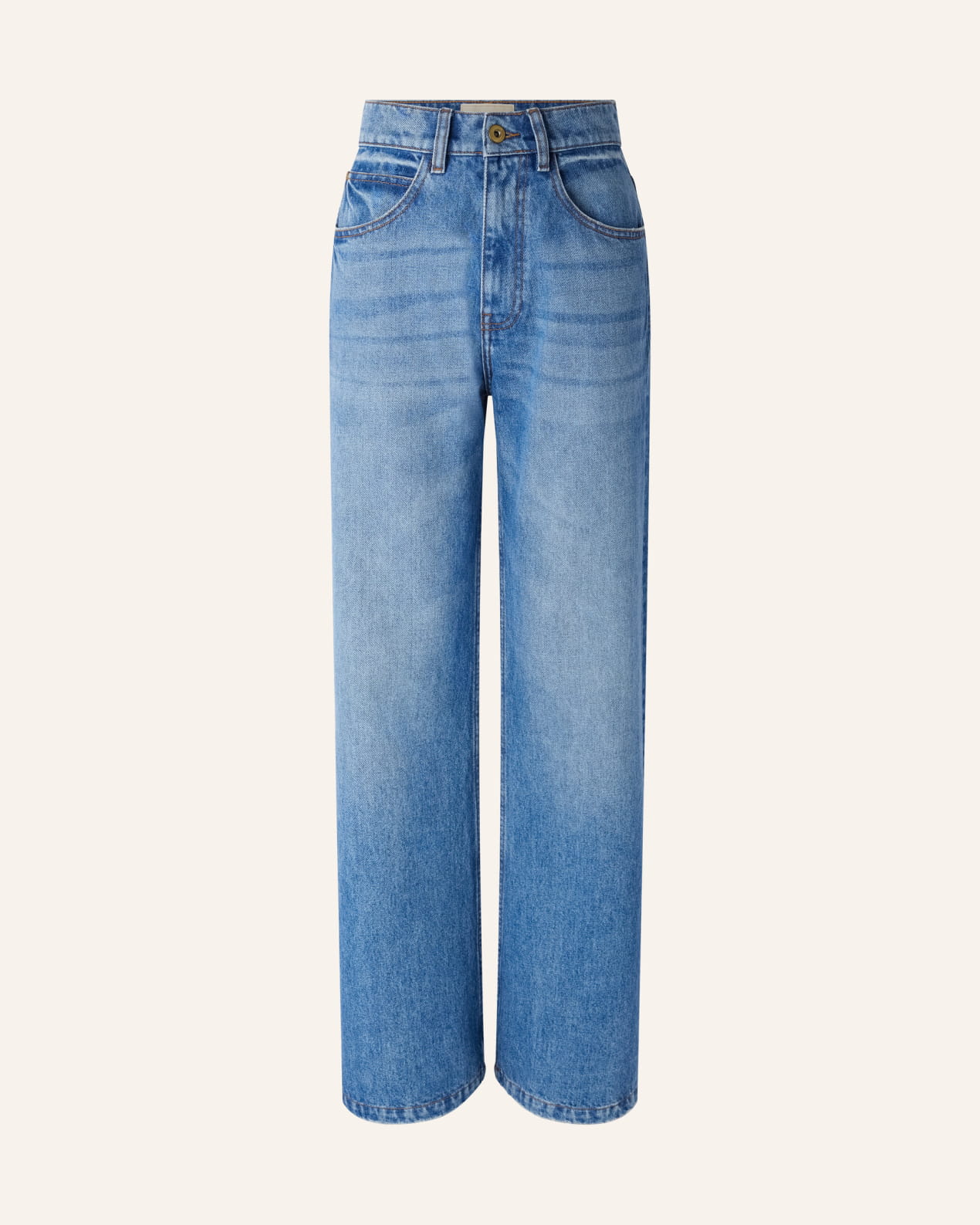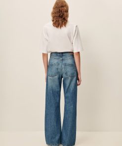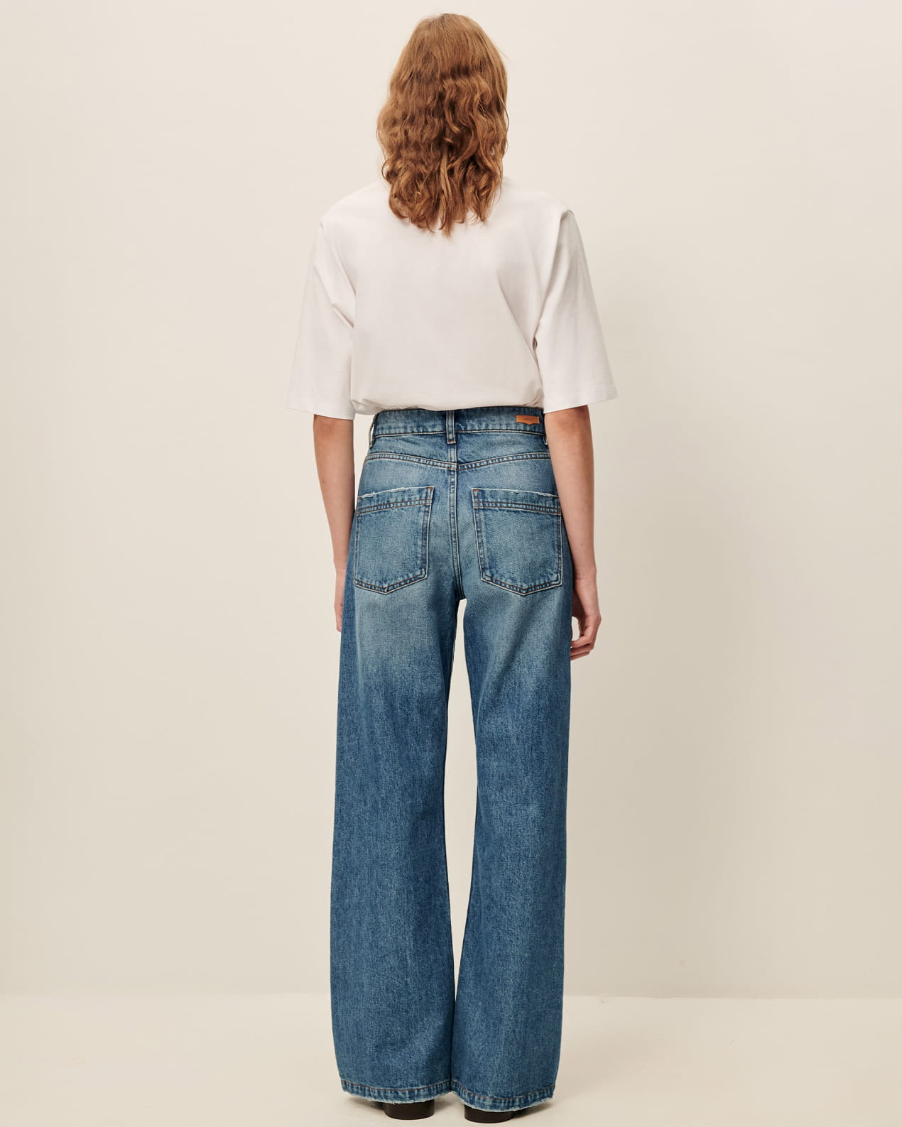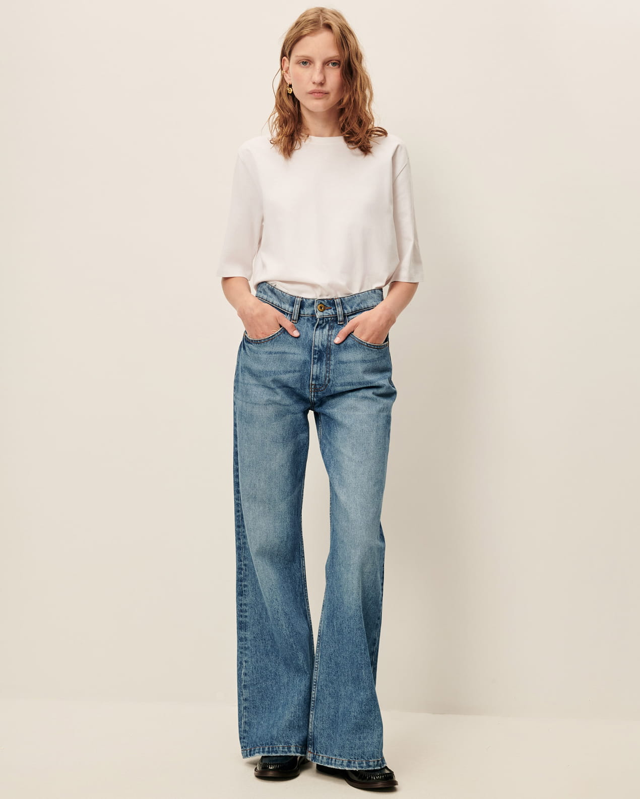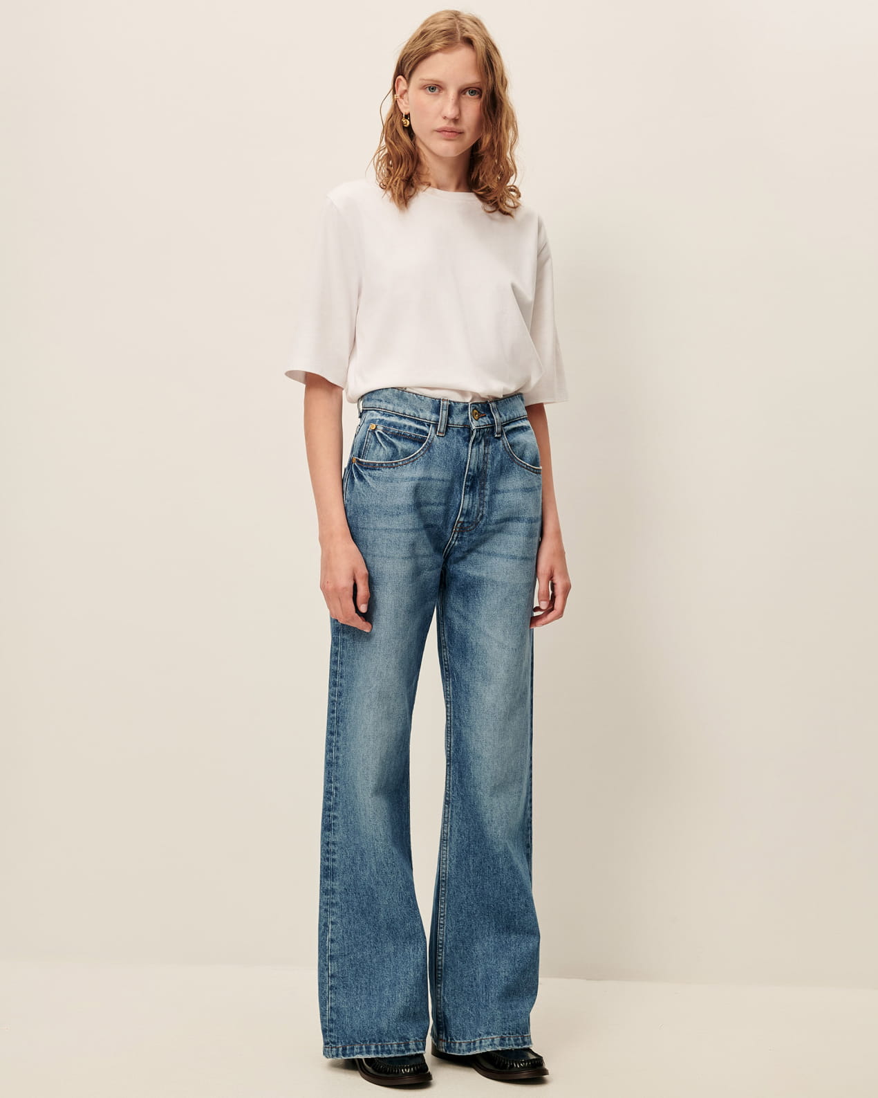 Mid-rise wide-leg flared jeans in authentic-look stonewash denim.