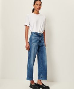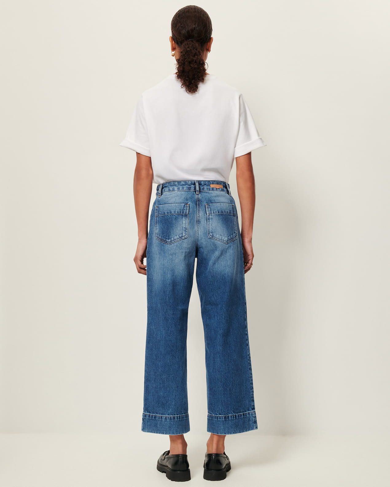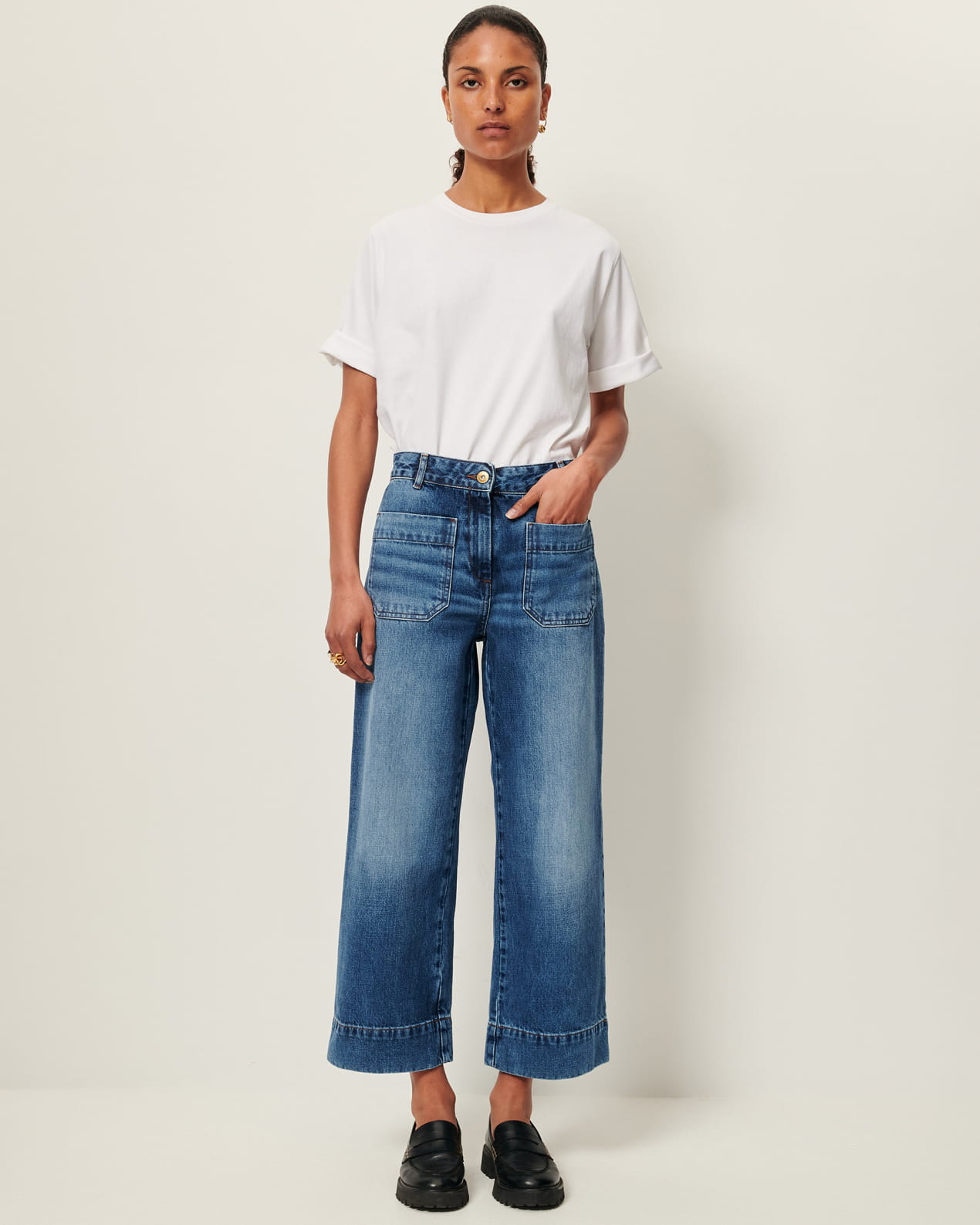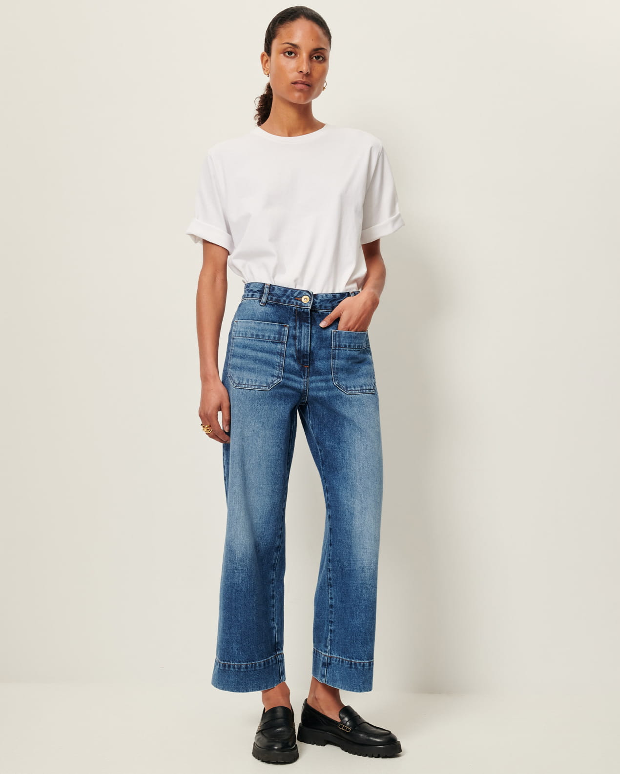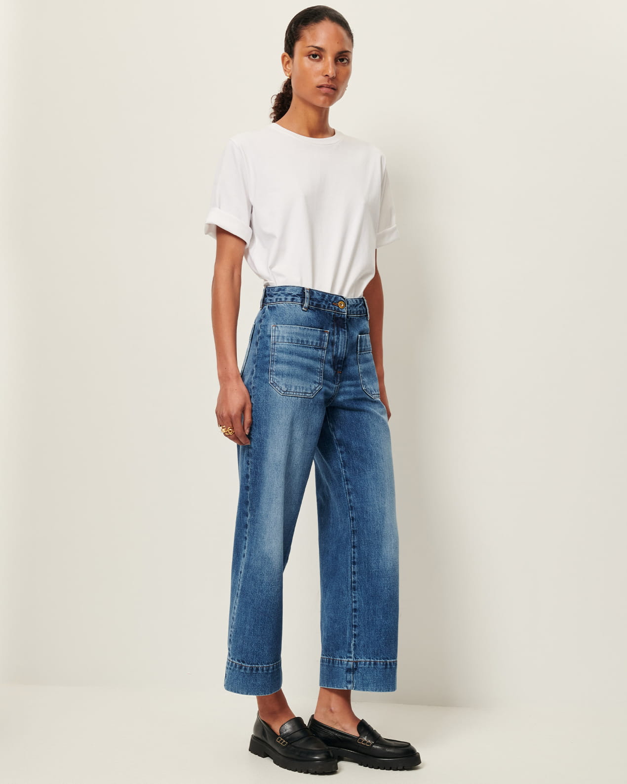 A-line sailor-style 7/8-length jeans in a rinsed denim fabric.