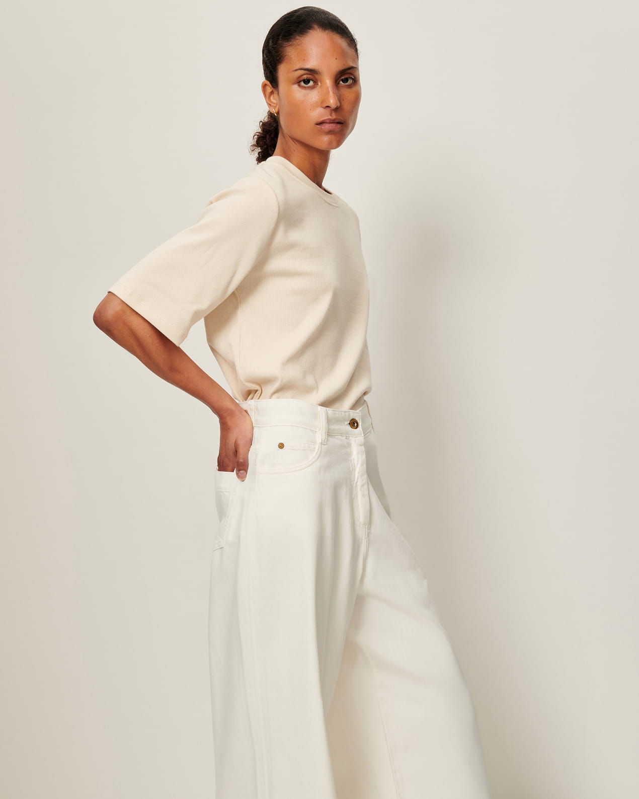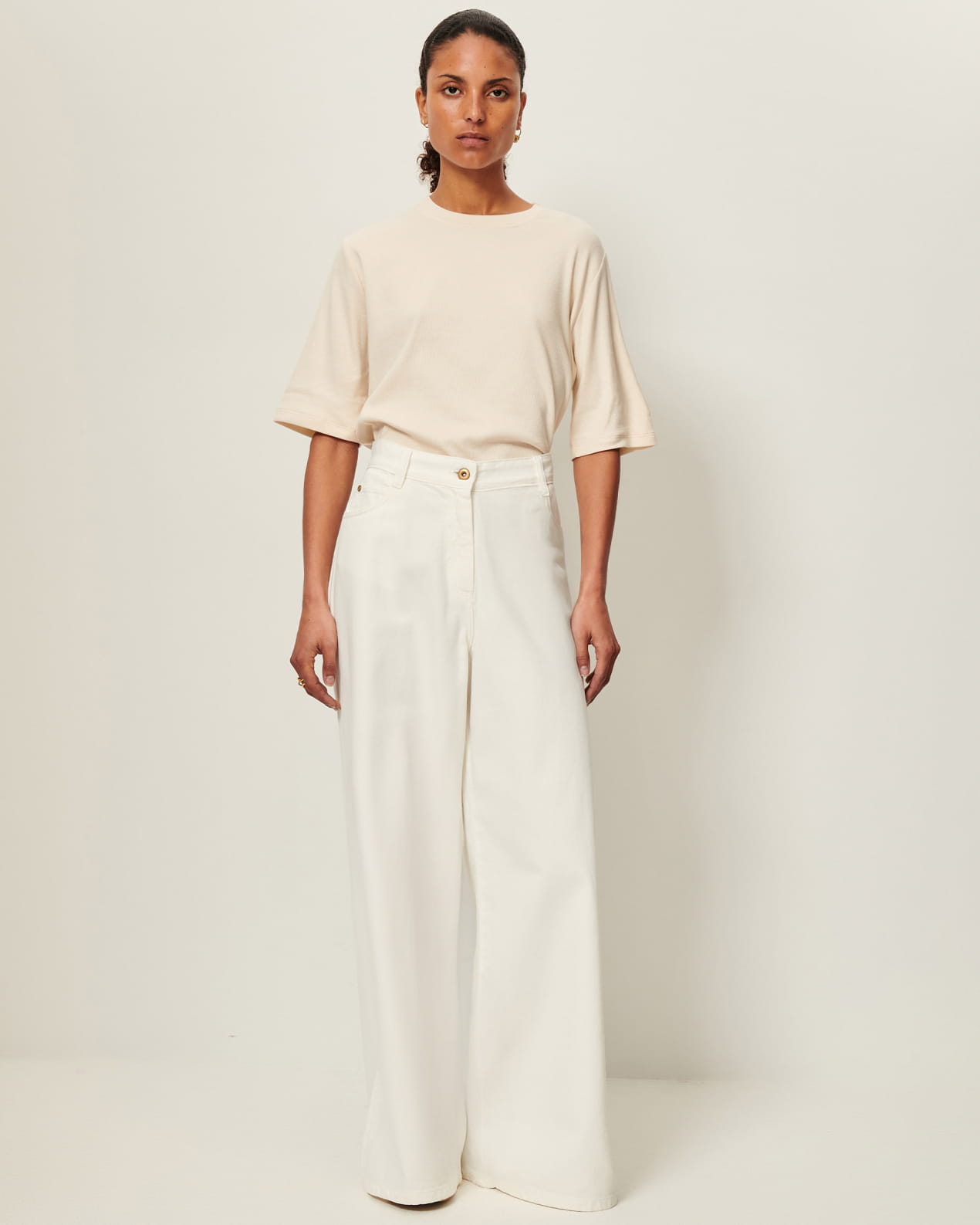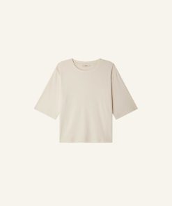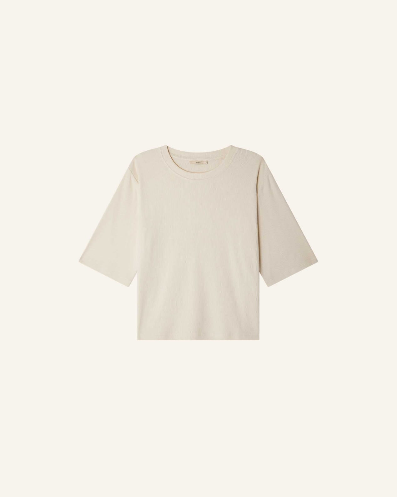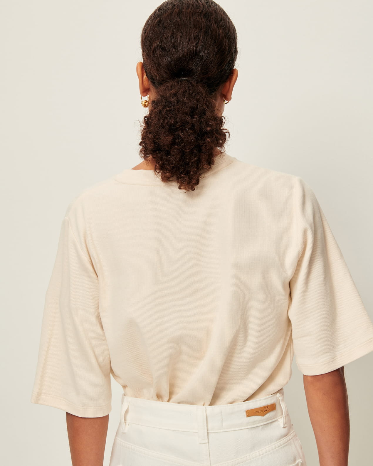 Short sleeves overisze T-shirt in fluid ribbed simple knit fabric.