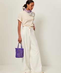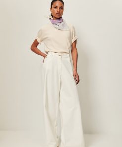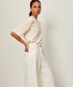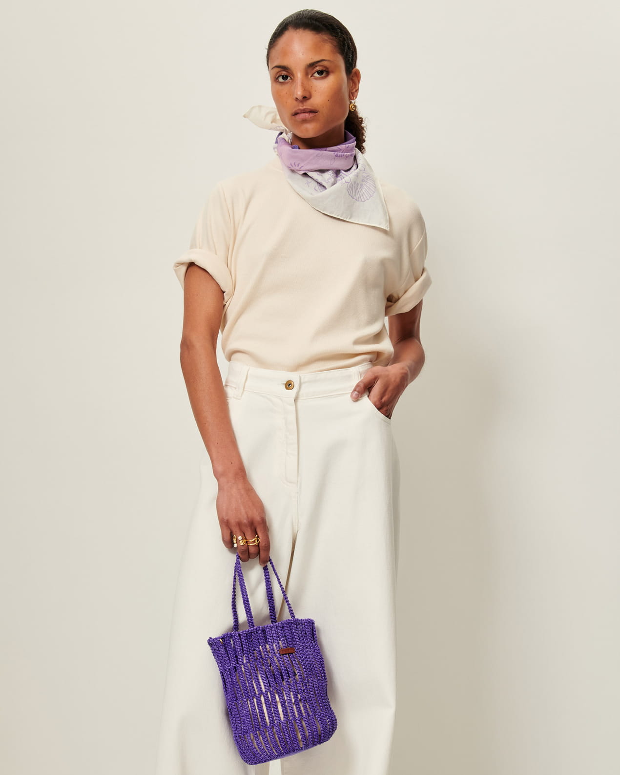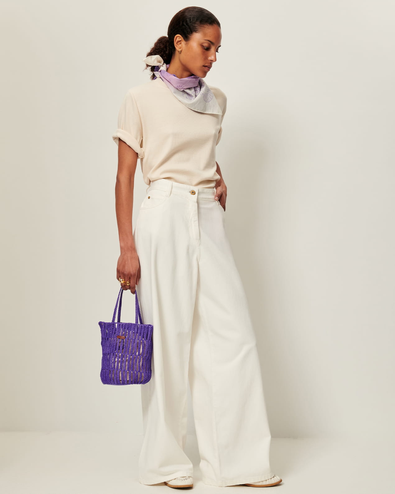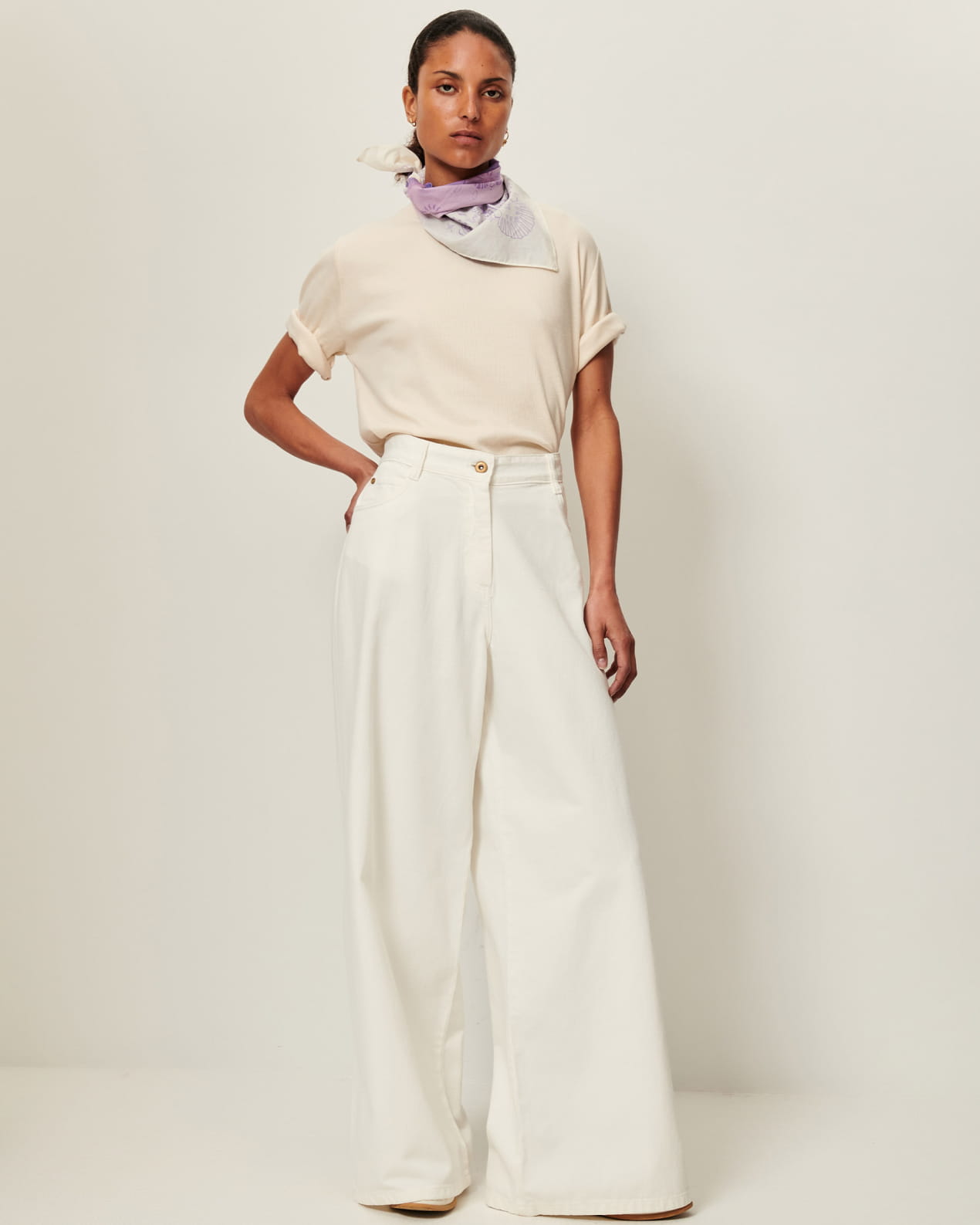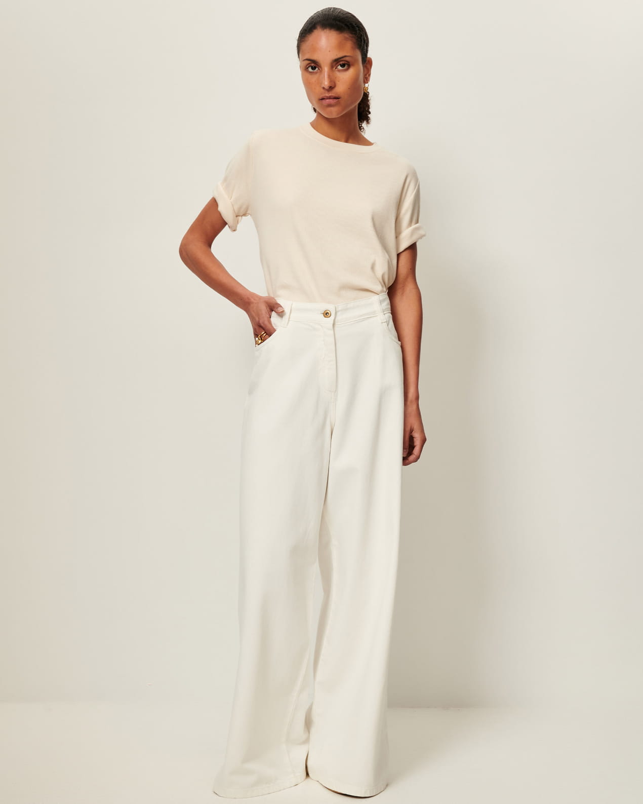 Short sleeves overisze T-shirt in fluid ribbed simple knit fabric.