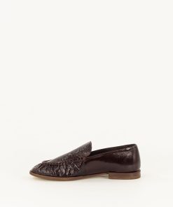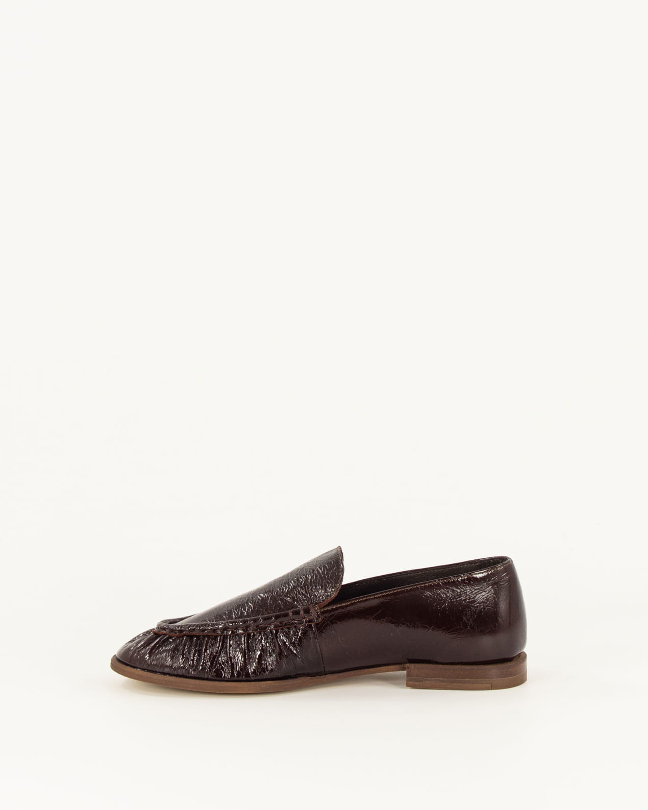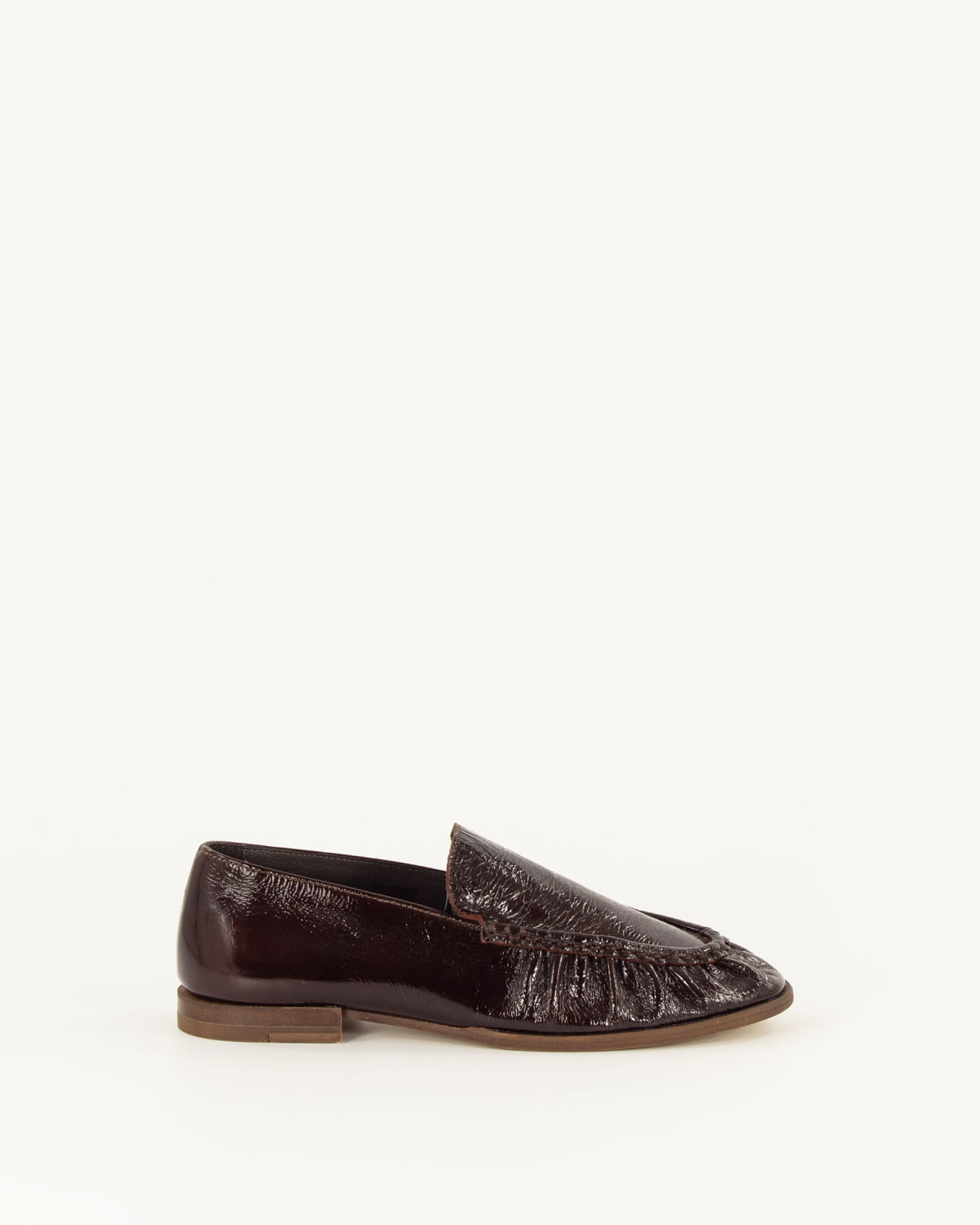 Soft, flat loafers in Naplak patent leather with a gathered upper, crafted in Portugal.