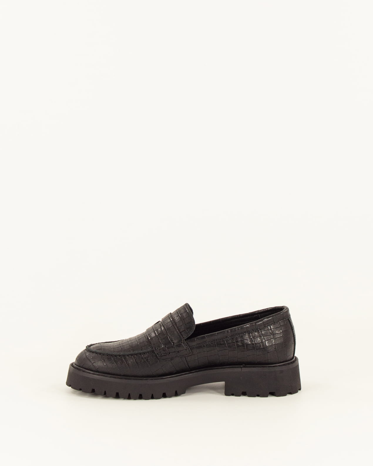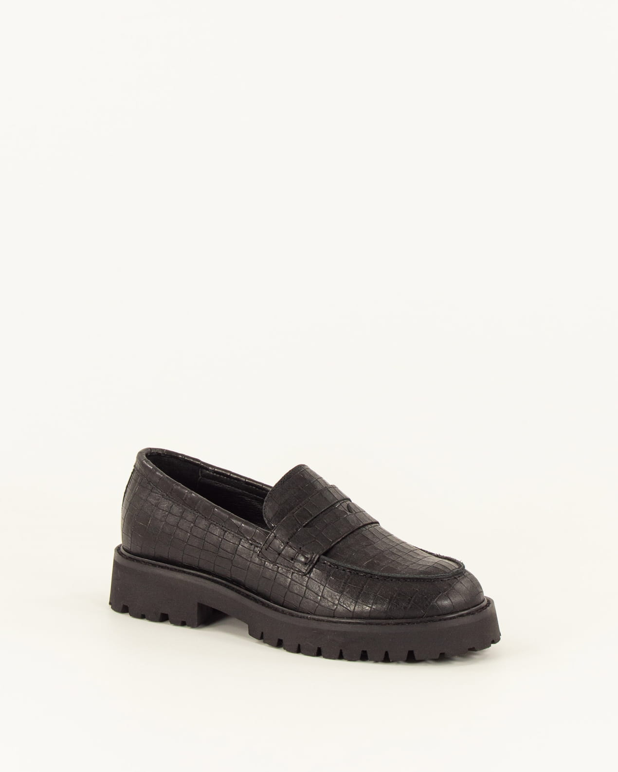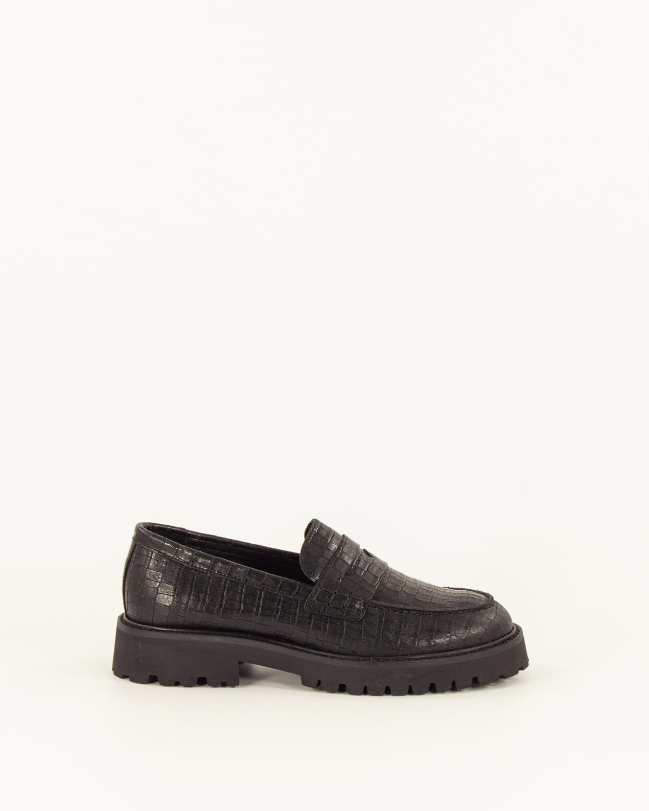 Loafers with a lug sole in crocodile-print cow leather, made in Portugal.