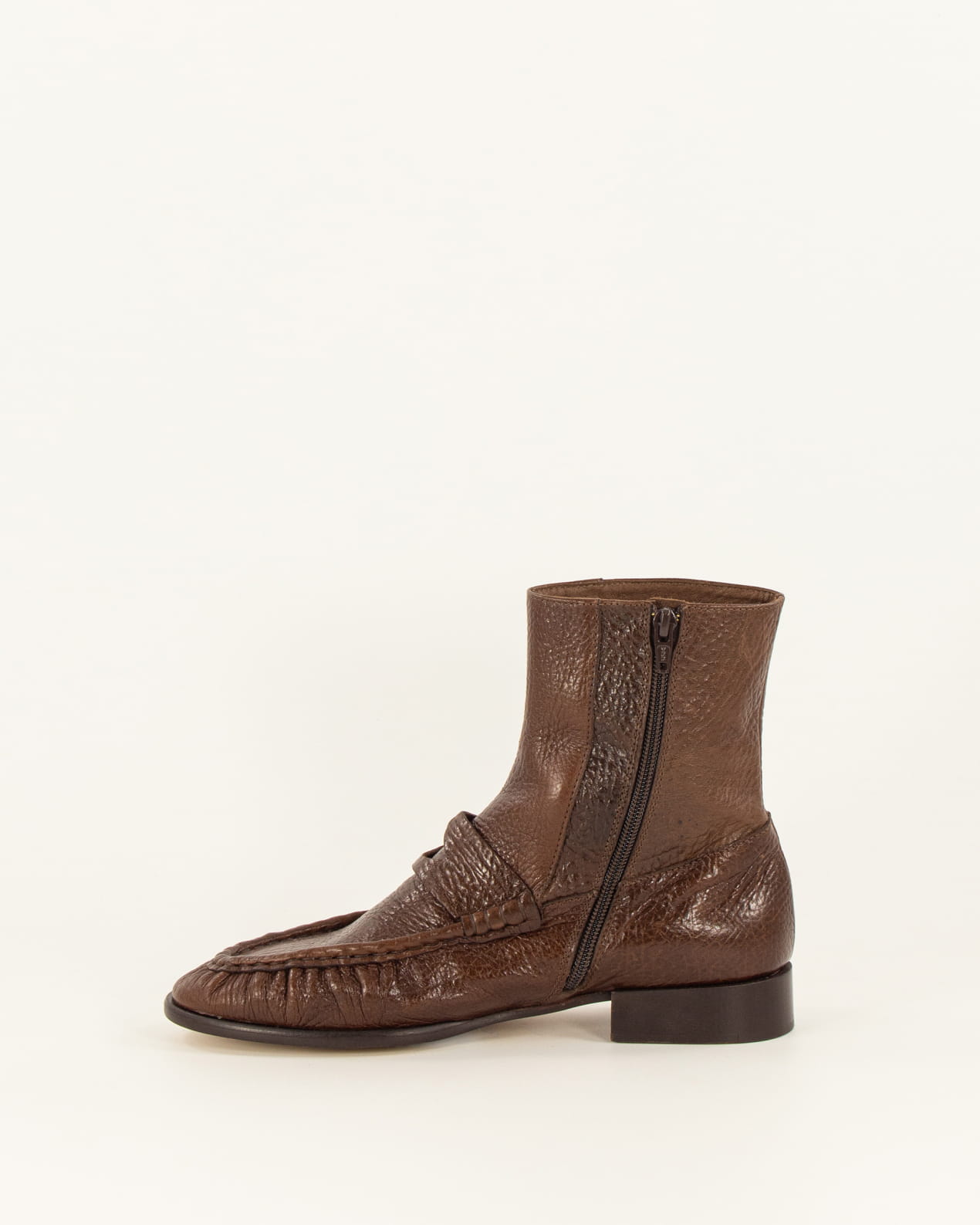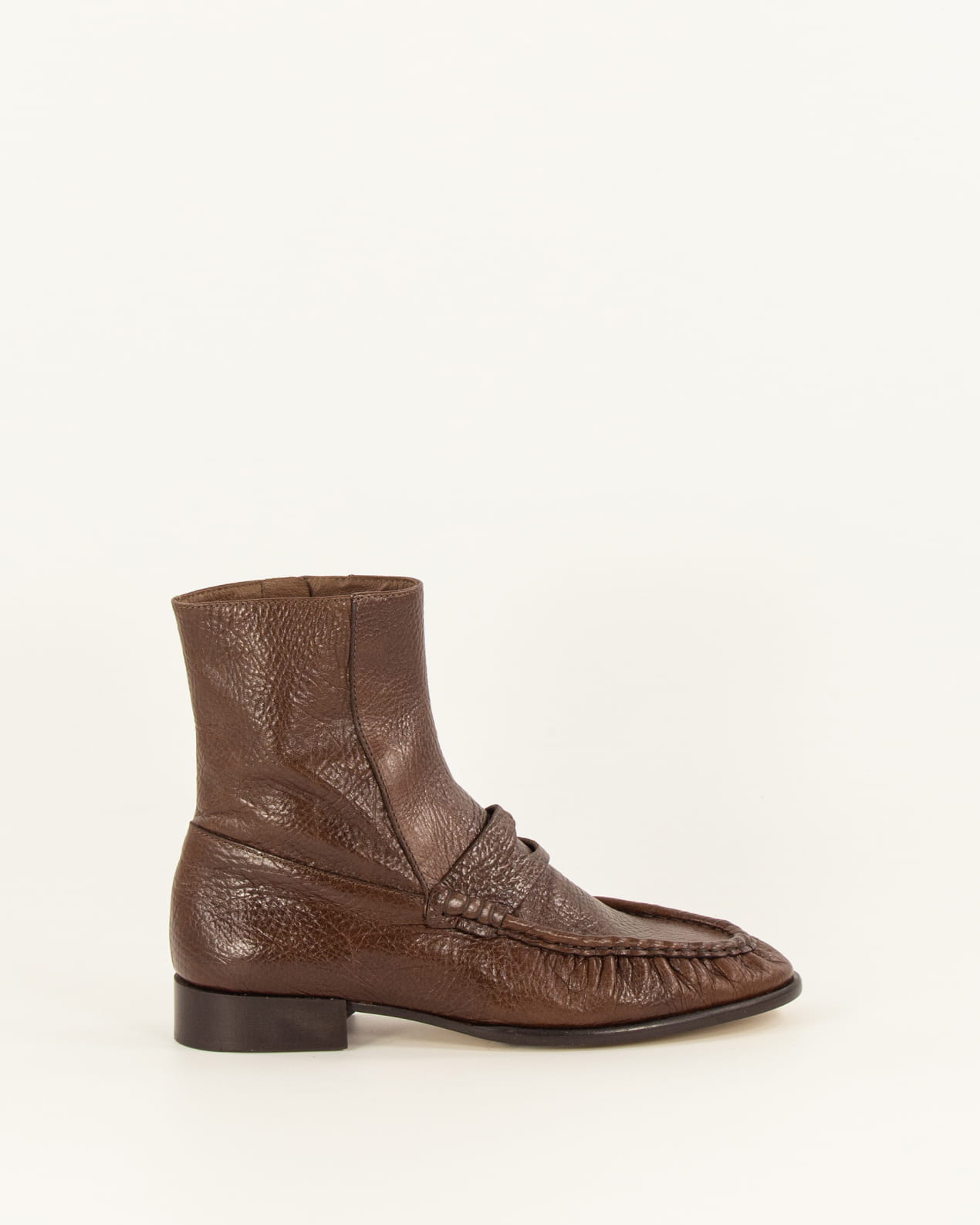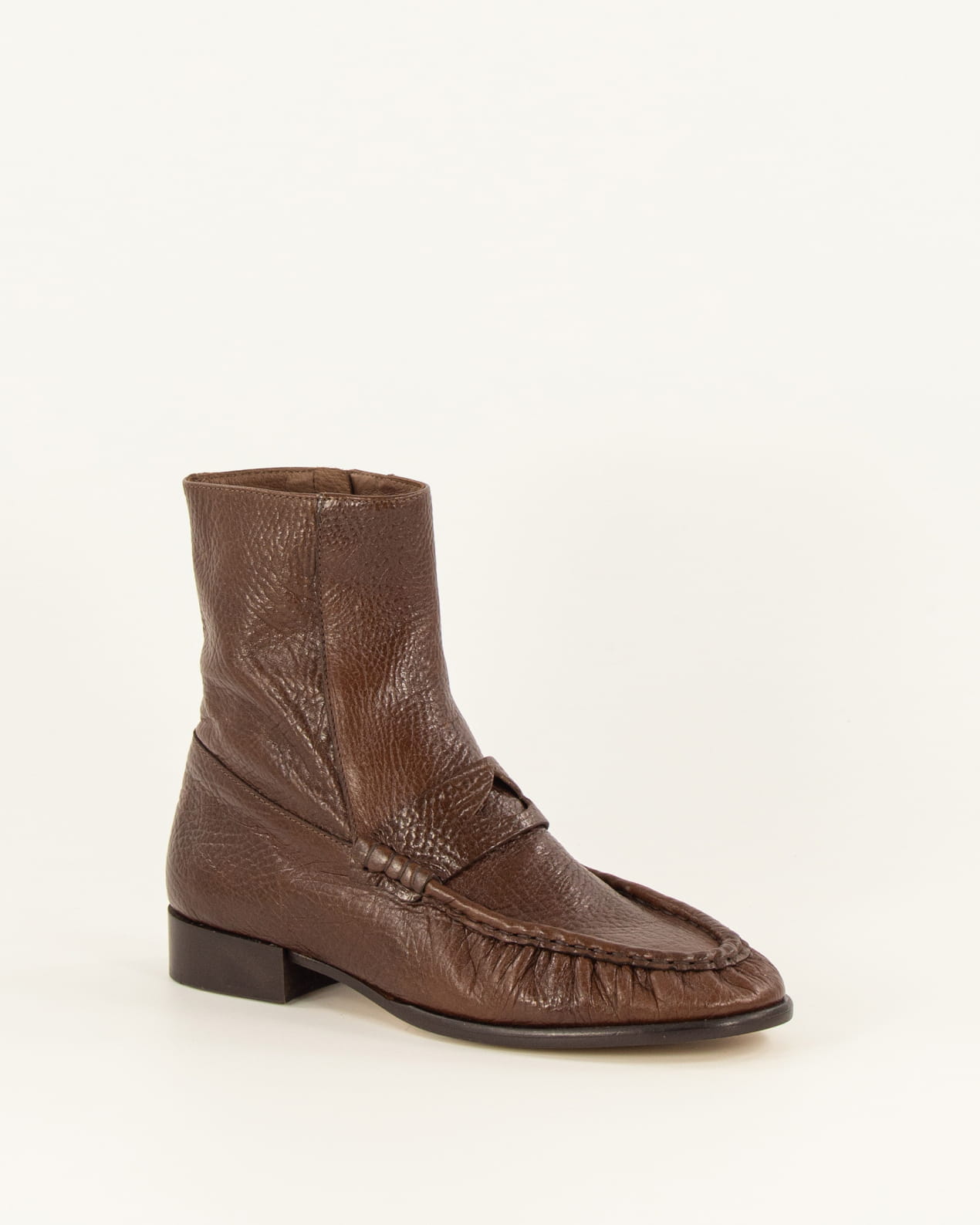 Flat boots with a gathered instep in cow leather, made in Portugal.