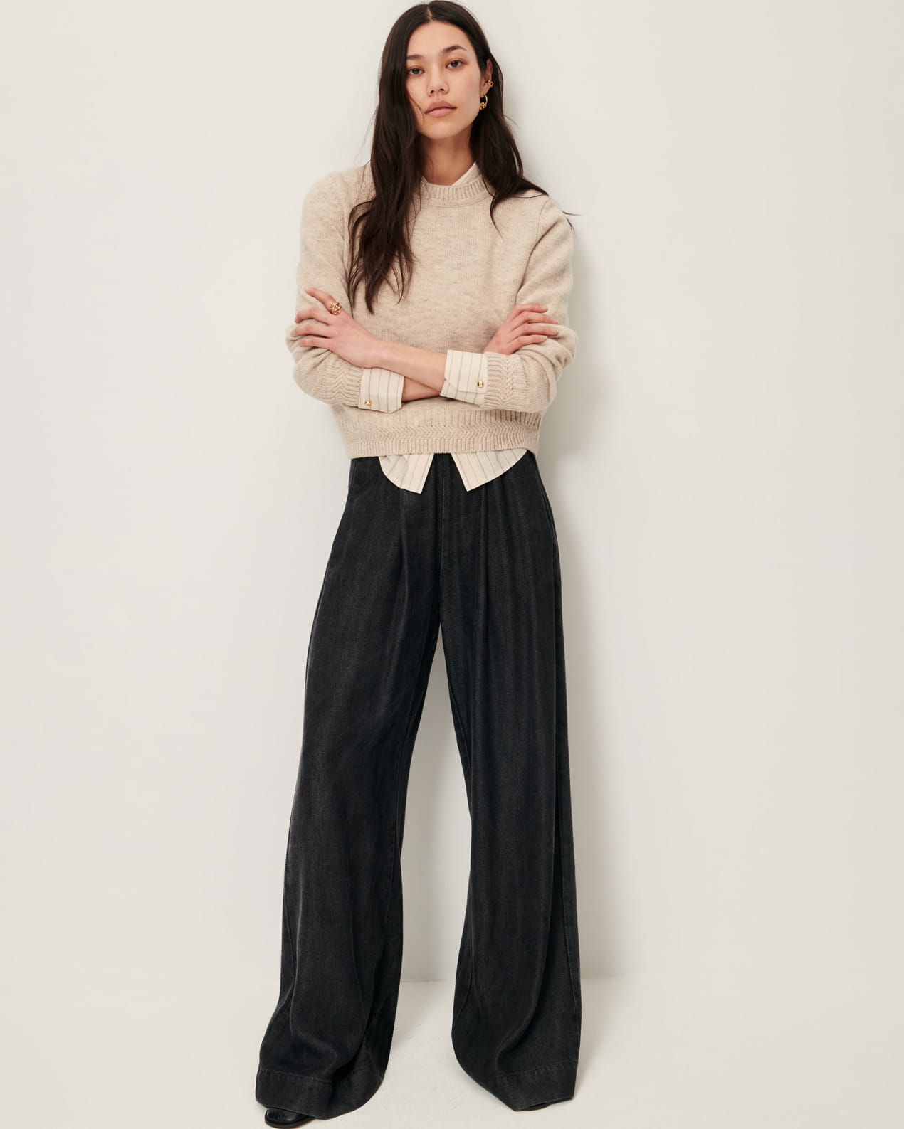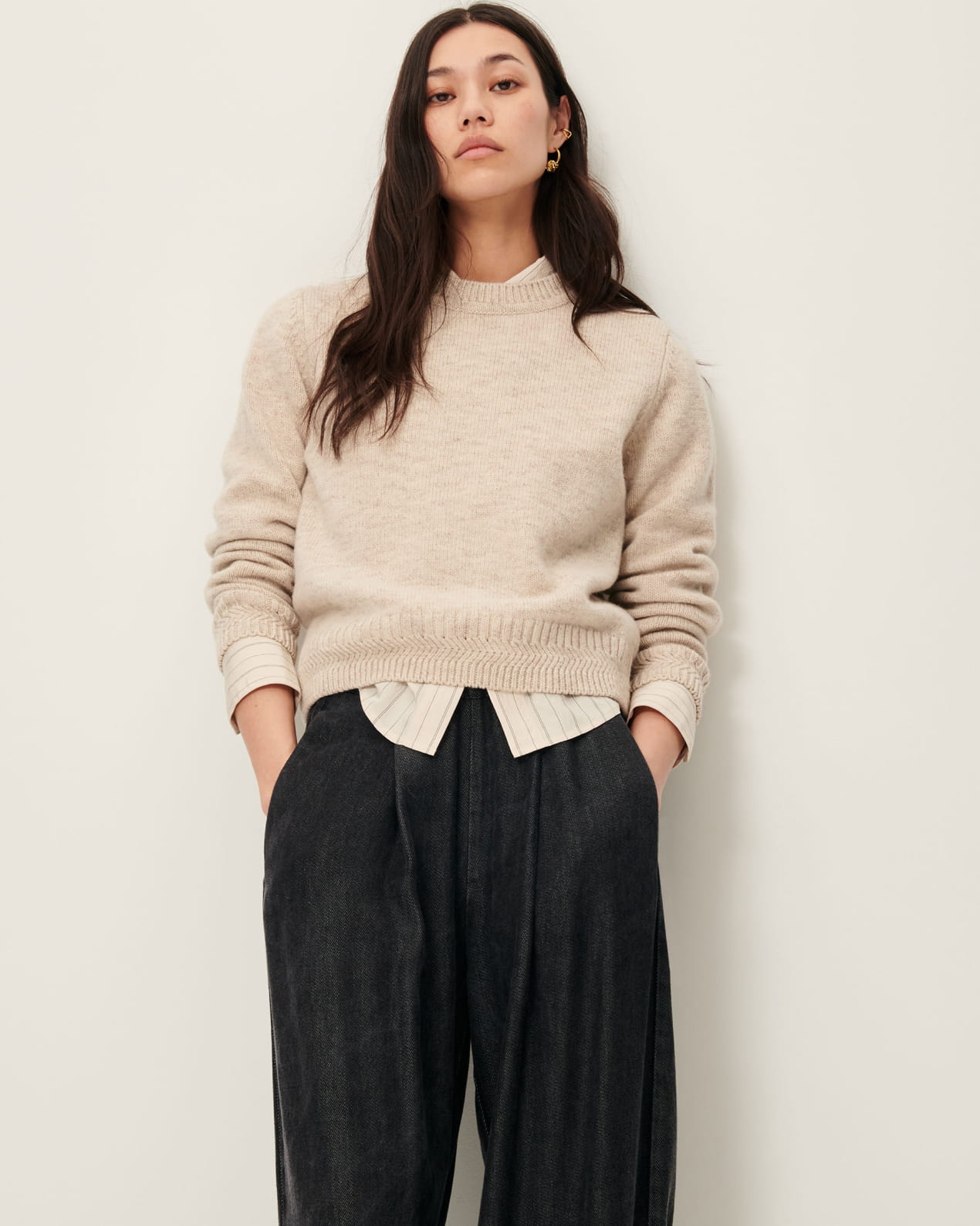 Decorative rib collar, cuffs and hem, and signature Sessùn leather patch on the back.
