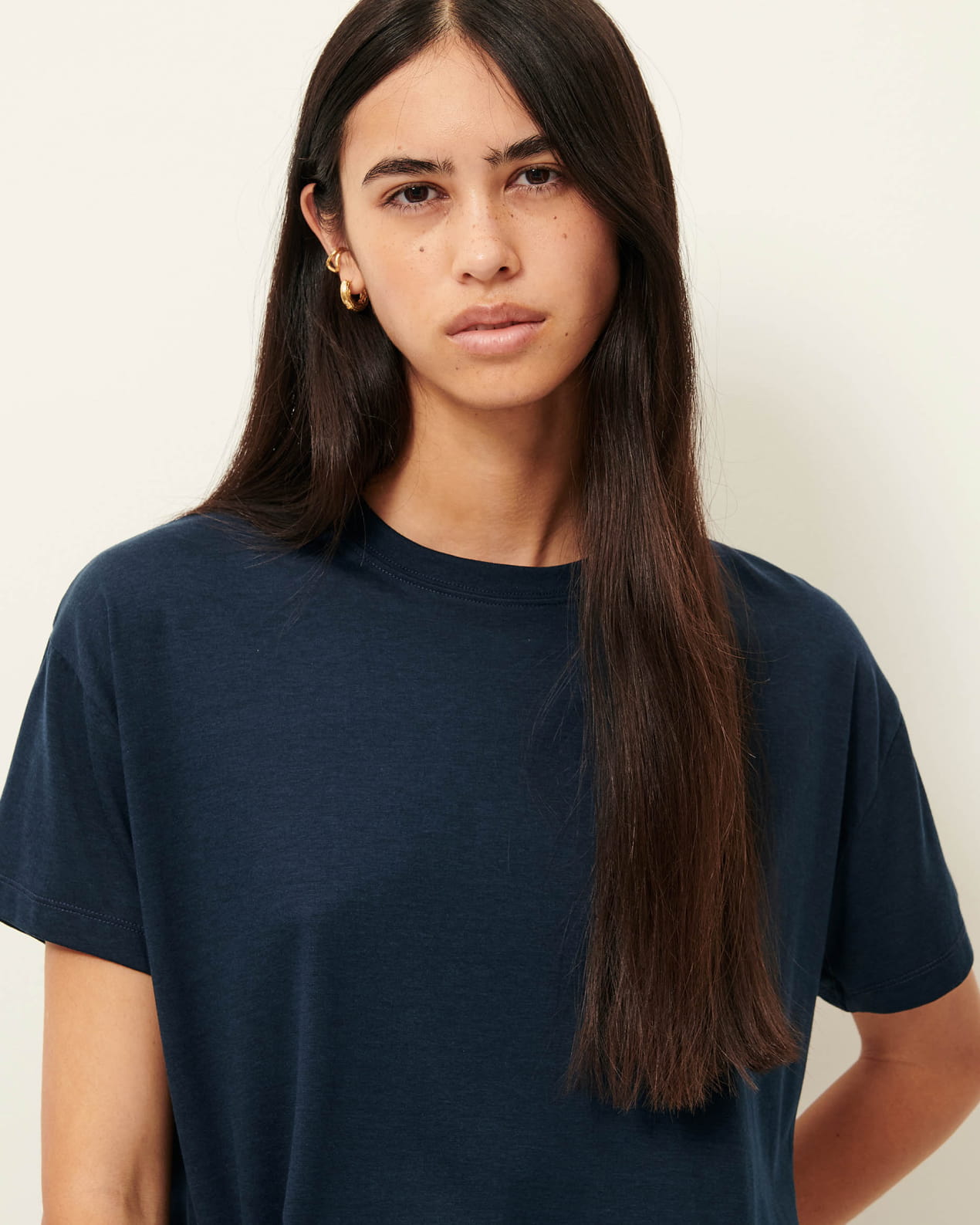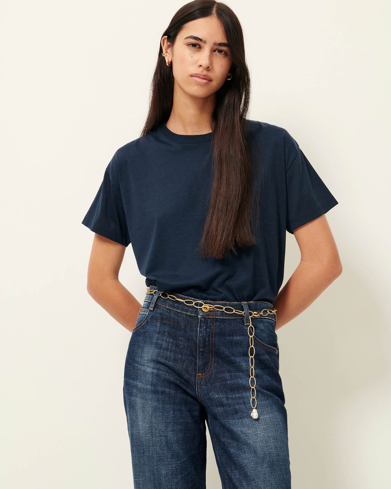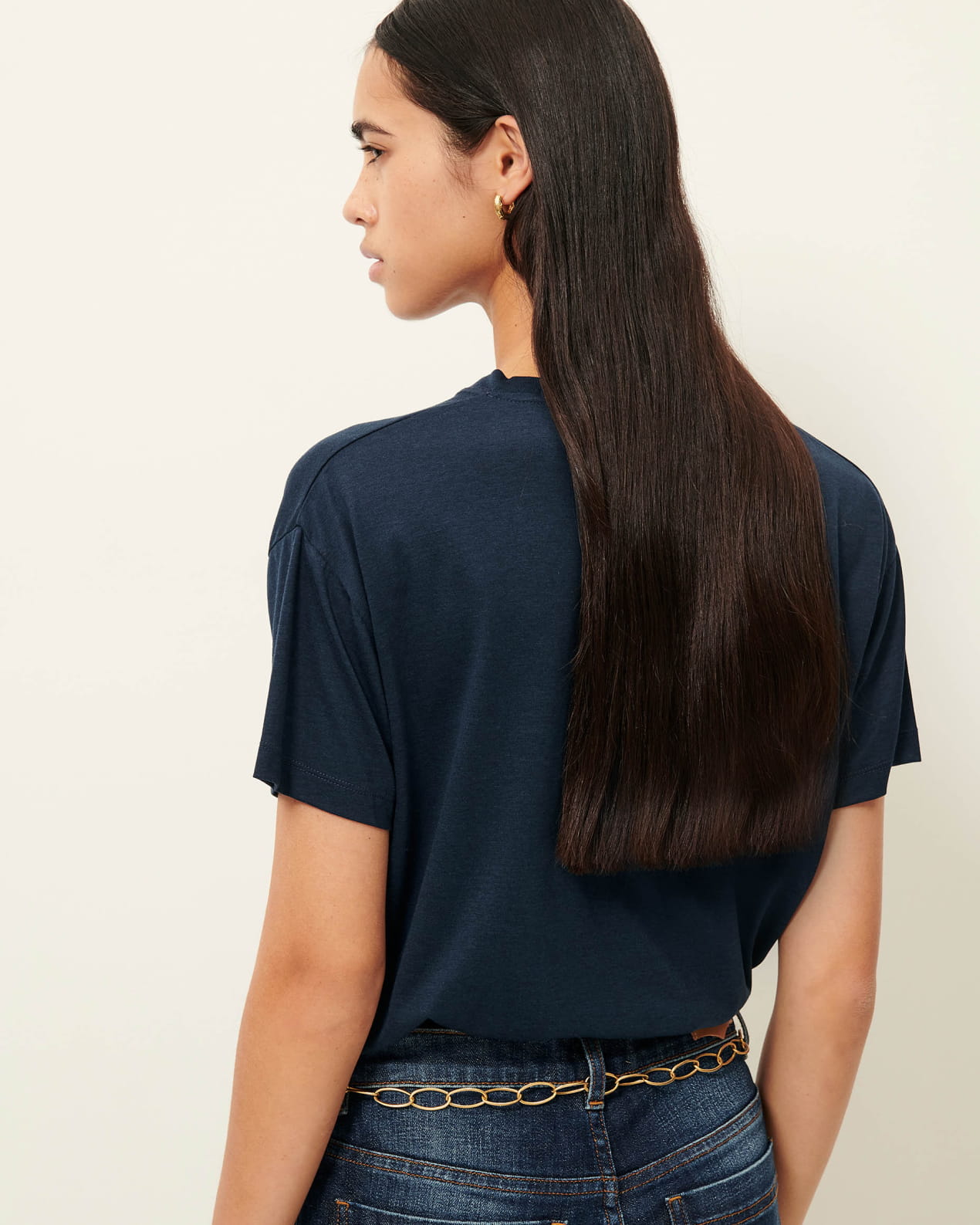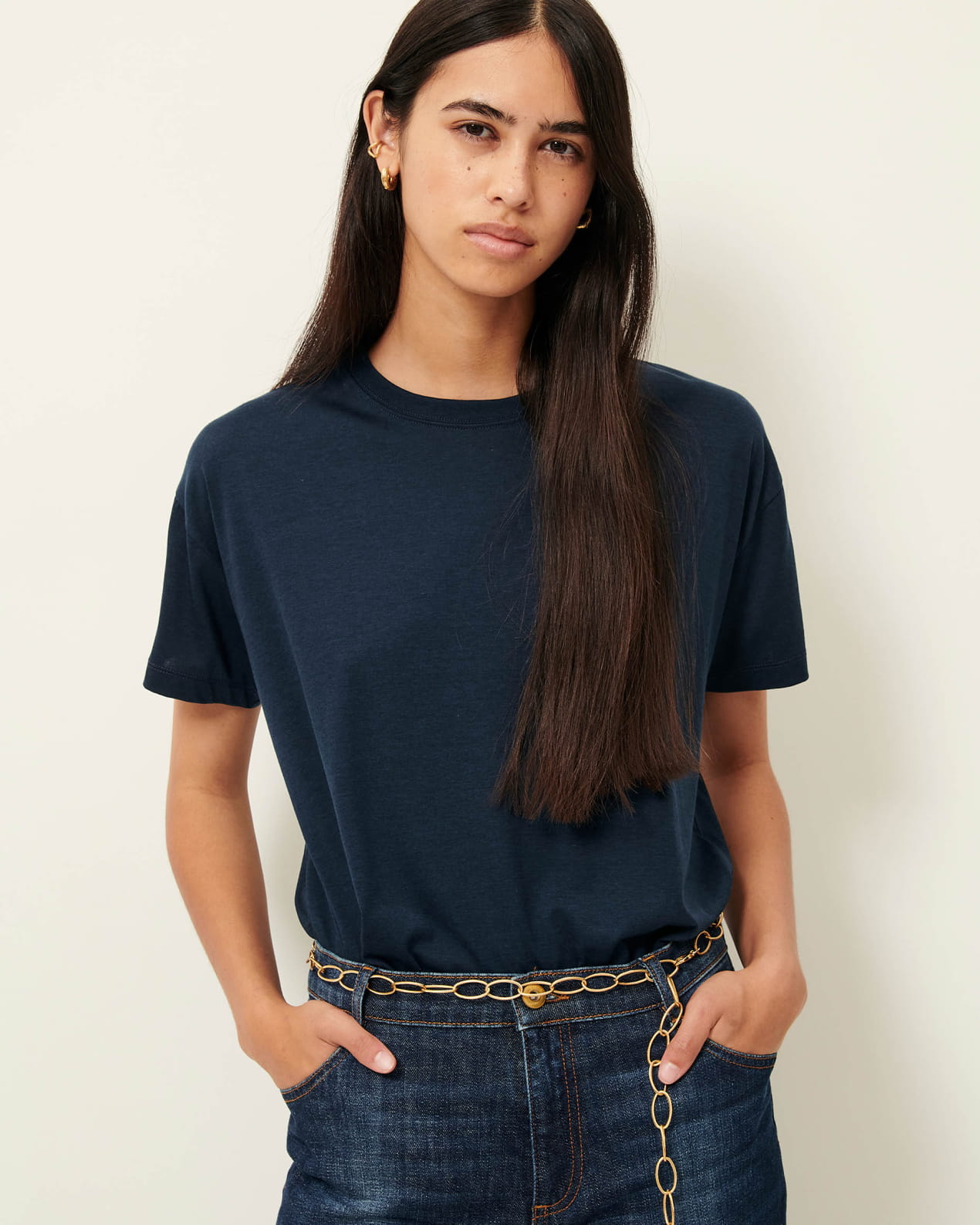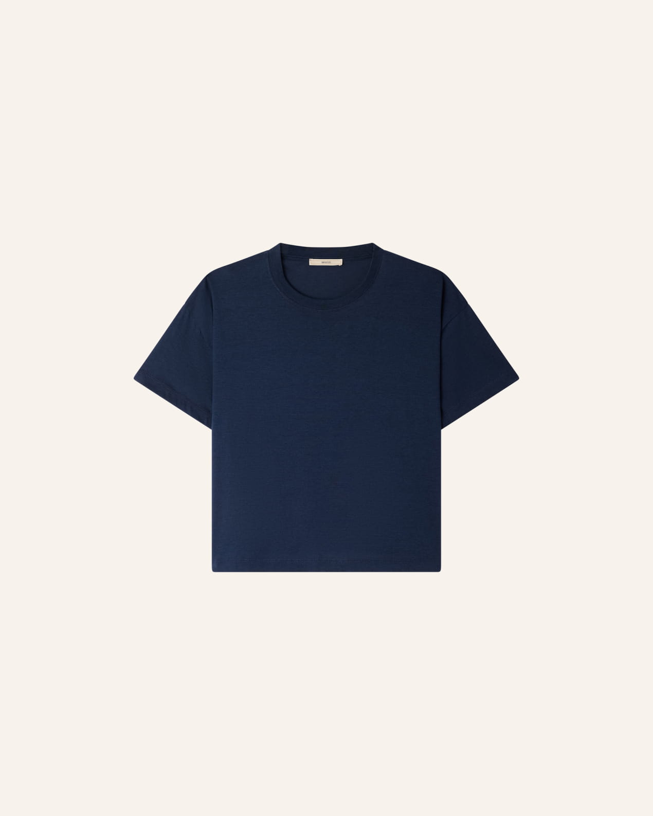 Loose-fitting short-sleeve T-shirt in fluid jersey fabric, made in Portugal.