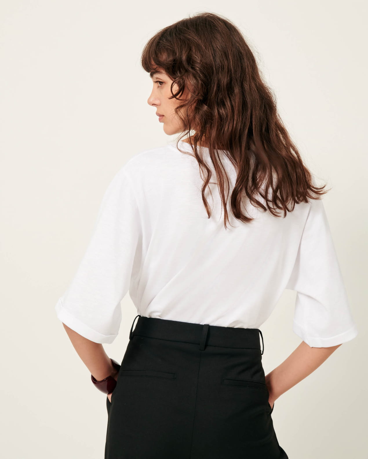 The polyester used to complement viscose in the making of this garment is recycled and GRS certified, which reduces its impact on the environment and aligns with a broader endeavor to preserve natural resources.