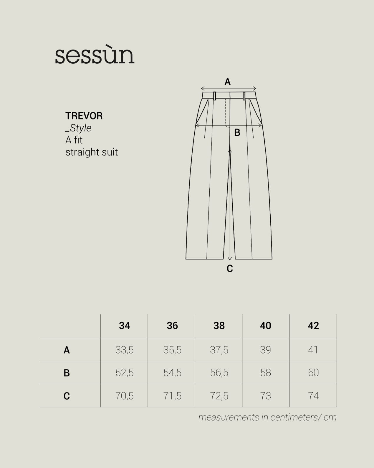 | FR | 34 | 36 | 38 | 40 | 42 |