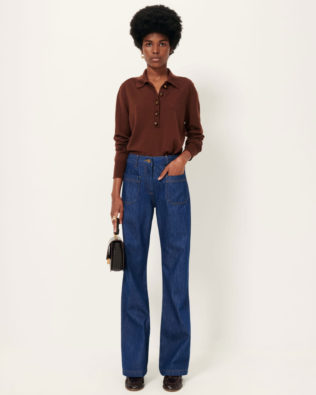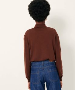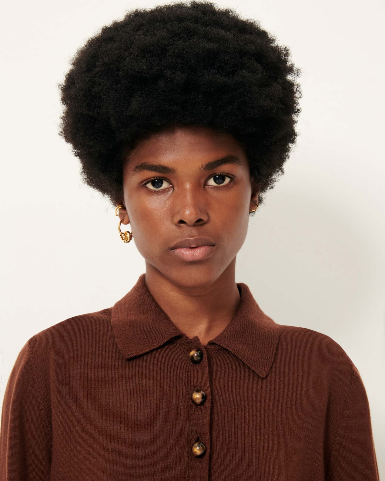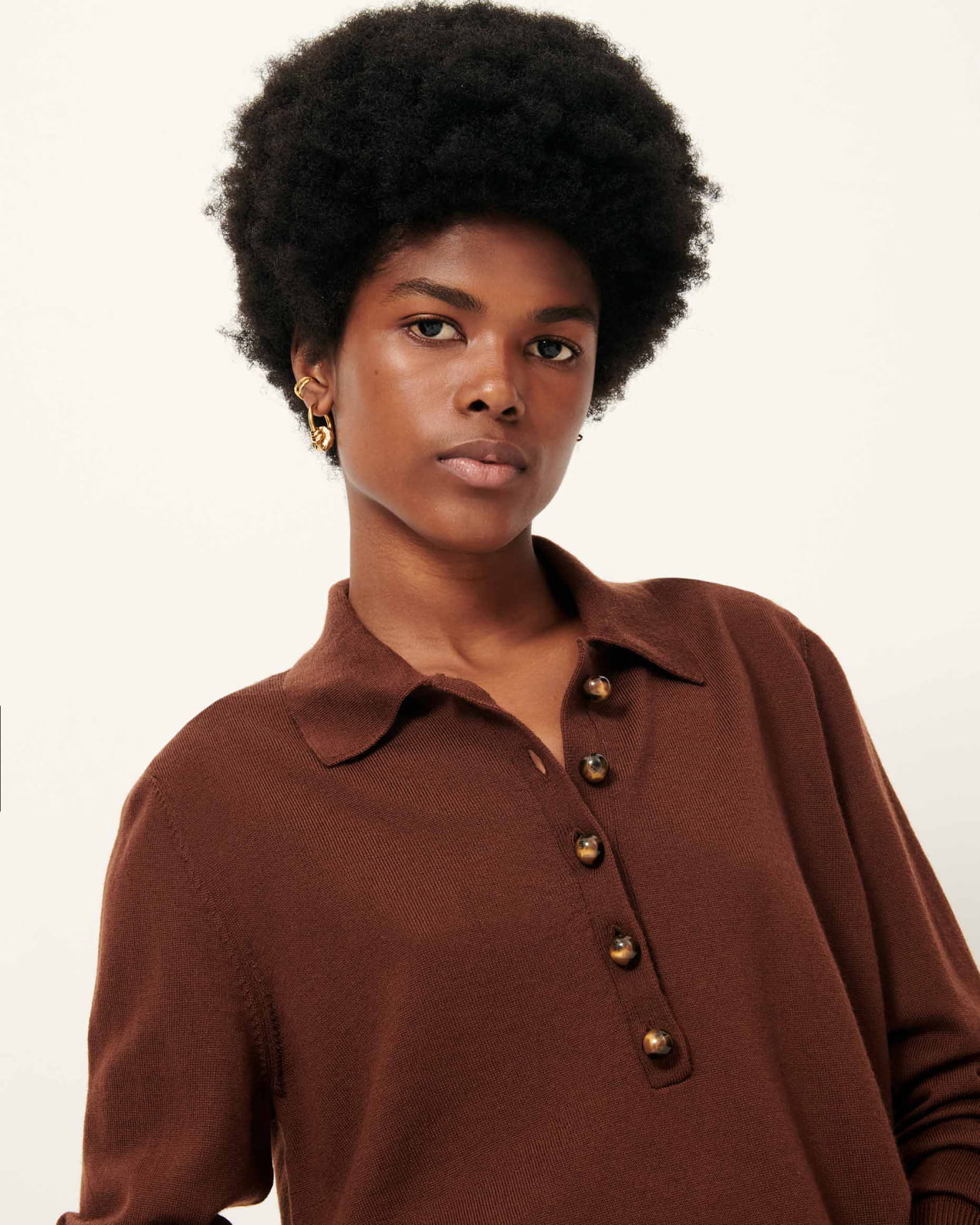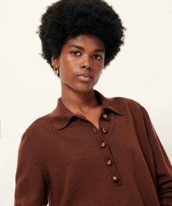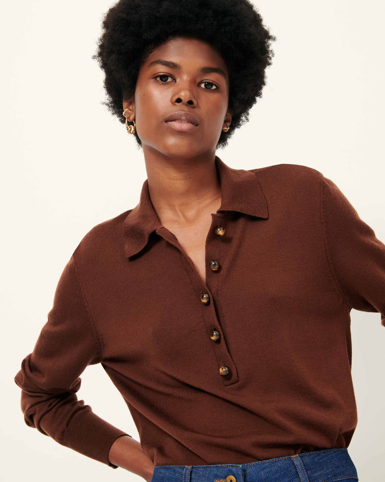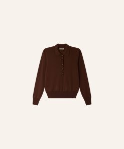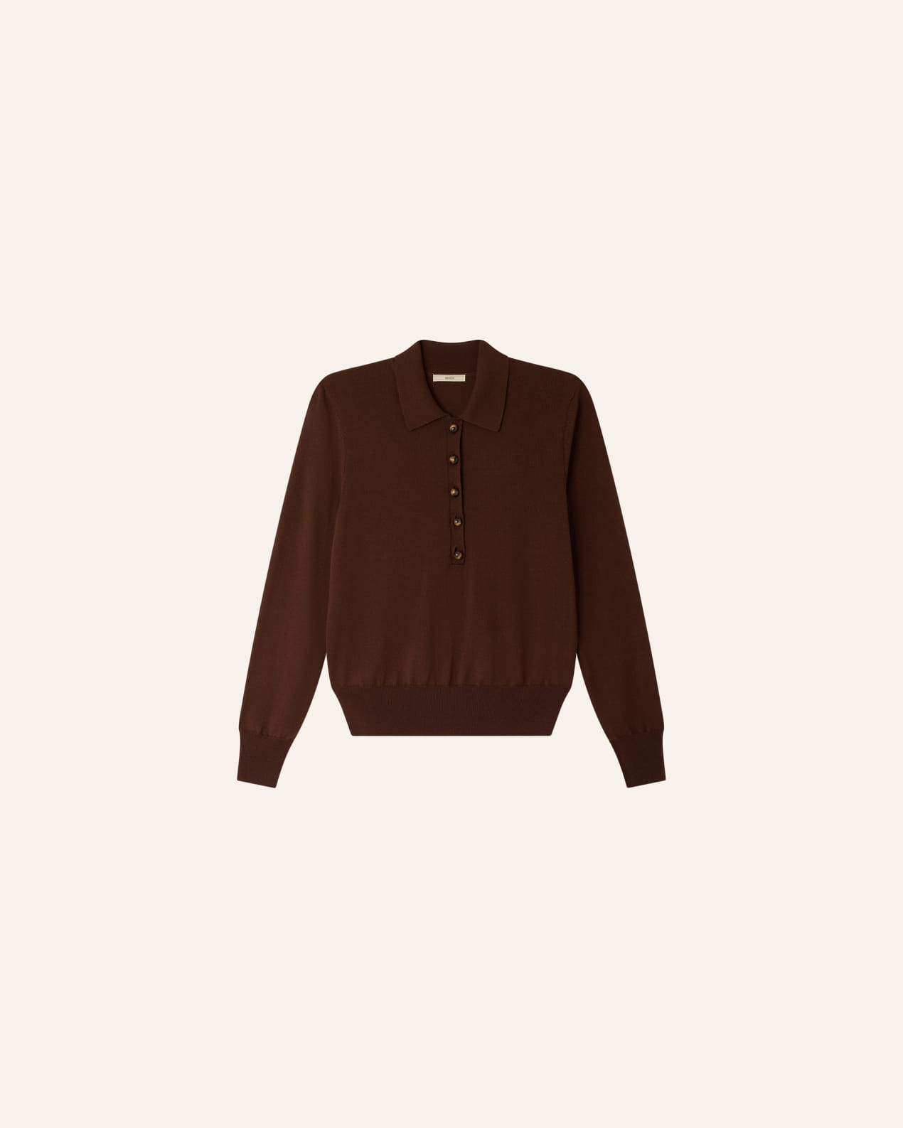 Long-sleeve polo-style jumper in fine merino wool knit with jewel buttons.